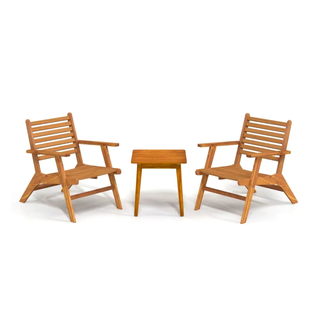vidaXLCréez une esthétique convaincante et uniforme dans votre espace extérieur avec cet ensemble de bistro en bois ! Cet ensemble de bistrot d'extérieur est fabriqué en bois d'acacia massif, ce qui le rend stable et durable. Avec une finition à l'huile, cet ensemble de patio en bois massif est facile à nettoyer. Les chaises relax présentent un design classique à lattes pour une assise confortable. Apportez cet ensemble de bistro en bois pour ajouter une touche de plaisir et de confort à votre jardin ou à votre patio ! Remarque : afin de prolonger la durée de vie des meubles d'extérieur, nous vous recommandons de les protéger avec une housse imperméable.
