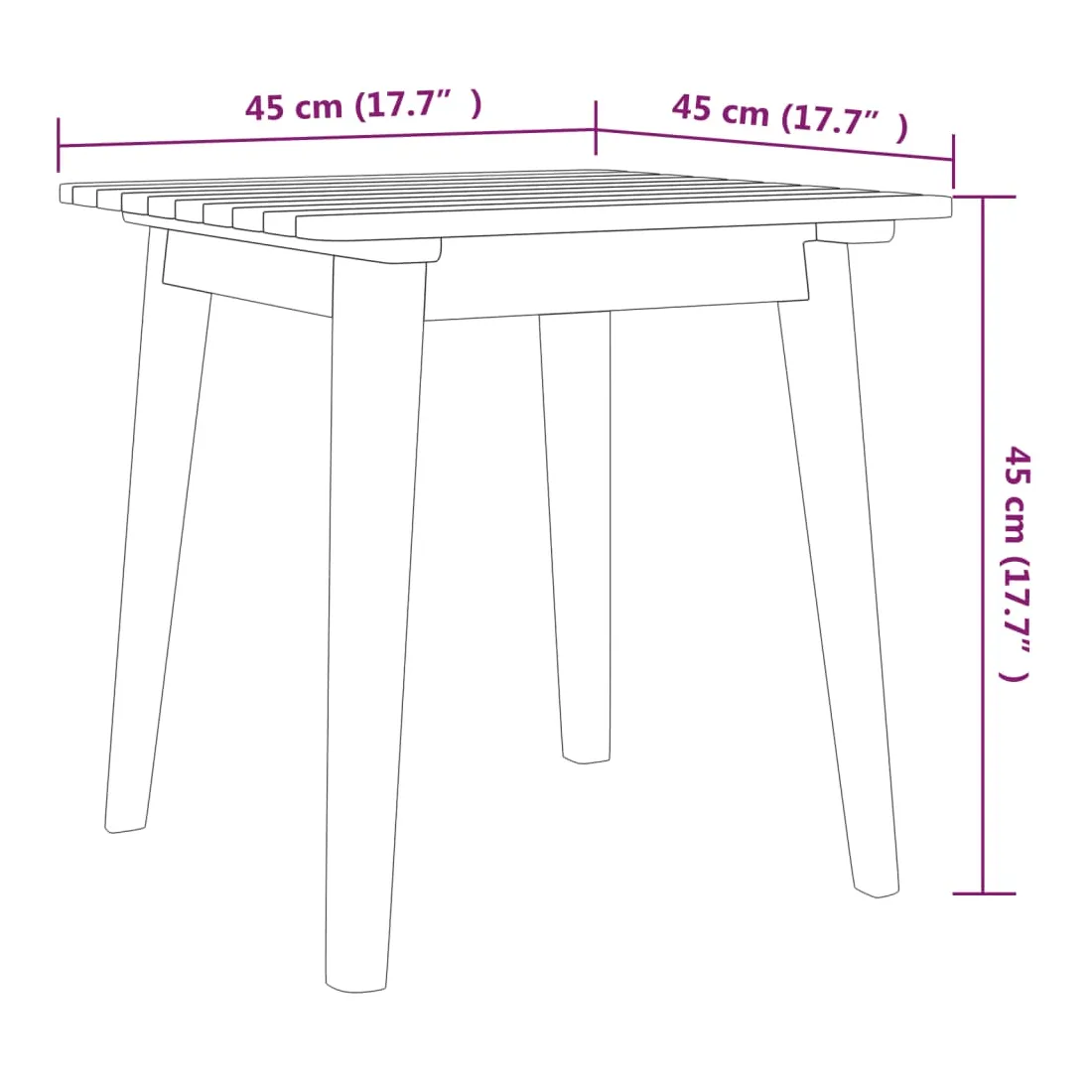 - Dimensions de la table : 45 x 45 x 45 cm (l x P x H)