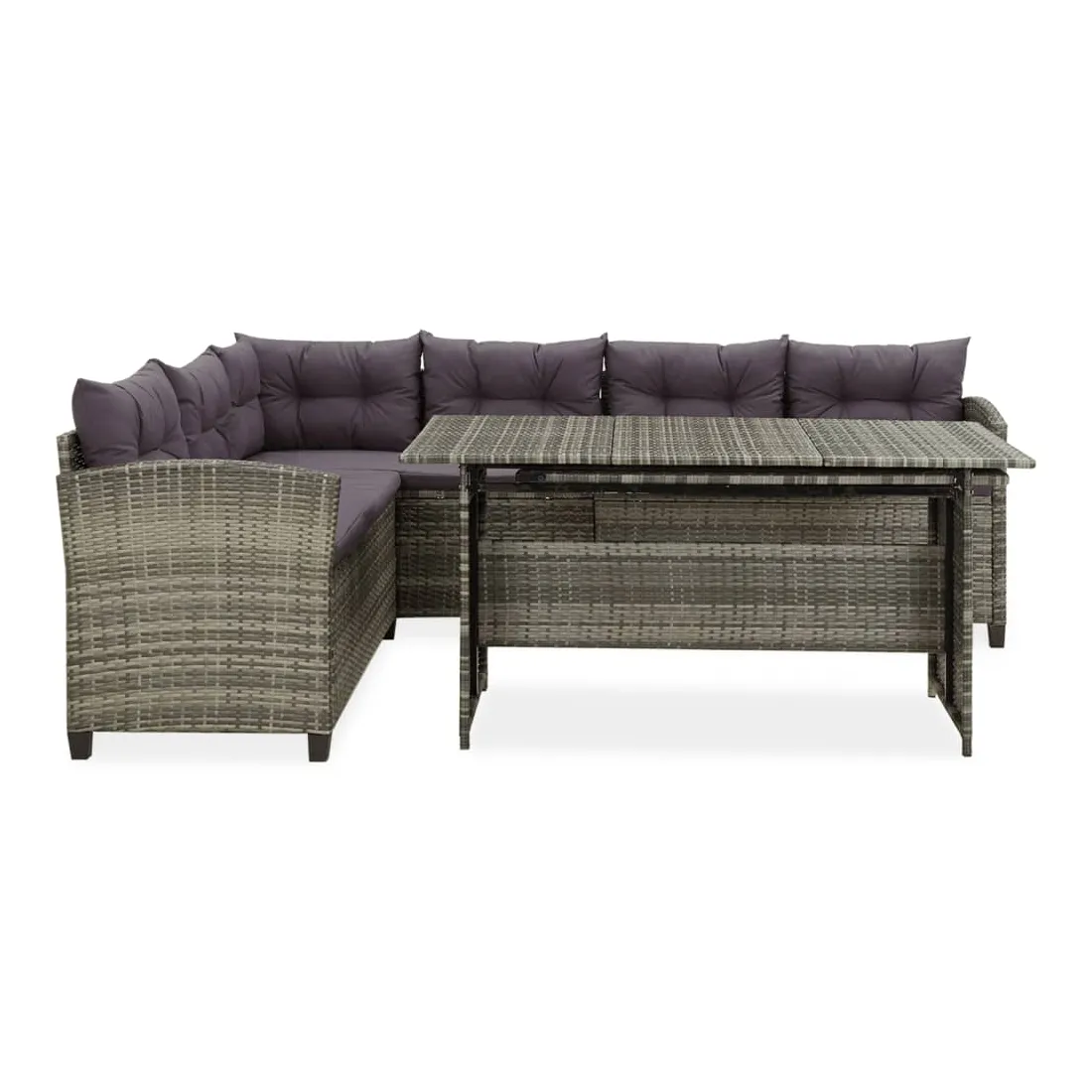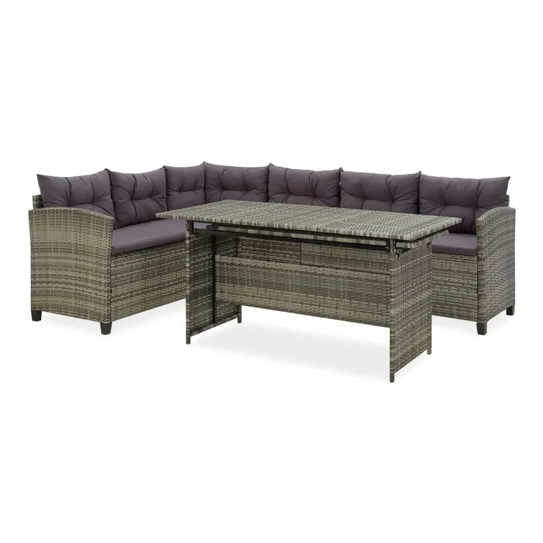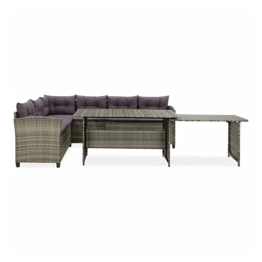 Cet ensemble de salon de jardin offre un coin de salon élégant pour votre jardin ou votre patio. Grâce à la résine tressée résistante à l'eau, cet ensemble de canapés de terrasse est facile à nettoyer, résistant à l'usure et convient à une utilisation quotidienne à l'extérieur. Le cadre en acier enduit de poudre rend l'ensemble robuste et durable. Cet ensemble de meubles d’extérieur est livré avec des coussins de siège et des coussins de dossier très confortables et bien rembourrés afin d’offrir un confort d’assise ultime. La table de jardin est extensible pour répondre à votre variété d’exigences. Remarque : afin de prolonger la durée de vie des meubles d'extérieur, nous vous recommandons de les protéger avec une housse imperméable.