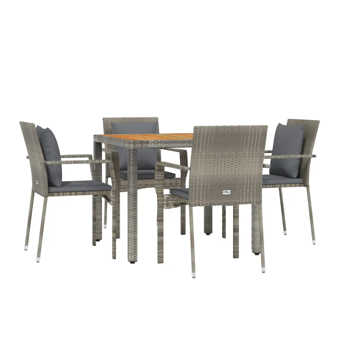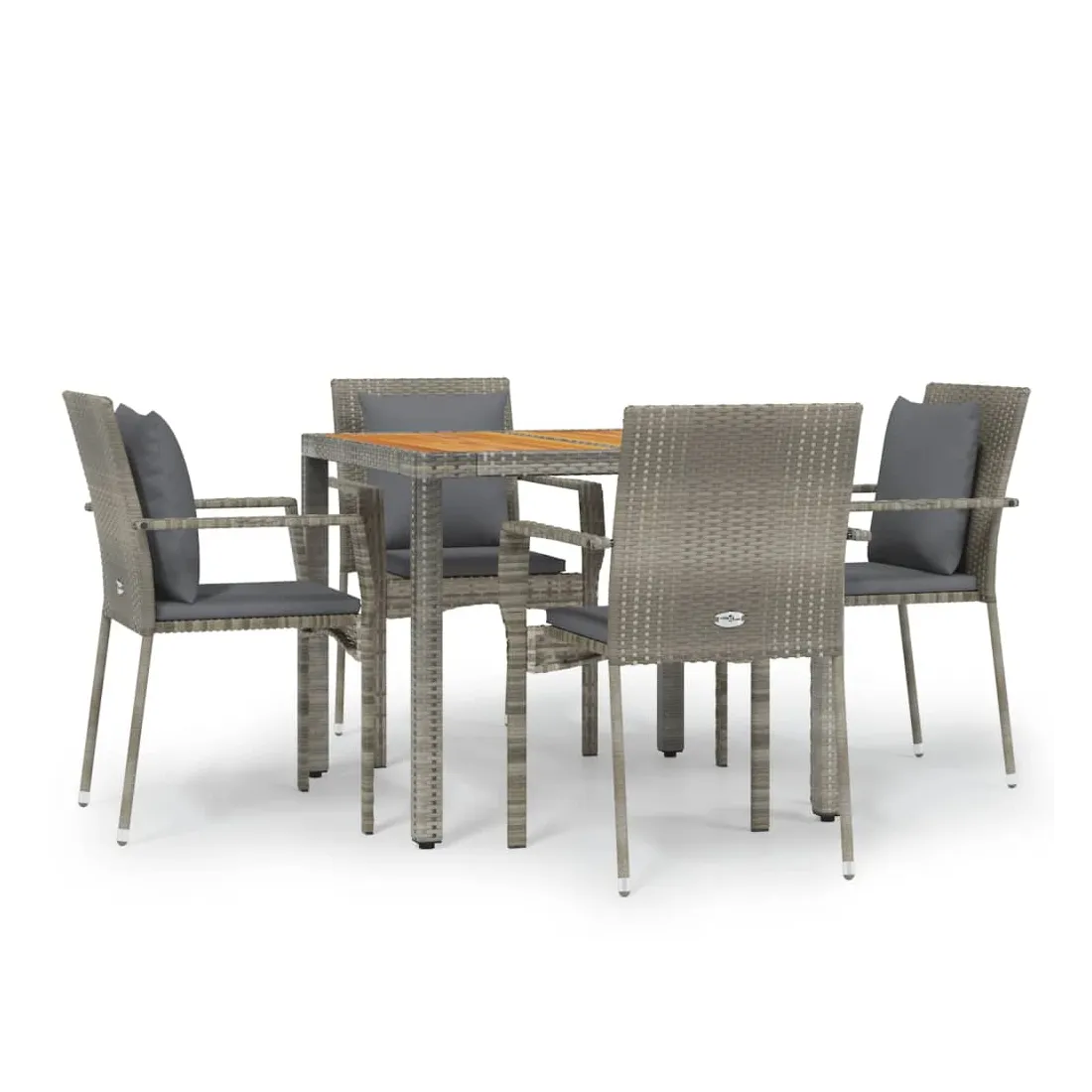 Ensemble à manger de jardin 5 pcs coussins gris résine tressée