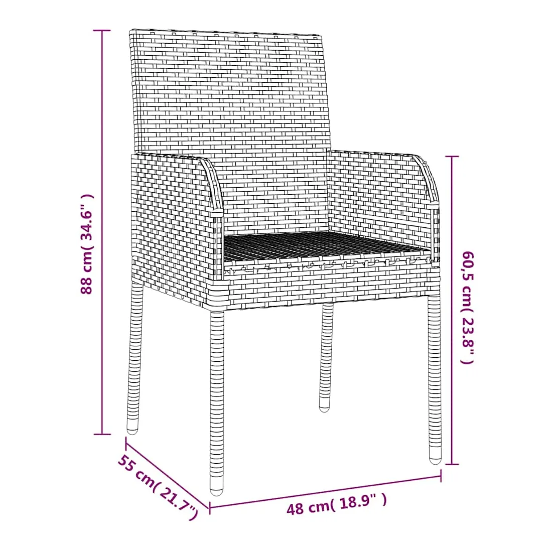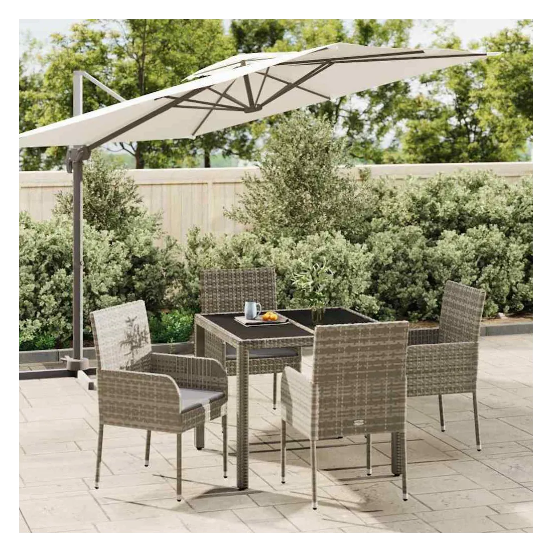 vidaXLCet ensemble de salle à manger de jardin tendance, au design élégant et contemporain, est un excellent choix pour manger ou vous détendre dans votre jardin. Matériau résistant aux intempéries : la résine tressée, également connue sous le nom de rotin poly, résiste aux intempéries et est facile à nettoyer. Elle reste belle à l'extérieur pendant une longue période. Elle offre une excellente qualité, commodité et un aspect esthétique.Cadre robuste : les cadres en acier enduit de poudre rendent l'ensemble de salle à manger d'extérieur robuste et stable pour une utilisation quotidienne à l'extérieur.Dessus de table pratique : le dessus lisse de la table de jardin est en verre trempé, facile à nettoyer avec un chiffon humide. De plus, le dessus robuste est parfait pour placer des repas, des boissons et d'autres objets décoratifs.Conception modulaire : l'ensemble de salle à manger de jardin est flexible et facile à déplacer, vous pouvez donc le combiner avec d'autres segments modulaires dans la boutique en ligne pour créer vos propres configurations d'ensemble de salle à manger de jardin !Expérience d'assise confortable : le dossier ajoute un confort d'assise supplémentaire à la chaise de jardin. De plus, les coussins bien rembourrés vous permettent de vous asseoir confortablement. Bon à savoir :Pour faciliter au maximum le montage, chaque produit est livré avec des instructions. Remarque :Pour que vos meubles d'extérieur restent beaux, nous vous recommandons de les protéger avec une housse imperméable.