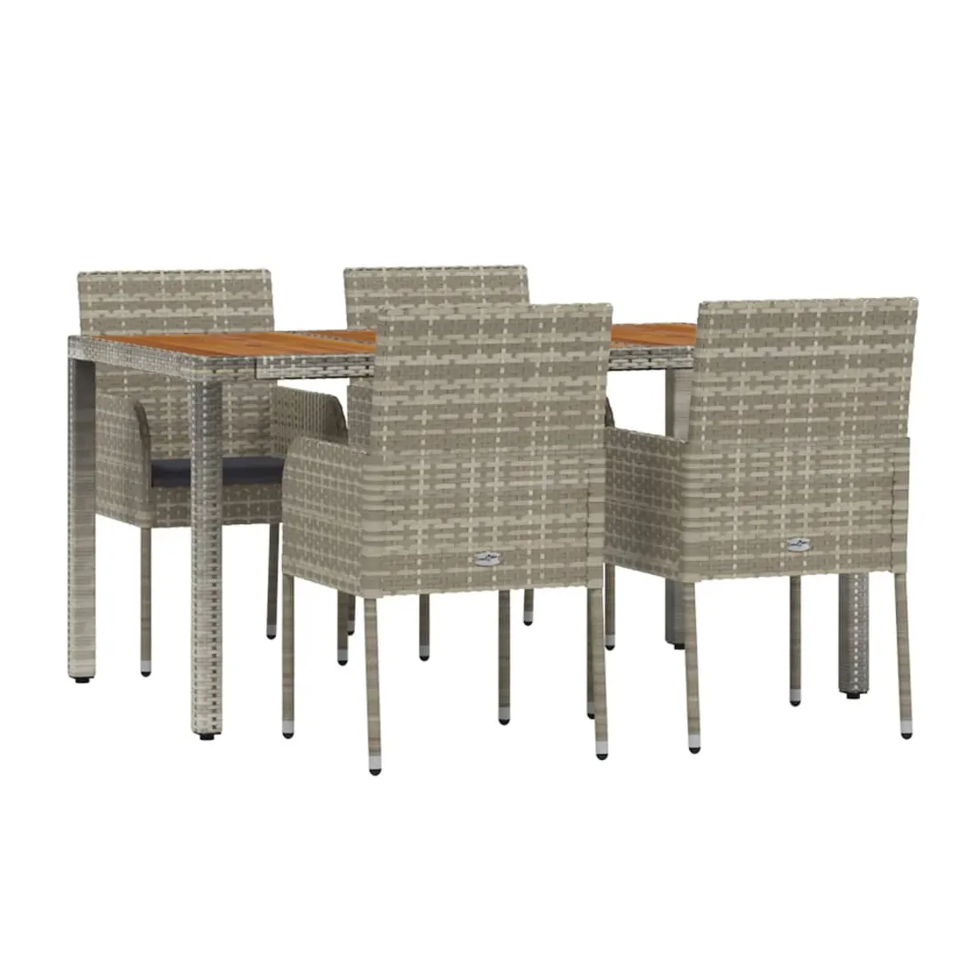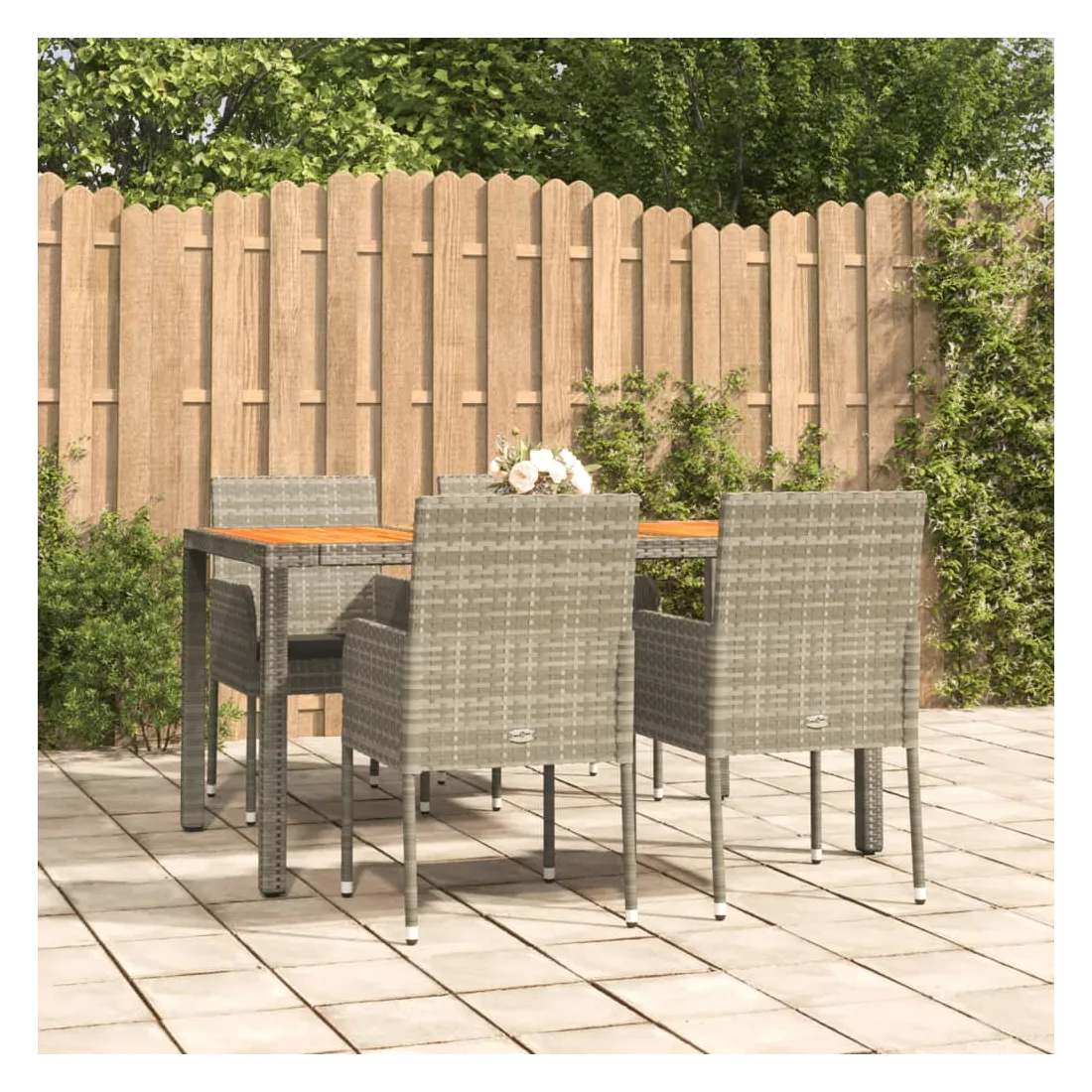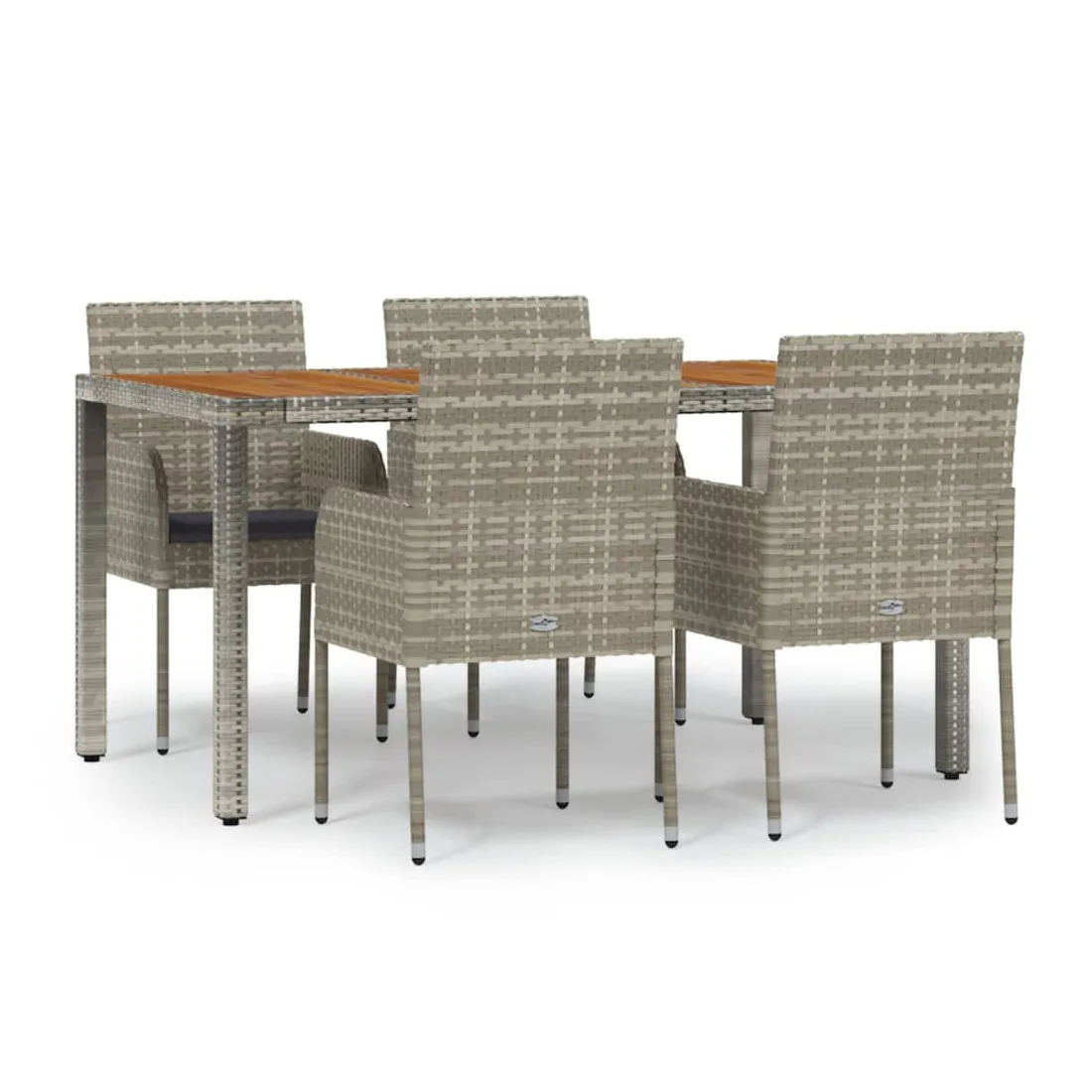 Cet ensemble de salle à manger de jardin tendance, au design élégant et contemporain, est un excellent choix pour manger ou vous détendre dans votre jardin. Matériau résistant aux intempéries : la résine tressée, également connue sous le nom de rotin poly, résiste aux intempéries et est facile à nettoyer. Elle reste belle à l'extérieur pendant une longue période. Elle offre une excellente qualité, commodité et un aspect esthétique.Cadre robuste : les cadres en acier enduit de poudre rendent l'ensemble de salle à manger d'extérieur robuste et stable pour une utilisation quotidienne à l'extérieur.Dessus de table pratique : le dessus de table en bois d'acacia massif est parfait pour placer des boissons, des aliments et des décorations. Il a une belle apparence et est facile à nettoyer.Conception modulaire : l'ensemble de salle à manger de jardin est flexible et facile à déplacer, vous pouvez donc le combiner avec d'autres segments modulaires dans la boutique en ligne pour créer vos propres configurations d'ensemble de salle à manger de jardin !Expérience d'assise confortable : le dossier ajoute un confort d'assise supplémentaire à la chaise de jardin. De plus, les coussins bien rembourrés vous permettent de vous asseoir confortablement. Bon à savoir :Pour faciliter au maximum le montage, chaque produit est livré avec des instructions. Remarque :Pour que vos meubles d'extérieur restent beaux, nous vous recommandons de les protéger avec une housse imperméable.