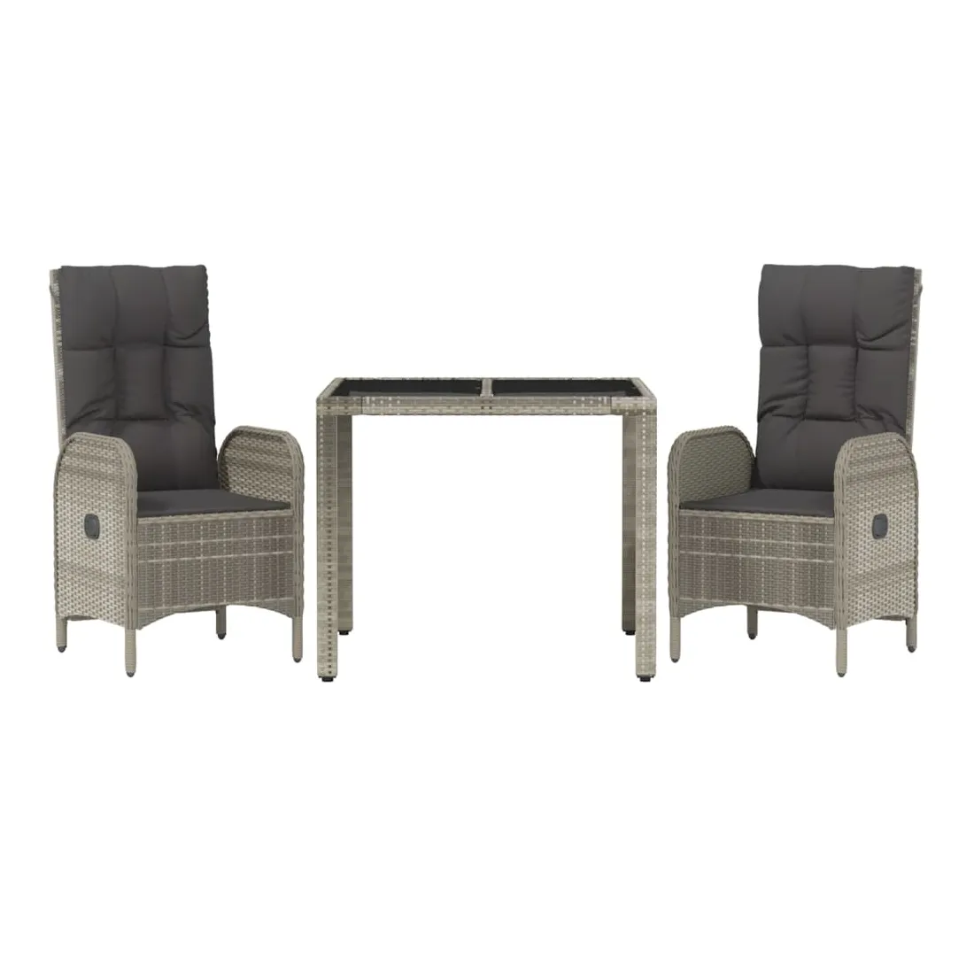 Ensemble à manger de jardin 3 pcs coussins gris résine tressée