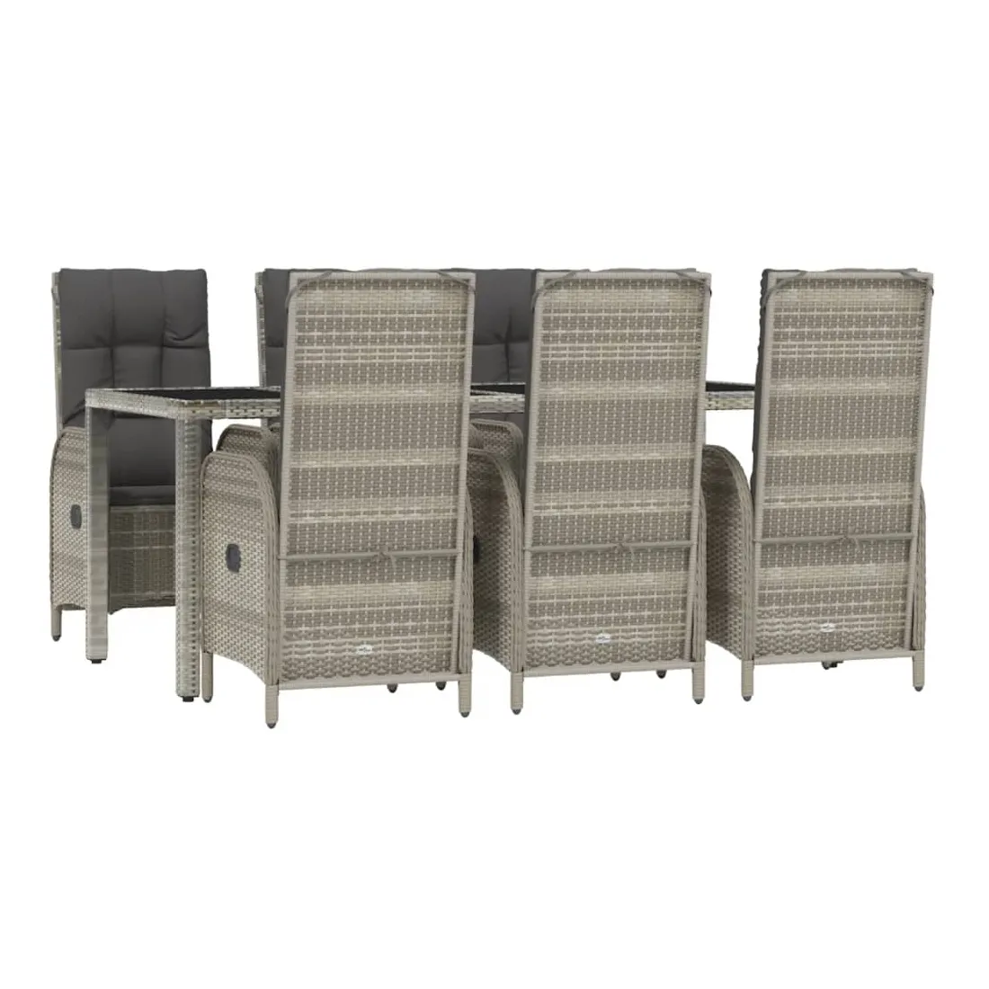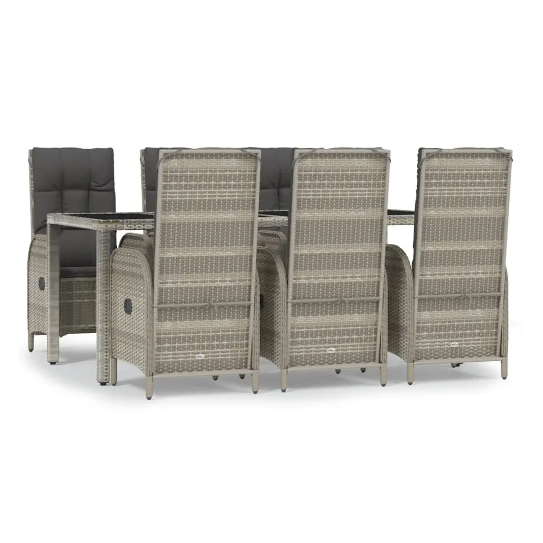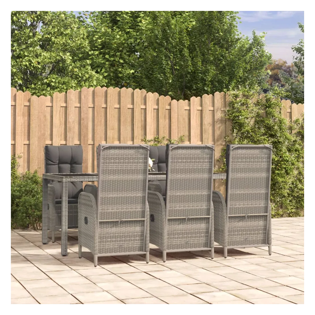 Cet ensemble de salle à manger de jardin tendance, au design élégant et contemporain, est un excellent choix pour manger ou vous détendre dans votre jardin. Matériau résistant aux intempéries : la résine tressée, également connue sous le nom de rotin poly, résiste aux intempéries et est facile à nettoyer. Elle reste belle à l'extérieur pendant une longue période. Elle offre une excellente qualité, commodité et un aspect esthétique.Cadre robuste : les cadres en acier enduit de poudre rendent l'ensemble de salle à manger d'extérieur robuste et stable pour une utilisation quotidienne à l'extérieur.Dessus de table pratique : le dessus lisse de la table de jardin est en verre trempé, facile à nettoyer avec un chiffon humide. De plus, le dessus robuste est parfait pour placer des repas, des boissons et d'autres objets décoratifs.Fonction d'inclinaison : les chaises de jardin sont spécialement conçues avec une fonction d'inclinaison afin que vous puissiez régler le dossier selon votre confort.Expérience d'assise confortable : le dossier ajoute un confort d'assise supplémentaire à la chaise de jardin. De plus, les coussins bien rembourrés vous permettent de vous asseoir confortablement. Bon à savoir :Pour faciliter au maximum le montage, chaque produit est livré avec des instructions. Remarque :Pour que vos meubles d'extérieur restent beaux, nous vous recommandons de les protéger avec une housse imperméable.