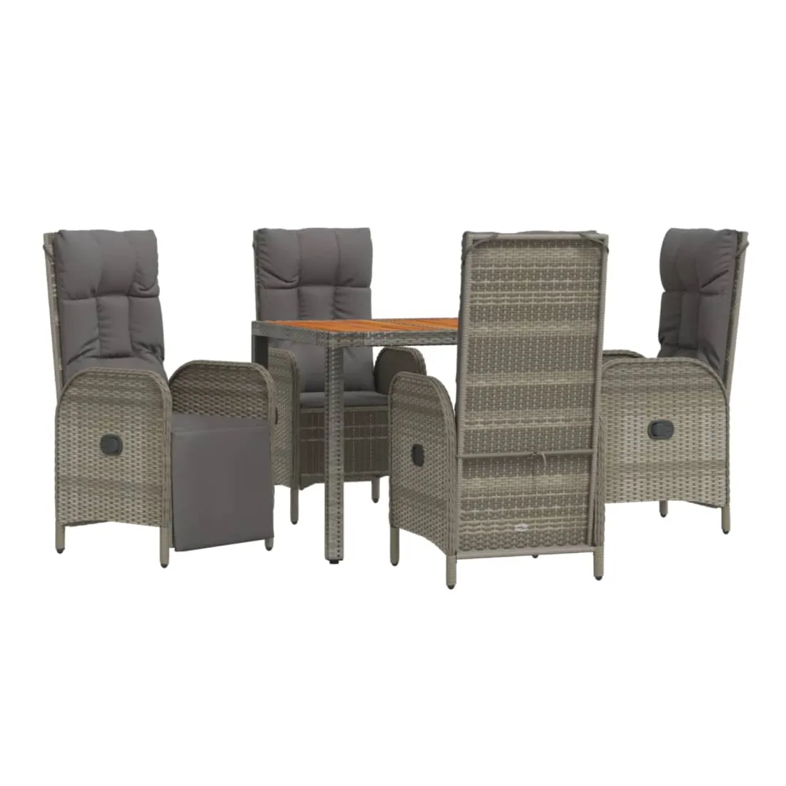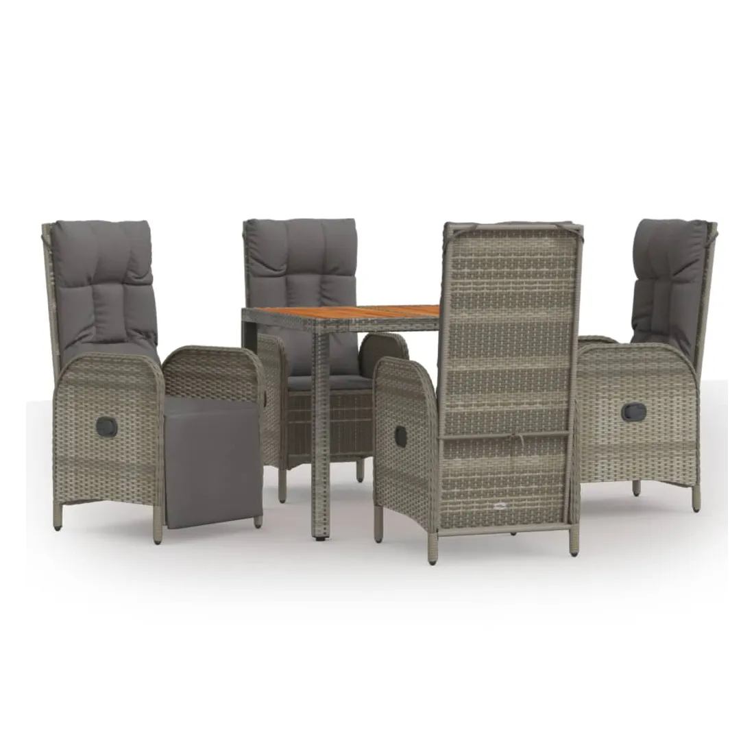 Ensemble à manger de jardin 5 pcs coussins gris résine tressée