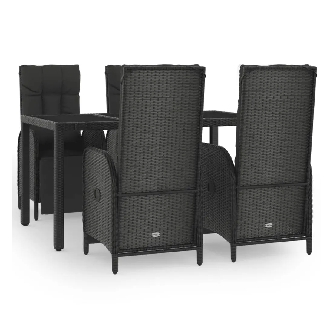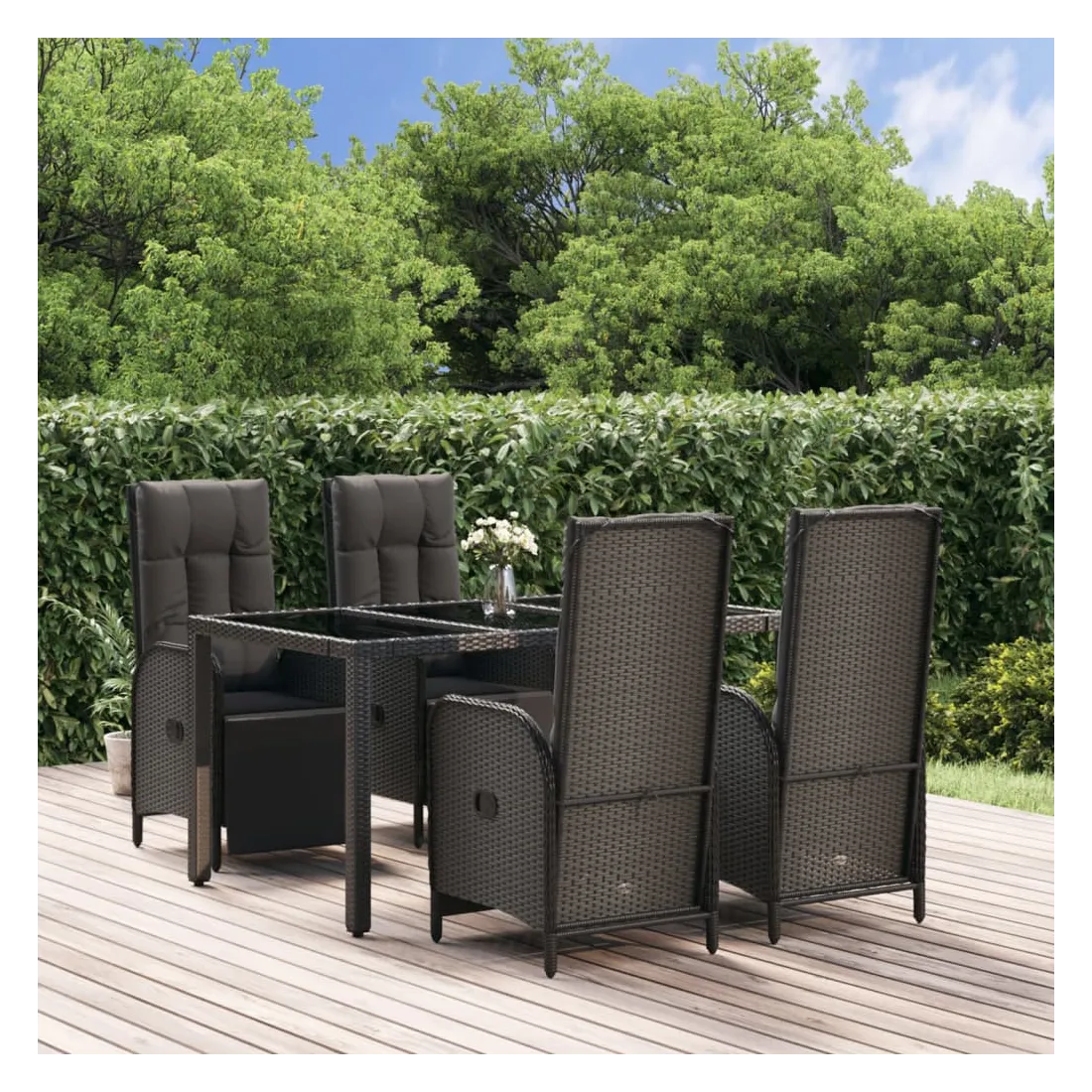 Cet ensemble de salle à manger de jardin tendance, au design élégant et contemporain, est un excellent choix pour manger ou vous détendre dans votre jardin. Matériau résistant aux intempéries : la résine tressée, également connue sous le nom de rotin poly, résiste aux intempéries et est facile à nettoyer. Elle reste belle à l'extérieur pendant une longue période. Elle offre une excellente qualité, commodité et un aspect esthétique.Cadre robuste : les cadres en acier enduit de poudre rendent l'ensemble de salle à manger d'extérieur robuste et stable pour une utilisation quotidienne à l'extérieur.Dessus de table pratique : le dessus lisse de la table de jardin est en verre trempé, facile à nettoyer avec un chiffon humide. De plus, le dessus robuste est parfait pour placer des repas, des boissons et d'autres objets décoratifs.Fonction d'inclinaison : les chaises de jardin sont spécialement conçues avec une fonction d'inclinaison afin que vous puissiez régler le dossier selon votre confort.Expérience d'assise confortable : le dossier ajoute un confort d'assise supplémentaire à la chaise de jardin. De plus, les coussins bien rembourrés vous permettent de vous asseoir confortablement. Bon à savoir :Pour faciliter au maximum le montage, chaque produit est livré avec des instructions. Remarque :Pour que vos meubles d'extérieur restent beaux, nous vous recommandons de les protéger avec une housse imperméable.
