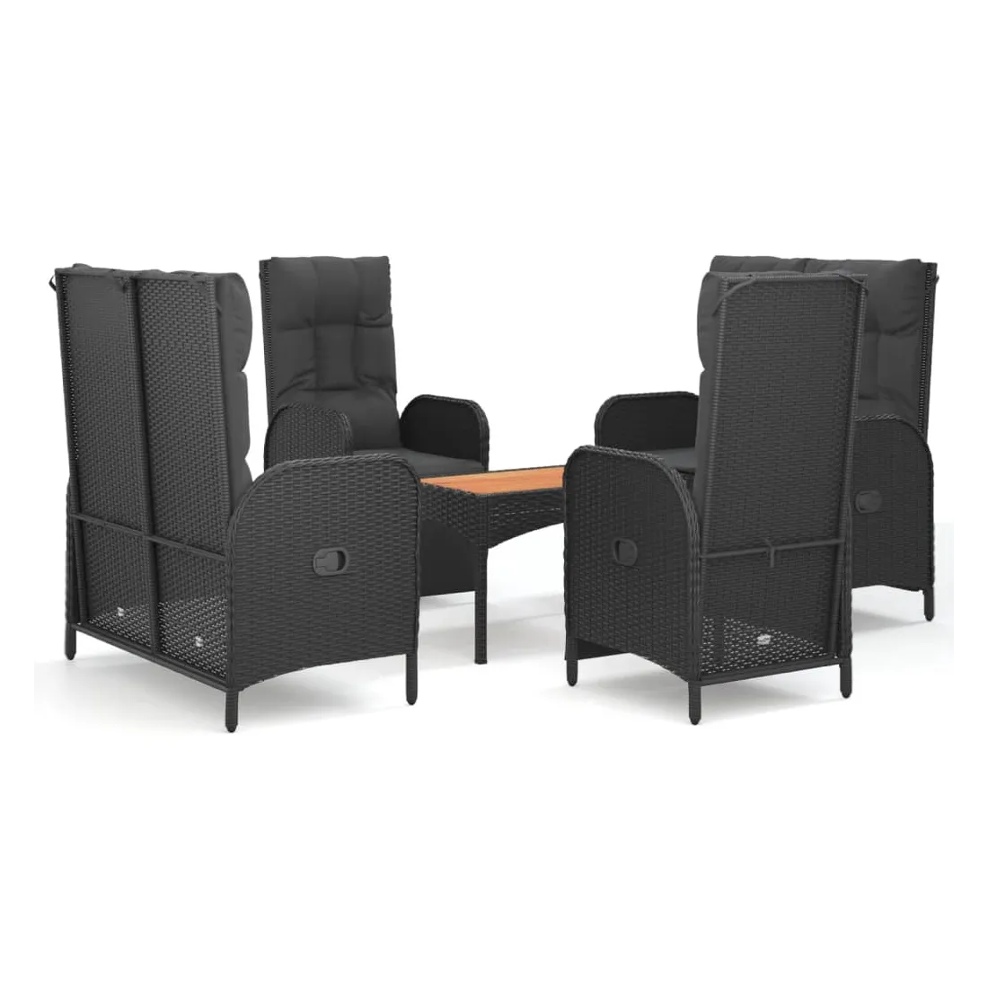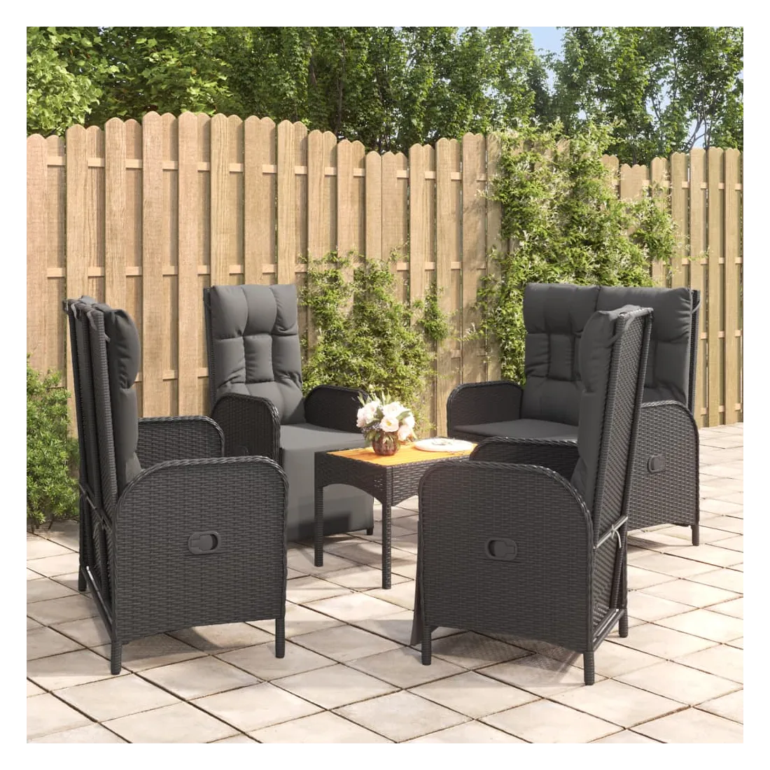 Cet ensemble de salle à manger de jardin tendance, au design élégant et contemporain, est un excellent choix pour manger ou vous détendre dans votre jardin. Matériau résistant aux intempéries : la résine tressée, également connue sous le nom de rotin poly, résiste aux intempéries et est facile à nettoyer. Elle reste belle à l'extérieur pendant une longue période. Elle offre une excellente qualité, commodité et un aspect esthétique.Cadre robuste : les cadres en acier enduit de poudre rendent l'ensemble de salle à manger d'extérieur robuste et stable pour une utilisation quotidienne à l'extérieur.Dessus de table pratique : le dessus de table en bois d'acacia massif est parfait pour placer des boissons, des aliments et des décorations. Il a une belle apparence et est facile à nettoyer.Fonction d'inclinaison : les chaises de jardin sont spécialement conçues avec une fonction d'inclinaison afin que vous puissiez régler le dossier selon votre confort.Expérience d'assise confortable : le dossier ajoute un confort d'assise supplémentaire à la chaise de jardin. De plus, les coussins bien rembourrés vous permettent de vous asseoir confortablement. Bon à savoir :Pour faciliter au maximum le montage, chaque produit est livré avec des instructions. Remarque :Pour que vos meubles d'extérieur restent beaux, nous vous recommandons de les protéger avec une housse imperméable.