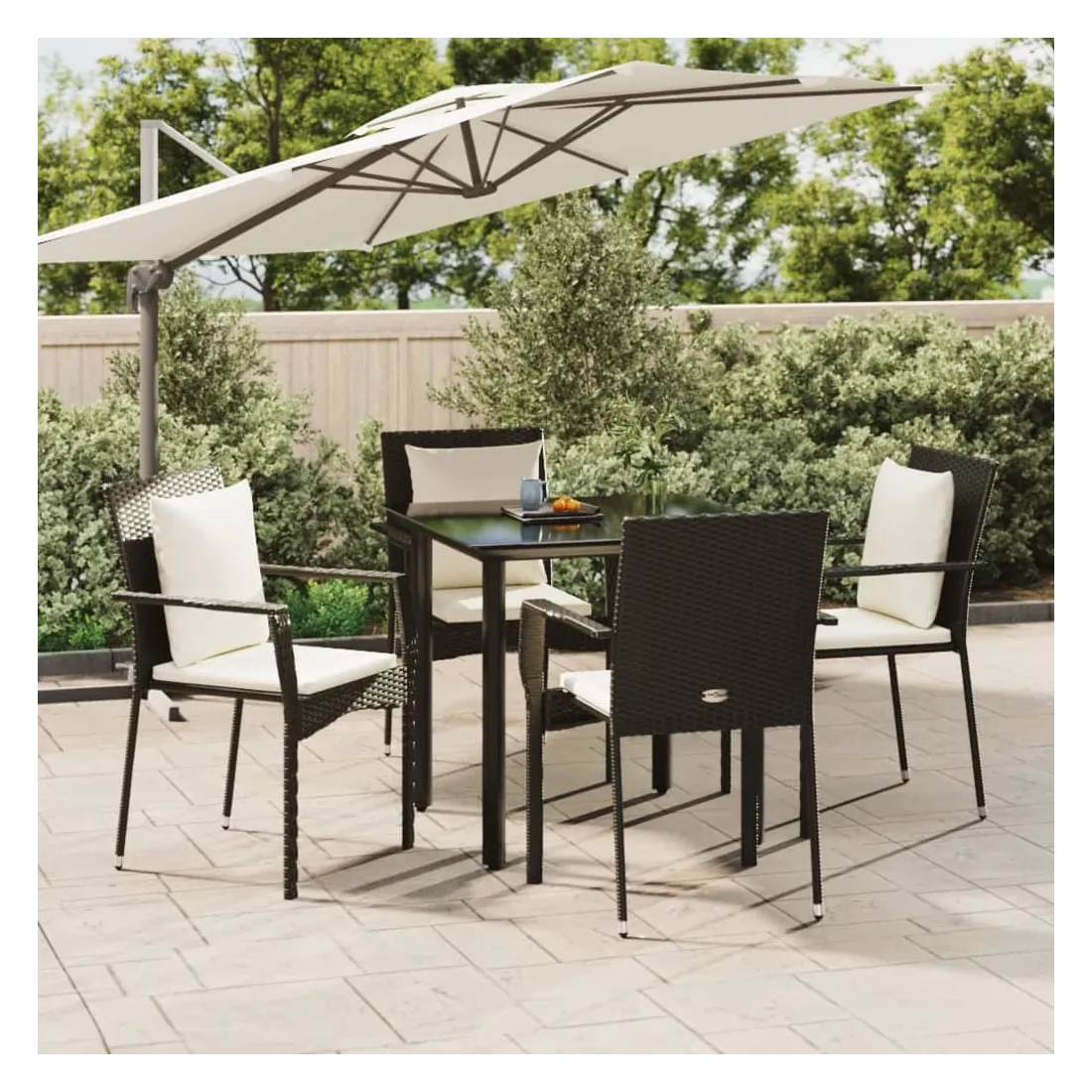 Cet ensemble de salle à manger de jardin tendance, au design élégant et contemporain, est un excellent choix pour manger ou vous détendre dans votre jardin. Matériau résistant aux intempéries : la résine tressée, également connue sous le nom de rotin poly, résiste aux intempéries et est facile à nettoyer. Elle reste belle à l'extérieur pendant une longue période. Elle offre une excellente qualité, commodité et un aspect esthétique.Cadre robuste : les cadres en acier enduit de poudre rendent l'ensemble de salle à manger d'extérieur robuste et stable pour une utilisation quotidienne à l'extérieur.Dessus de table pratique : le dessus lisse de la table de jardin est en verre trempé, facile à nettoyer avec un chiffon humide. De plus, le dessus robuste est parfait pour placer des repas, des boissons et d'autres objets décoratifs.Conception modulaire : l'ensemble de salle à manger de jardin est flexible et facile à déplacer, vous pouvez donc le combiner avec d'autres segments modulaires dans la boutique en ligne pour créer vos propres configurations d'ensemble de salle à manger de jardin !Expérience d'assise confortable : le dossier ajoute un confort d'assise supplémentaire à la chaise de jardin. De plus, les coussins bien rembourrés vous permettent de vous asseoir confortablement. Bon à savoir :Pour faciliter au maximum le montage, chaque produit est livré avec des instructions. Remarque :Pour que vos meubles d'extérieur restent beaux, nous vous recommandons de les protéger avec une housse imperméable.