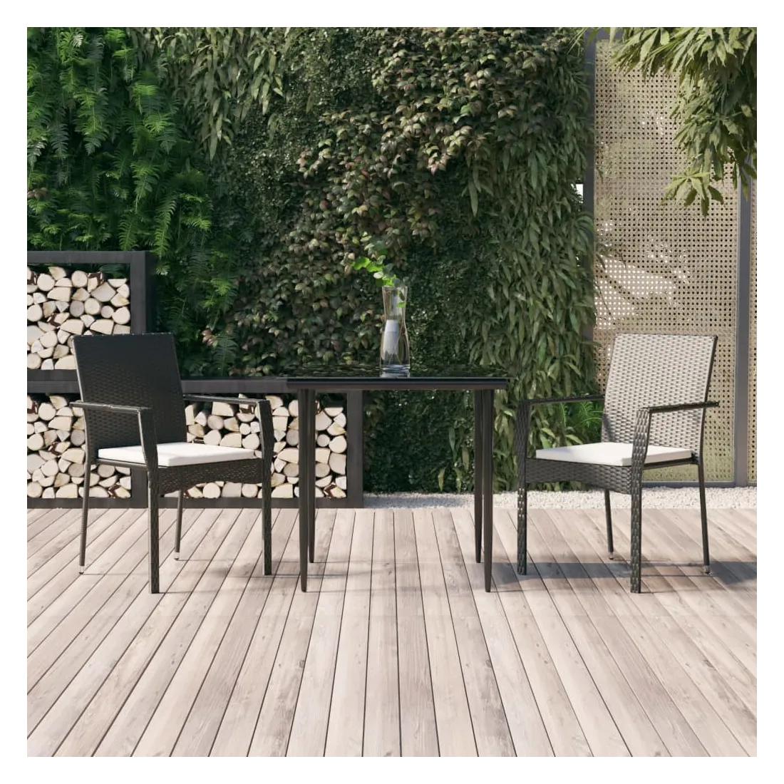 Cet ensemble de salle à manger de jardin tendance, au design élégant et contemporain, est un excellent choix pour manger ou vous détendre dans votre jardin. Matériau résistant aux intempéries : la résine tressée, également connue sous le nom de rotin poly, résiste aux intempéries et est facile à nettoyer. Elle reste belle à l'extérieur pendant une longue période. Elle offre une excellente qualité, commodité et un aspect esthétique.Cadre robuste : les cadres en acier enduit de poudre rendent l'ensemble de salle à manger d'extérieur robuste et stable pour une utilisation quotidienne à l'extérieur.Dessus de table pratique : le dessus lisse de la table de jardin est en verre trempé, facile à nettoyer avec un chiffon humide. De plus, le dessus robuste est parfait pour placer des repas, des boissons et d'autres objets décoratifs.Conception modulaire : l'ensemble de salle à manger de jardin est flexible et facile à déplacer, vous pouvez donc le combiner avec d'autres segments modulaires dans la boutique en ligne pour créer vos propres configurations d'ensemble de salle à manger de jardin !Expérience d'assise confortable : le dossier ajoute un confort d'assise supplémentaire à la chaise de jardin. De plus, les coussins bien rembourrés vous permettent de vous asseoir confortablement. Bon à savoir :Pour faciliter au maximum le montage, chaque produit est livré avec des instructions. Remarque :Pour que vos meubles d'extérieur restent beaux, nous vous recommandons de les protéger avec une housse imperméable.