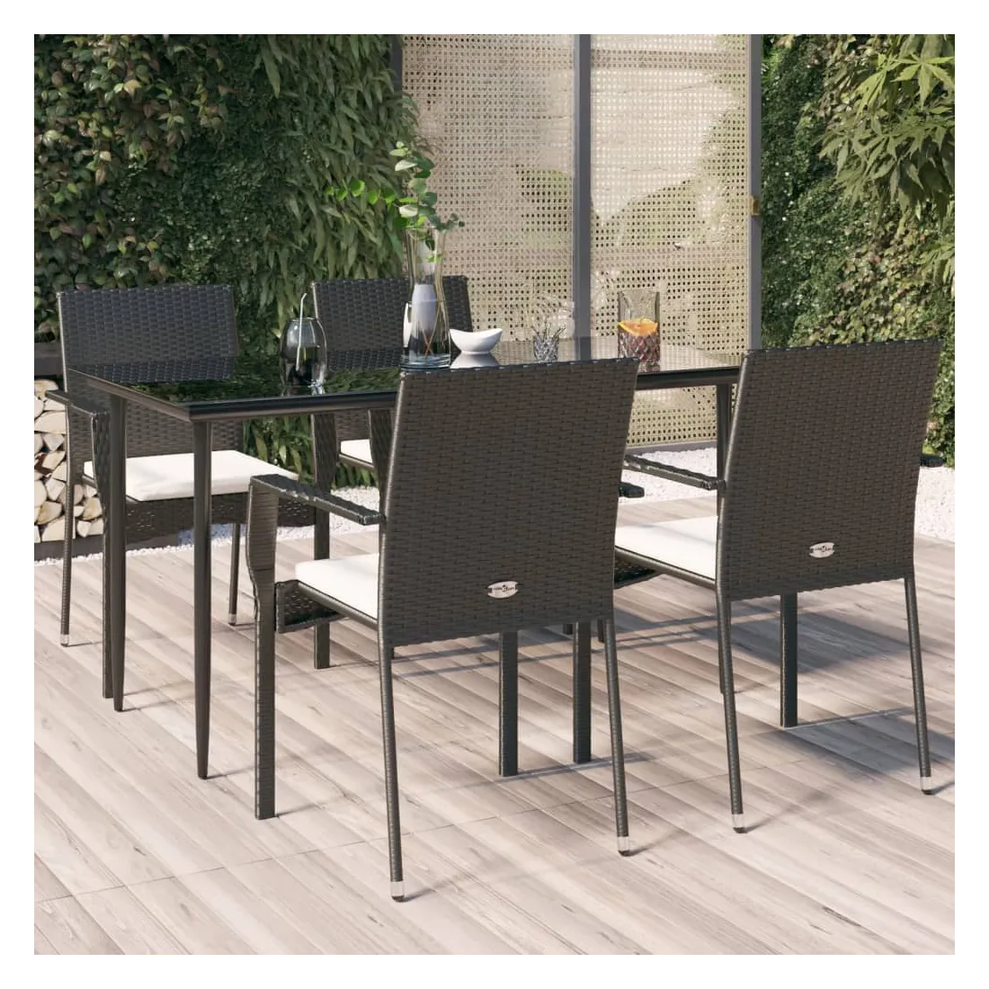 Cet ensemble de salle à manger de jardin tendance, au design élégant et contemporain, est un excellent choix pour manger ou vous détendre dans votre jardin. Matériau résistant aux intempéries : la résine tressée, également connue sous le nom de rotin poly, résiste aux intempéries et est facile à nettoyer. Elle reste belle à l'extérieur pendant une longue période. Elle offre une excellente qualité, commodité et un aspect esthétique.Cadre robuste : les cadres en acier enduit de poudre rendent l'ensemble de salle à manger d'extérieur robuste et stable pour une utilisation quotidienne à l'extérieur.Dessus de table pratique : le dessus lisse de la table de jardin est en verre trempé, facile à nettoyer avec un chiffon humide. De plus, le dessus robuste est parfait pour placer des repas, des boissons et d'autres objets décoratifs.Conception modulaire : l'ensemble de salle à manger de jardin est flexible et facile à déplacer, vous pouvez donc le combiner avec d'autres segments modulaires dans la boutique en ligne pour créer vos propres configurations d'ensemble de salle à manger de jardin !Expérience d'assise confortable : le dossier ajoute un confort d'assise supplémentaire à la chaise de jardin. De plus, les coussins bien rembourrés vous permettent de vous asseoir confortablement. Bon à savoir :Pour faciliter au maximum le montage, chaque produit est livré avec des instructions. Remarque :Pour que vos meubles d'extérieur restent beaux, nous vous recommandons de les protéger avec une housse imperméable.