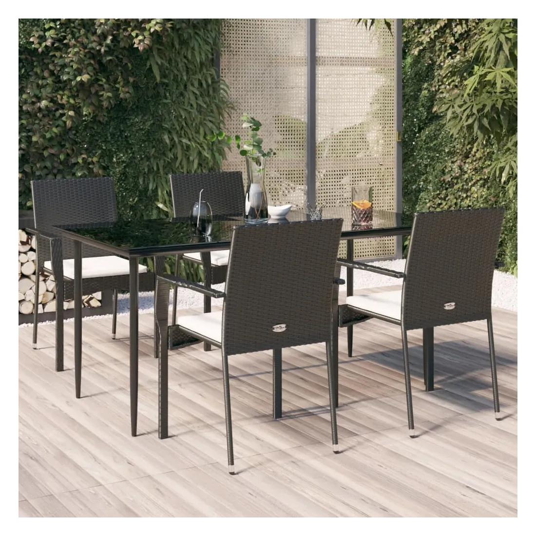 Cet ensemble de salle à manger de jardin tendance, au design élégant et contemporain, est un excellent choix pour manger ou vous détendre dans votre jardin. Matériau résistant aux intempéries : la résine tressée, également connue sous le nom de rotin poly, résiste aux intempéries et est facile à nettoyer. Elle reste belle à l'extérieur pendant une longue période. Elle offre une excellente qualité, commodité et un aspect esthétique.Cadre robuste : les cadres en acier enduit de poudre rendent l'ensemble de salle à manger d'extérieur robuste et stable pour une utilisation quotidienne à l'extérieur.Dessus de table pratique : le dessus lisse de la table de jardin est en verre trempé, facile à nettoyer avec un chiffon humide. De plus, le dessus robuste est parfait pour placer des repas, des boissons et d'autres objets décoratifs.Conception modulaire : l'ensemble de salle à manger de jardin est flexible et facile à déplacer, vous pouvez donc le combiner avec d'autres segments modulaires dans la boutique en ligne pour créer vos propres configurations d'ensemble de salle à manger de jardin !Expérience d'assise confortable : le dossier ajoute un confort d'assise supplémentaire à la chaise de jardin. De plus, les coussins bien rembourrés vous permettent de vous asseoir confortablement. Bon à savoir :Pour faciliter au maximum le montage, chaque produit est livré avec des instructions. Remarque :Pour que vos meubles d'extérieur restent beaux, nous vous recommandons de les protéger avec une housse imperméable.
