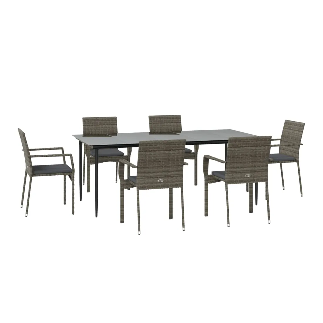 Cet ensemble de salle à manger de jardin tendance, au design élégant et contemporain, est un excellent choix pour manger ou vous détendre dans votre jardin. Matériau résistant aux intempéries : la résine tressée, également connue sous le nom de rotin poly, résiste aux intempéries et est facile à nettoyer. Elle reste belle à l'extérieur pendant une longue période. Elle offre une excellente qualité, commodité et un aspect esthétique.Cadre robuste : les cadres en acier enduit de poudre rendent l'ensemble de salle à manger d'extérieur robuste et stable pour une utilisation quotidienne à l'extérieur.Dessus de table pratique : le dessus lisse de la table de jardin est en verre trempé, facile à nettoyer avec un chiffon humide. De plus, le dessus robuste est parfait pour placer des repas, des boissons et d'autres objets décoratifs.Conception modulaire : l'ensemble de salle à manger de jardin est flexible et facile à déplacer, vous pouvez donc le combiner avec d'autres segments modulaires dans la boutique en ligne pour créer vos propres configurations d'ensemble de salle à manger de jardin !Expérience d'assise confortable : le dossier ajoute un confort d'assise supplémentaire à la chaise de jardin. De plus, les coussins bien rembourrés vous permettent de vous asseoir confortablement. Bon à savoir :Pour faciliter au maximum le montage, chaque produit est livré avec des instructions. Remarque :Pour que vos meubles d'extérieur restent beaux, nous vous recommandons de les protéger avec une housse imperméable.