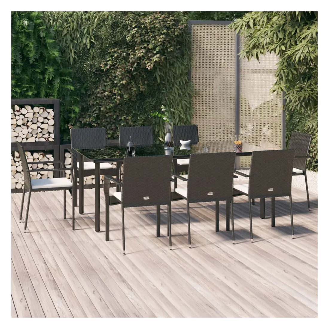 Cet ensemble de salle à manger de jardin tendance, au design élégant et contemporain, est un excellent choix pour manger ou vous détendre dans votre jardin. Matériau résistant aux intempéries : la résine tressée, également connue sous le nom de rotin poly, résiste aux intempéries et est facile à nettoyer. Elle reste belle à l'extérieur pendant une longue période. Elle offre une excellente qualité, commodité et un aspect esthétique.Cadre robuste : les cadres en acier enduit de poudre rendent l'ensemble de salle à manger d'extérieur robuste et stable pour une utilisation quotidienne à l'extérieur.Dessus de table pratique : le dessus lisse de la table de jardin est en verre trempé, facile à nettoyer avec un chiffon humide. De plus, le dessus robuste est parfait pour placer des repas, des boissons et d'autres objets décoratifs.Conception modulaire : l'ensemble de salle à manger de jardin est flexible et facile à déplacer, vous pouvez donc le combiner avec d'autres segments modulaires dans la boutique en ligne pour créer vos propres configurations d'ensemble de salle à manger de jardin !Expérience d'assise confortable : le dossier ajoute un confort d'assise supplémentaire à la chaise de jardin. De plus, les coussins bien rembourrés vous permettent de vous asseoir confortablement. Bon à savoir :Pour faciliter au maximum le montage, chaque produit est livré avec des instructions. Remarque :Pour que vos meubles d'extérieur restent beaux, nous vous recommandons de les protéger avec une housse imperméable.