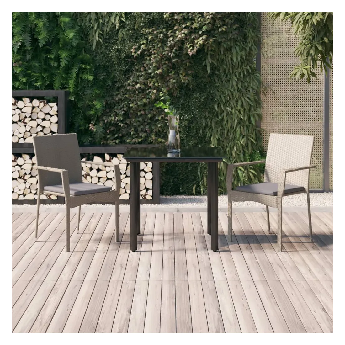 Cet ensemble de salle à manger de jardin tendance, au design élégant et contemporain, est un excellent choix pour manger ou vous détendre dans votre jardin. Matériau résistant aux intempéries : la résine tressée, également connue sous le nom de rotin poly, résiste aux intempéries et est facile à nettoyer. Elle reste belle à l'extérieur pendant une longue période. Elle offre une excellente qualité, commodité et un aspect esthétique.Cadre robuste : les cadres en acier enduit de poudre rendent l'ensemble de salle à manger d'extérieur robuste et stable pour une utilisation quotidienne à l'extérieur.Dessus de table pratique : le dessus lisse de la table de jardin est en verre trempé, facile à nettoyer avec un chiffon humide. De plus, le dessus robuste est parfait pour placer des repas, des boissons et d'autres objets décoratifs.Conception modulaire : l'ensemble de salle à manger de jardin est flexible et facile à déplacer, vous pouvez donc le combiner avec d'autres segments modulaires dans la boutique en ligne pour créer vos propres configurations d'ensemble de salle à manger de jardin !Expérience d'assise confortable : le dossier ajoute un confort d'assise supplémentaire à la chaise de jardin. De plus, les coussins bien rembourrés vous permettent de vous asseoir confortablement. Bon à savoir :Pour faciliter au maximum le montage, chaque produit est livré avec des instructions. Remarque :Pour que vos meubles d'extérieur restent beaux, nous vous recommandons de les protéger avec une housse imperméable.