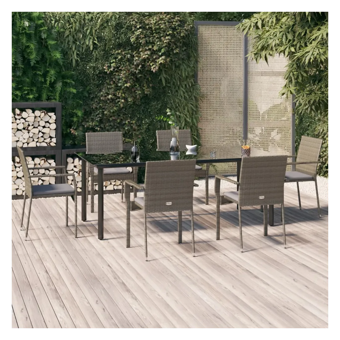Cet ensemble de salle à manger de jardin tendance, au design élégant et contemporain, est un excellent choix pour manger ou vous détendre dans votre jardin. Matériau résistant aux intempéries : la résine tressée, également connue sous le nom de rotin poly, résiste aux intempéries et est facile à nettoyer. Elle reste belle à l'extérieur pendant une longue période. Elle offre une excellente qualité, commodité et un aspect esthétique.Cadre robuste : les cadres en acier enduit de poudre rendent l'ensemble de salle à manger d'extérieur robuste et stable pour une utilisation quotidienne à l'extérieur.Dessus de table pratique : le dessus lisse de la table de jardin est en verre trempé, facile à nettoyer avec un chiffon humide. De plus, le dessus robuste est parfait pour placer des repas, des boissons et d'autres objets décoratifs.Conception modulaire : l'ensemble de salle à manger de jardin est flexible et facile à déplacer, vous pouvez donc le combiner avec d'autres segments modulaires dans la boutique en ligne pour créer vos propres configurations d'ensemble de salle à manger de jardin !Expérience d'assise confortable : le dossier ajoute un confort d'assise supplémentaire à la chaise de jardin. De plus, les coussins bien rembourrés vous permettent de vous asseoir confortablement. Bon à savoir :Pour faciliter au maximum le montage, chaque produit est livré avec des instructions. Remarque :Pour que vos meubles d'extérieur restent beaux, nous vous recommandons de les protéger avec une housse imperméable.