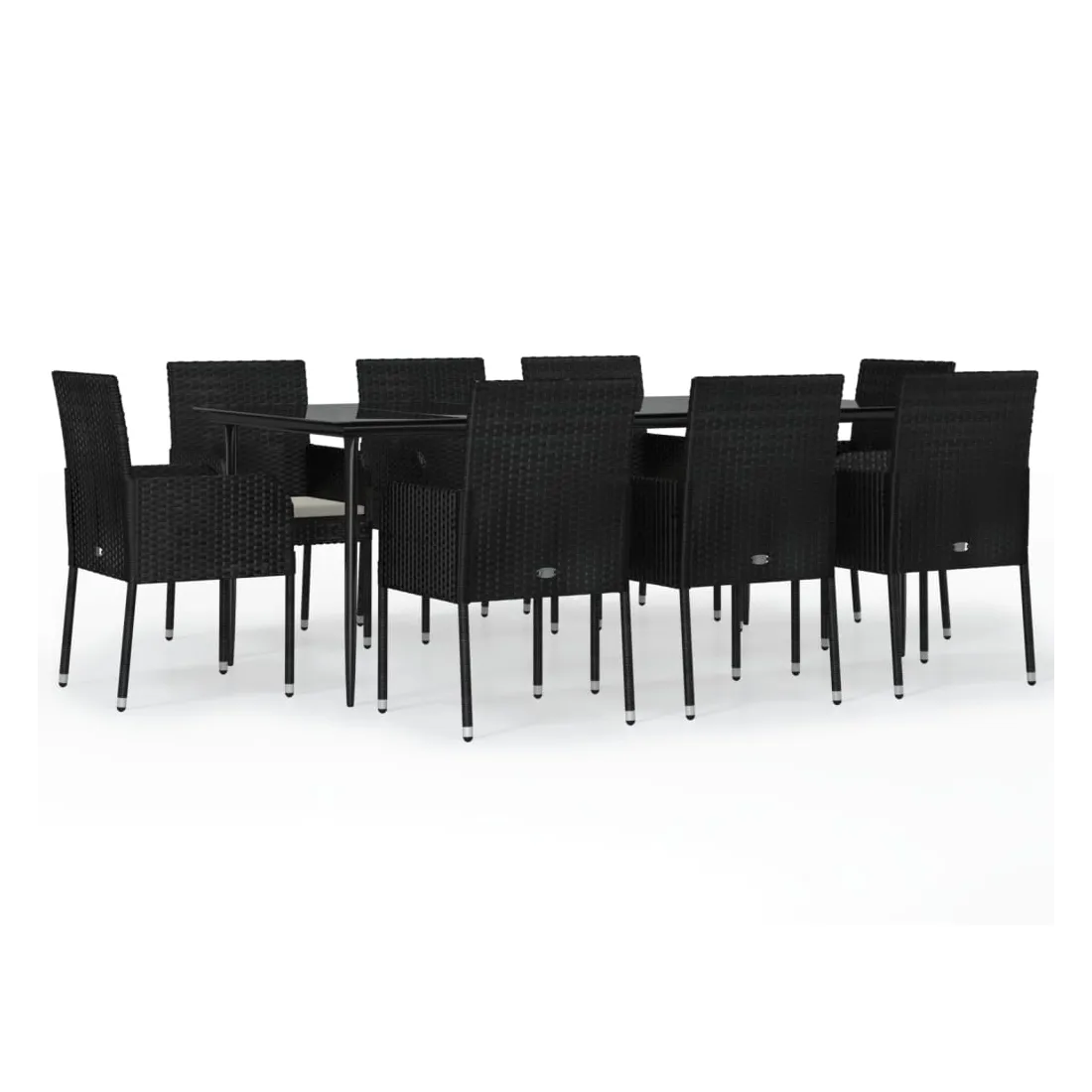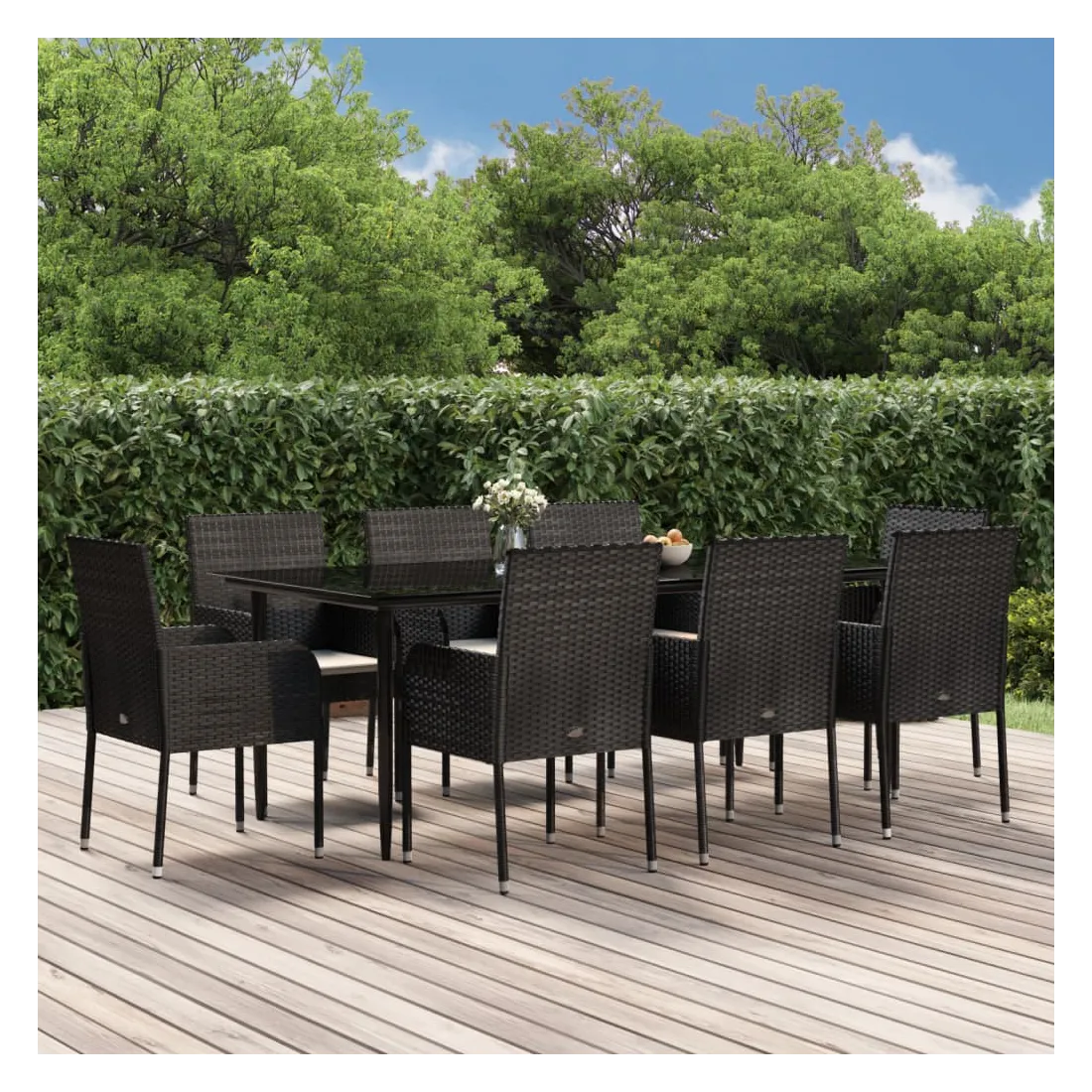 Cet ensemble de salle à manger de jardin tendance, au design élégant et contemporain, est un excellent choix pour manger ou vous détendre dans votre jardin. Matériau résistant aux intempéries : la résine tressée, également connue sous le nom de rotin poly, résiste aux intempéries et est facile à nettoyer. Elle reste belle à l'extérieur pendant une longue période. Elle offre une excellente qualité, commodité et un aspect esthétique.Cadre robuste : les cadres en acier enduit de poudre rendent l'ensemble de salle à manger d'extérieur robuste et stable pour une utilisation quotidienne à l'extérieur.Dessus de table pratique : le dessus lisse de la table de jardin est en verre trempé, facile à nettoyer avec un chiffon humide. De plus, le dessus robuste est parfait pour placer des repas, des boissons et d'autres objets décoratifs.Conception modulaire : l'ensemble de salle à manger de jardin est flexible et facile à déplacer, vous pouvez donc le combiner avec d'autres segments modulaires dans la boutique en ligne pour créer vos propres configurations d'ensemble de salle à manger de jardin !Expérience d'assise confortable : le dossier ajoute un confort d'assise supplémentaire à la chaise de jardin. De plus, les coussins bien rembourrés vous permettent de vous asseoir confortablement. Bon à savoir :Pour faciliter au maximum le montage, chaque produit est livré avec des instructions. Remarque :Pour que vos meubles d'extérieur restent beaux, nous vous recommandons de les protéger avec une housse imperméable.