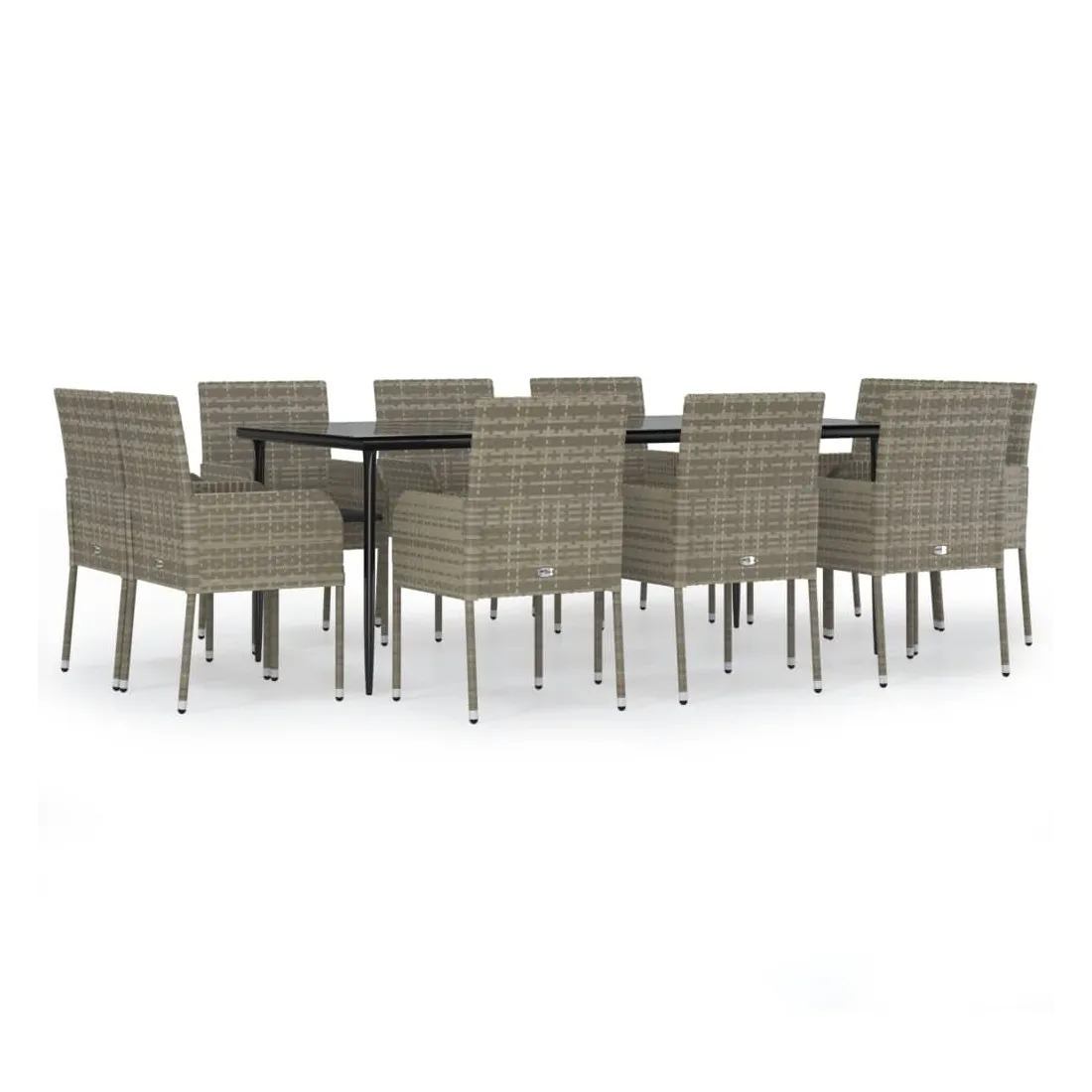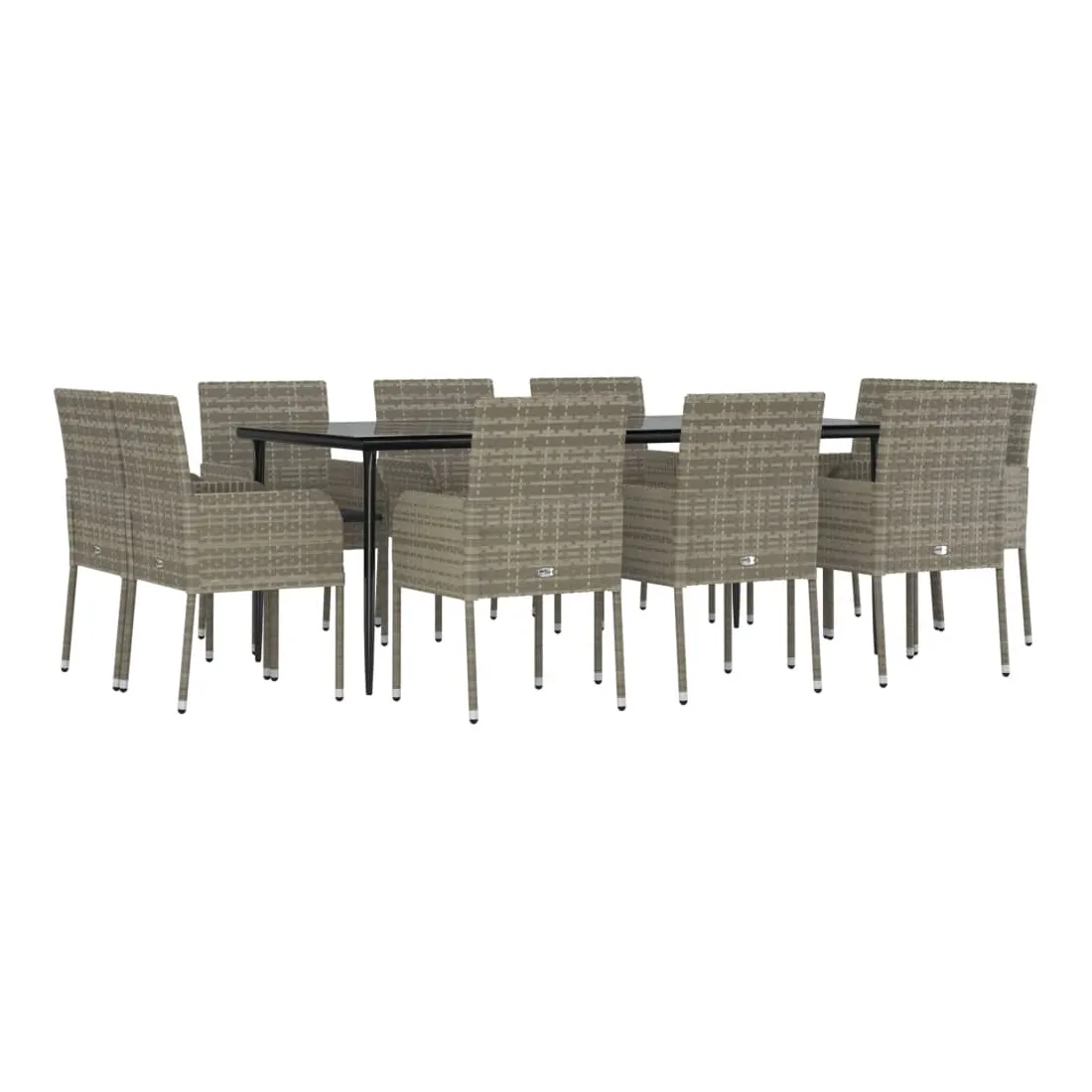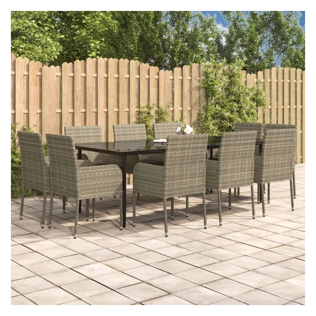 Cet ensemble de salle à manger de jardin tendance, au design élégant et contemporain, est un excellent choix pour manger ou vous détendre dans votre jardin. Matériau résistant aux intempéries : la résine tressée, également connue sous le nom de rotin poly, résiste aux intempéries et est facile à nettoyer. Elle reste belle à l'extérieur pendant une longue période. Elle offre une excellente qualité, commodité et un aspect esthétique.Cadre robuste : les cadres en acier enduit de poudre rendent l'ensemble de salle à manger d'extérieur robuste et stable pour une utilisation quotidienne à l'extérieur.Dessus de table pratique : le dessus lisse de la table de jardin est en verre trempé, facile à nettoyer avec un chiffon humide. De plus, le dessus robuste est parfait pour placer des repas, des boissons et d'autres objets décoratifs.Conception modulaire : l'ensemble de salle à manger de jardin est flexible et facile à déplacer, vous pouvez donc le combiner avec d'autres segments modulaires dans la boutique en ligne pour créer vos propres configurations d'ensemble de salle à manger de jardin !Expérience d'assise confortable : le dossier ajoute un confort d'assise supplémentaire à la chaise de jardin. De plus, les coussins bien rembourrés vous permettent de vous asseoir confortablement. Bon à savoir :Pour faciliter au maximum le montage, chaque produit est livré avec des instructions. Remarque :Pour que vos meubles d'extérieur restent beaux, nous vous recommandons de les protéger avec une housse imperméable.