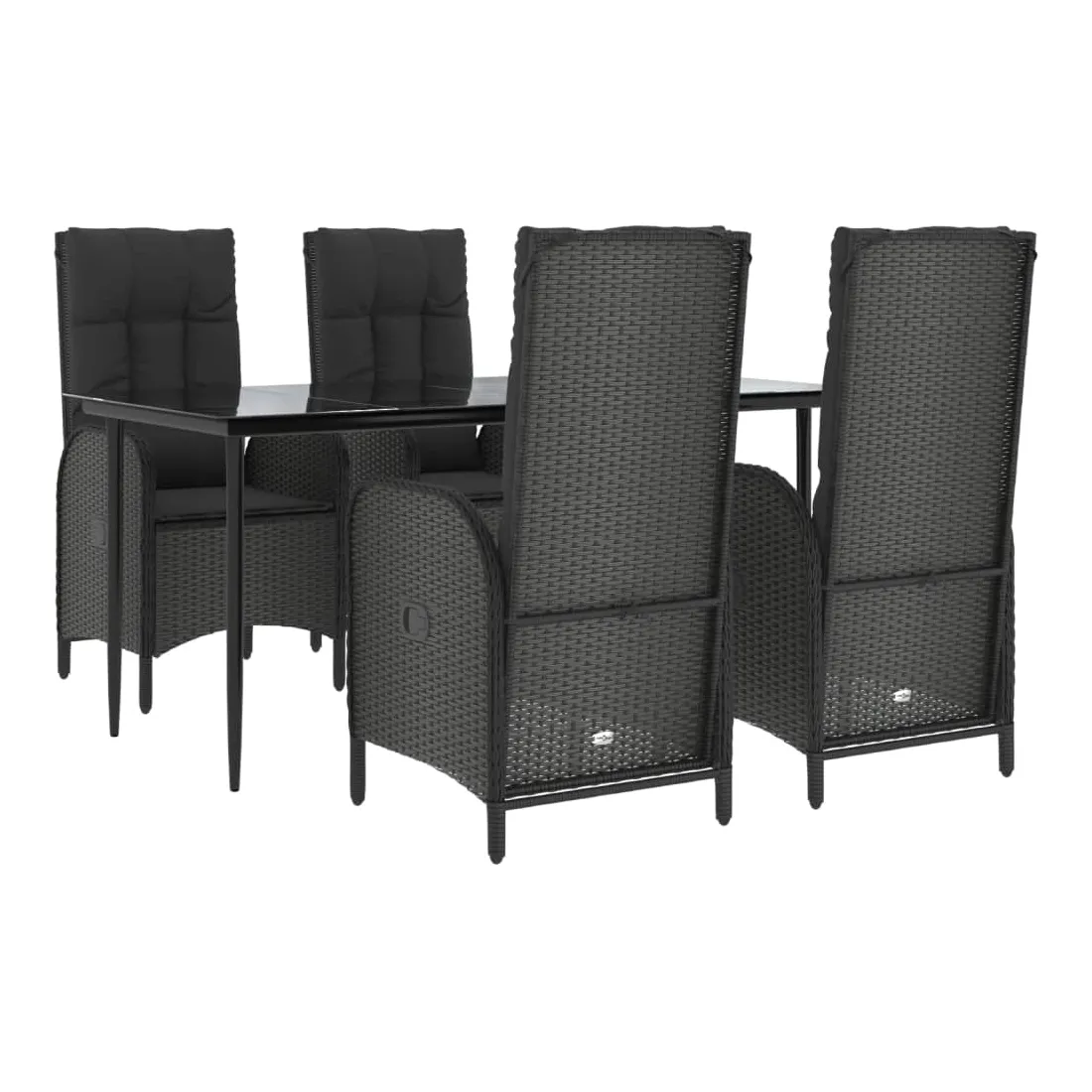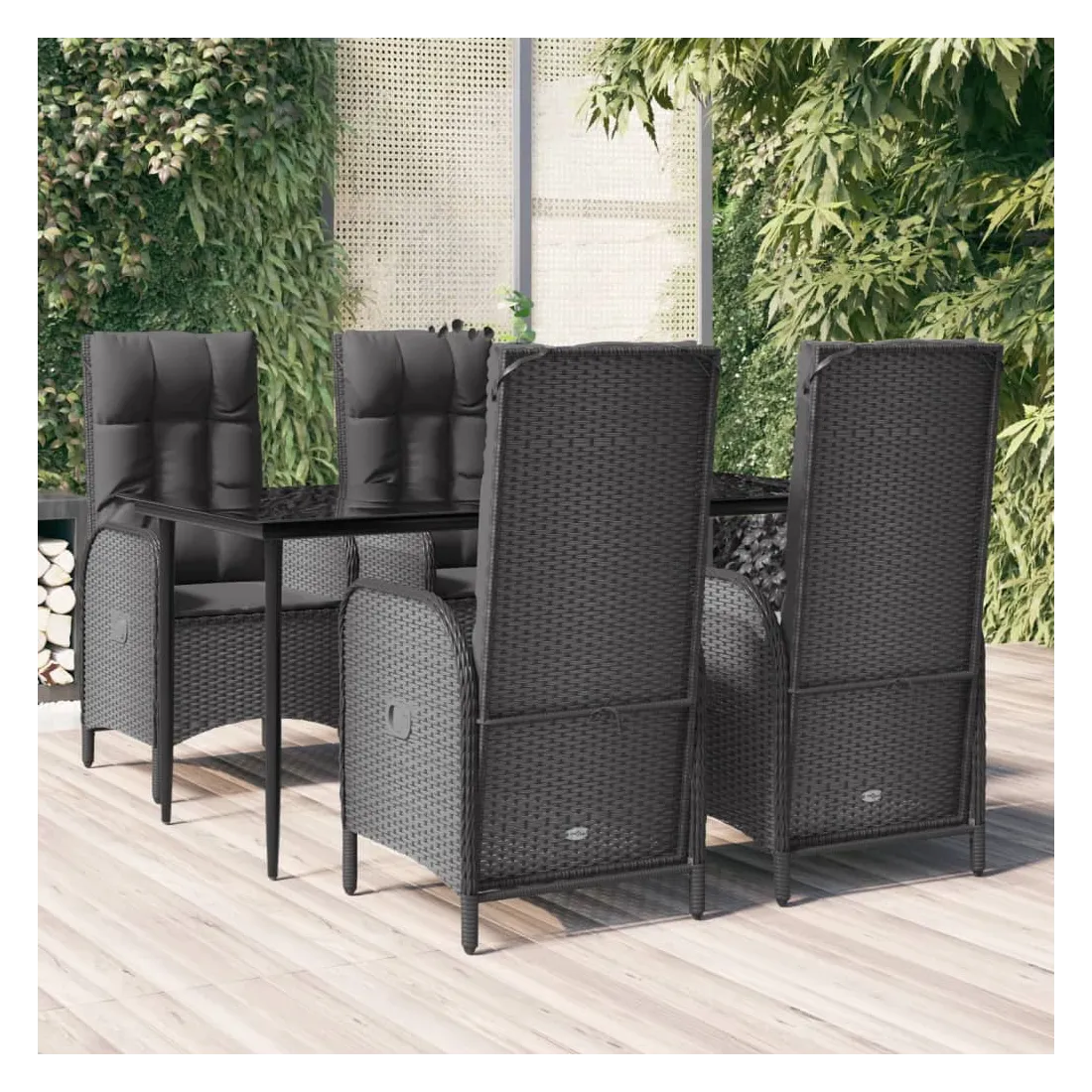 Cet ensemble de salle à manger de jardin tendance, au design élégant et contemporain, est un excellent choix pour manger ou vous détendre dans votre jardin. Matériau résistant aux intempéries : la résine tressée, également connue sous le nom de rotin poly, résiste aux intempéries et est facile à nettoyer. Elle reste belle à l'extérieur pendant une longue période. Elle offre une excellente qualité, commodité et un aspect esthétique.Cadre robuste : les cadres en acier enduit de poudre rendent l'ensemble de salle à manger d'extérieur robuste et stable pour une utilisation quotidienne à l'extérieur.Dessus de table pratique : le dessus lisse de la table de jardin est en verre trempé, facile à nettoyer avec un chiffon humide. De plus, le dessus robuste est parfait pour placer des repas, des boissons et d'autres objets décoratifs.Fonction d'inclinaison : les chaises de jardin sont spécialement conçues avec une fonction d'inclinaison afin que vous puissiez régler le dossier selon votre confort.Expérience d'assise confortable : le dossier ajoute un confort d'assise supplémentaire à la chaise de jardin. De plus, les coussins bien rembourrés vous permettent de vous asseoir confortablement. Bon à savoir :Pour faciliter au maximum le montage, chaque produit est livré avec des instructions. Remarque :Pour que vos meubles d'extérieur restent beaux, nous vous recommandons de les protéger avec une housse imperméable.