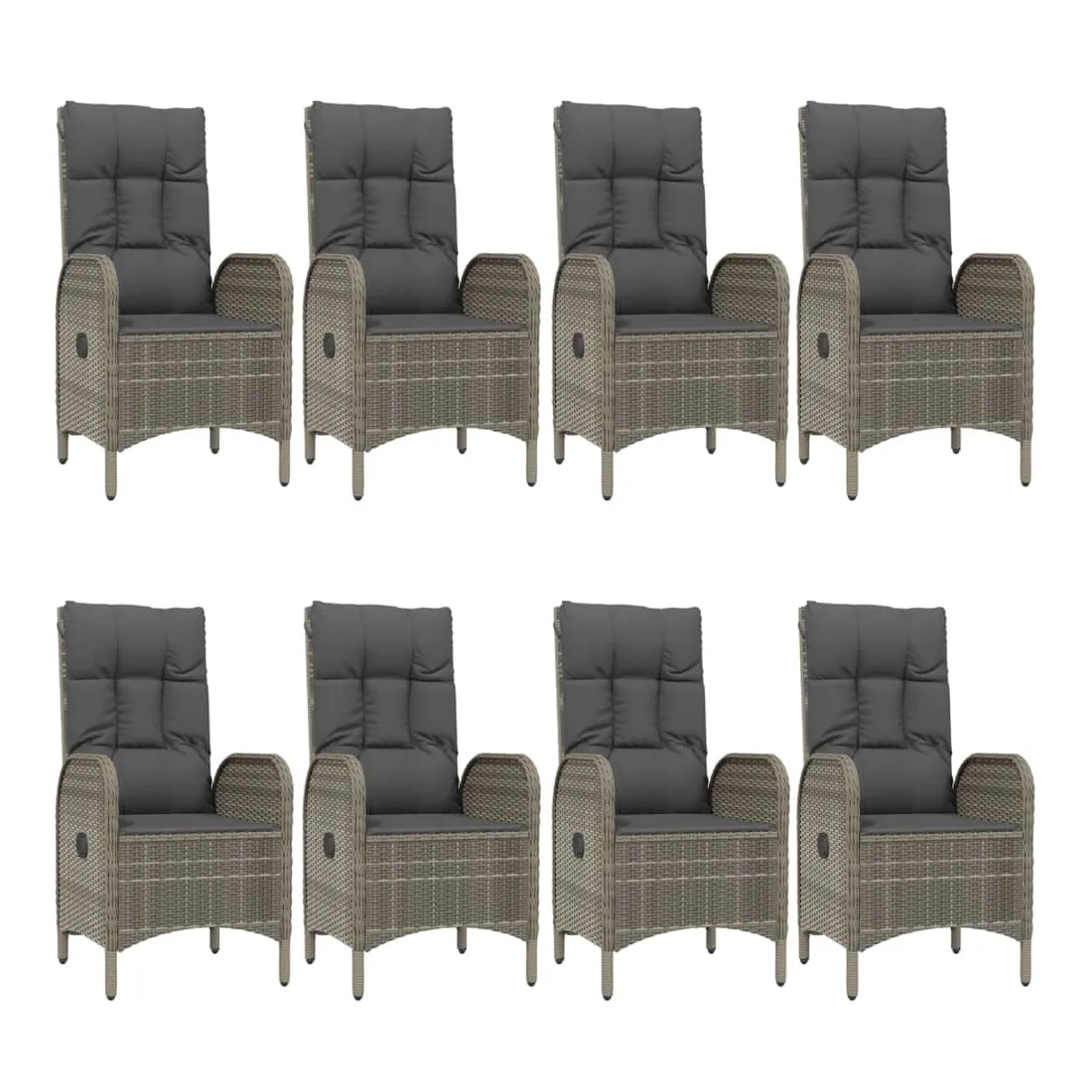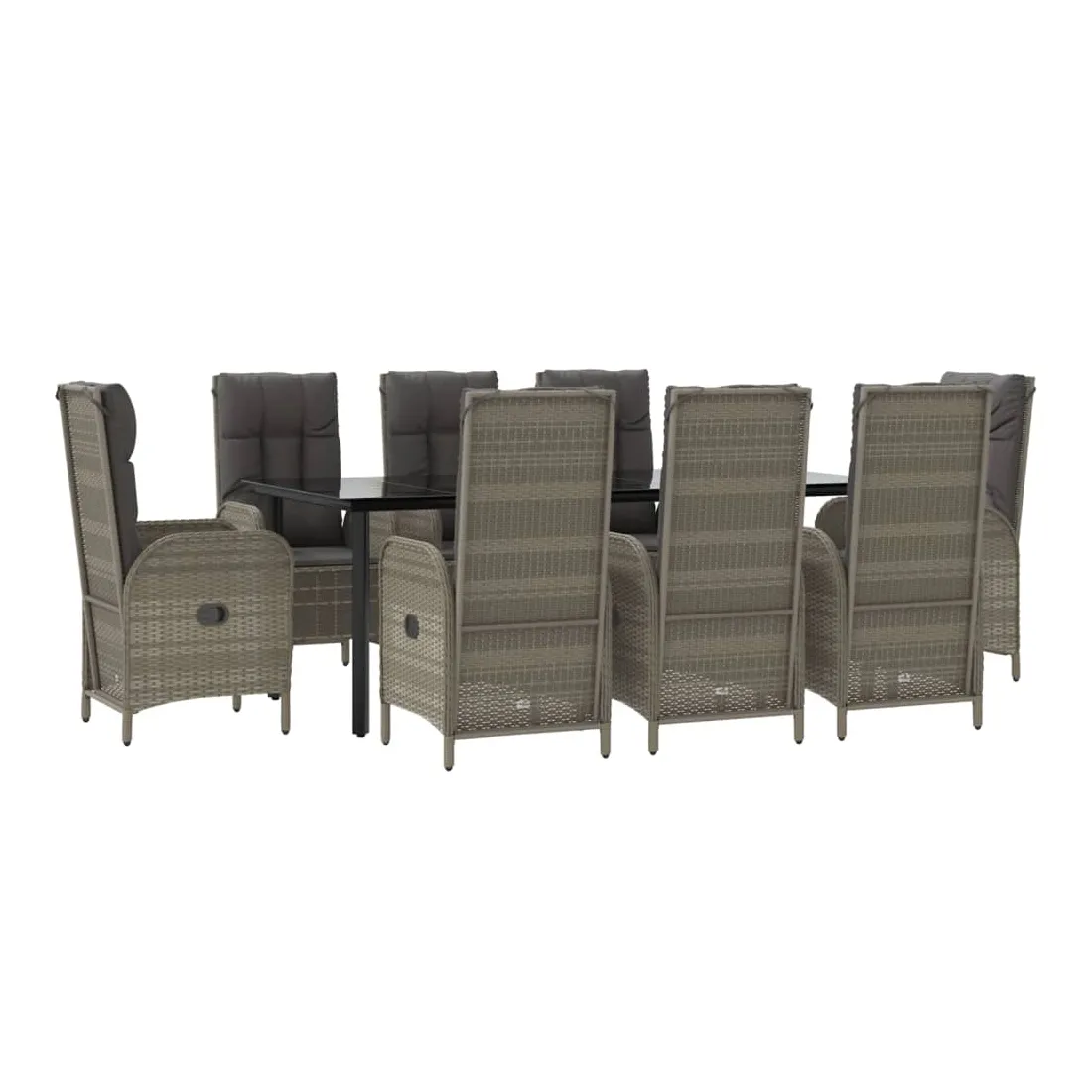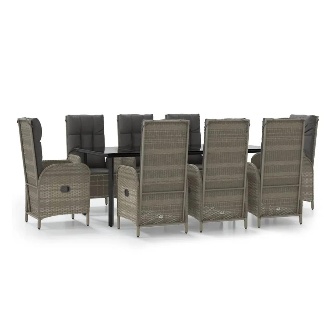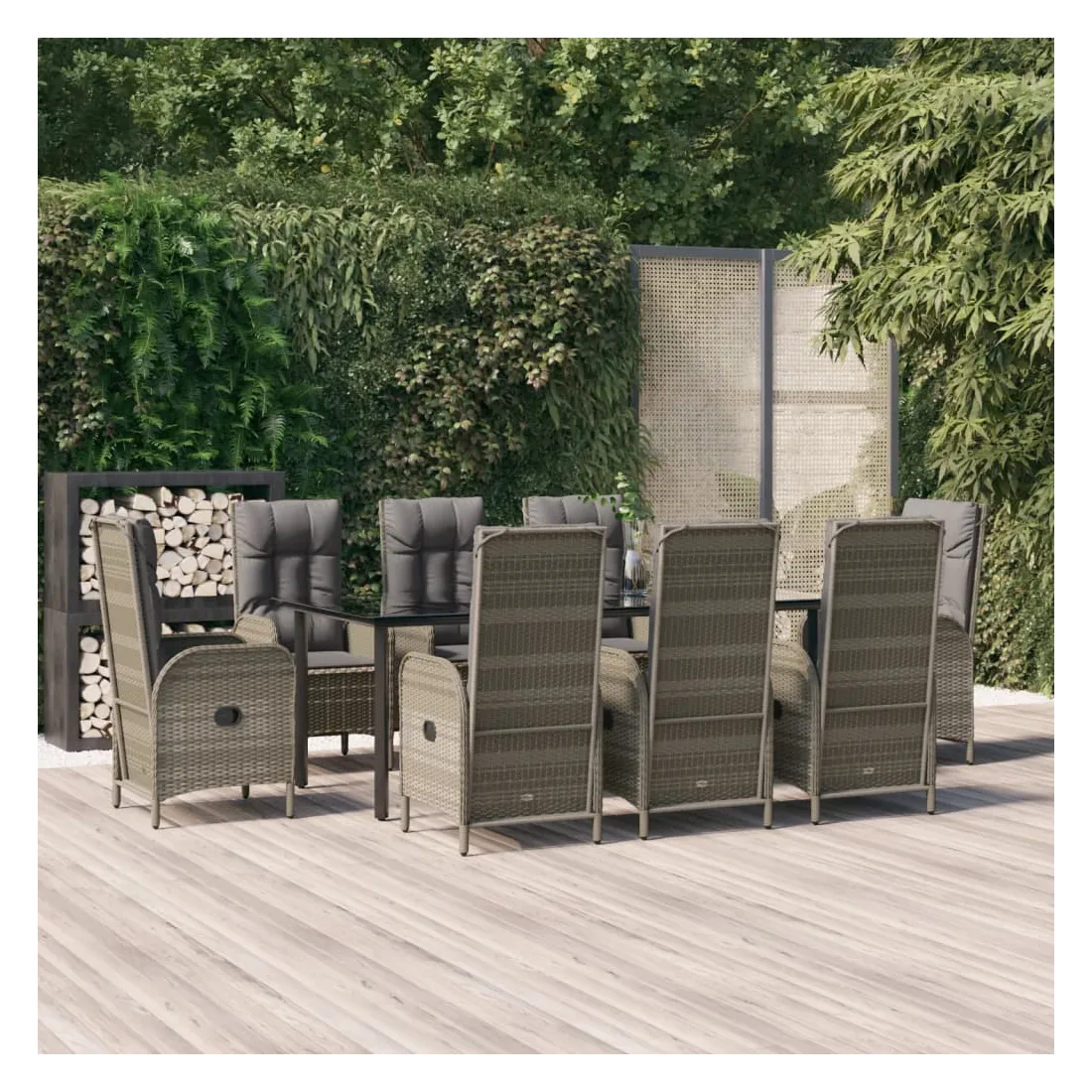 Cet ensemble de salle à manger de jardin tendance, au design élégant et contemporain, est un excellent choix pour manger ou vous détendre dans votre jardin. Matériau résistant aux intempéries : la résine tressée, également connue sous le nom de rotin poly, résiste aux intempéries et est facile à nettoyer. Elle reste belle à l'extérieur pendant une longue période. Elle offre une excellente qualité, commodité et un aspect esthétique.Cadre robuste : les cadres en acier enduit de poudre rendent l'ensemble de salle à manger d'extérieur robuste et stable pour une utilisation quotidienne à l'extérieur.Dessus de table pratique : le dessus lisse de la table de jardin est en verre trempé, facile à nettoyer avec un chiffon humide. De plus, le dessus robuste est parfait pour placer des repas, des boissons et d'autres objets décoratifs.Fonction d'inclinaison : les chaises de jardin sont spécialement conçues avec une fonction d'inclinaison afin que vous puissiez régler le dossier selon votre confort.Expérience d'assise confortable : le dossier ajoute un confort d'assise supplémentaire à la chaise de jardin. De plus, les coussins bien rembourrés vous permettent de vous asseoir confortablement. Bon à savoir :Pour faciliter au maximum le montage, chaque produit est livré avec des instructions. Remarque :Pour que vos meubles d'extérieur restent beaux, nous vous recommandons de les protéger avec une housse imperméable.