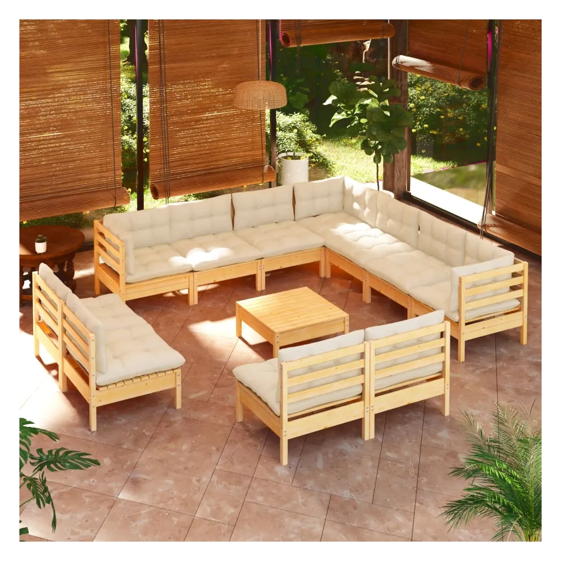 Ce salon de jardin est un excellent choix pour vous détendre et profiter du beau temps, faire une sieste ou discuter avec votre famille ou vos amis. Le salon de patio est fabriqué en bois de pin massif, ce qui le rend robuste et stable. Les coussins ajoutent un confort supplémentaire. Vous pouvez le combiner avec d’autres segments modulaires pour créer vos propres configurations de salon de jardin ! Remarque : afin de prolonger la durée de vie des meubles d'extérieur, nous vous recommandons de les protéger avec une housse imperméable.