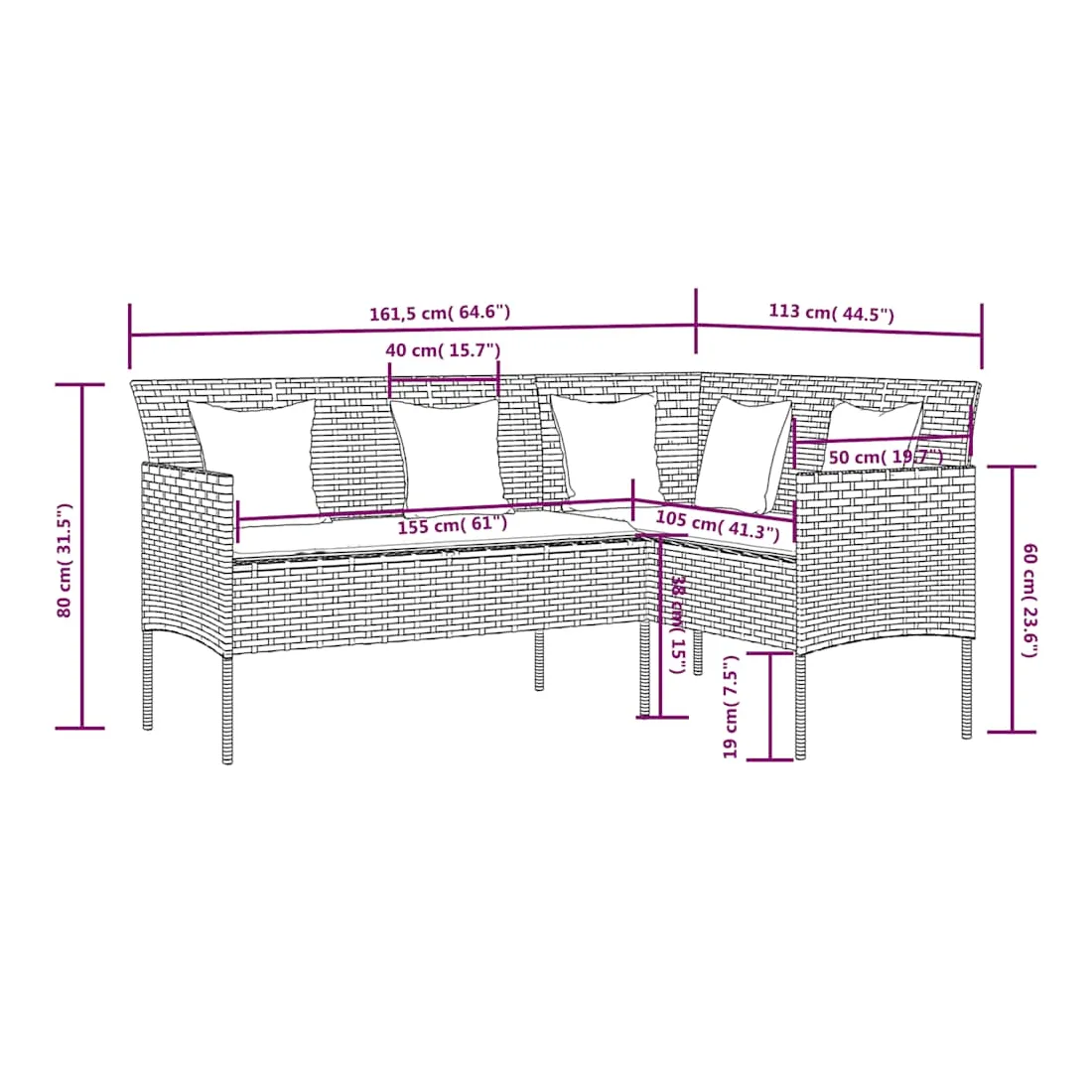 - Dimensions du canapé en L : 161,5 x 113 x 80 cm (l x P x H)