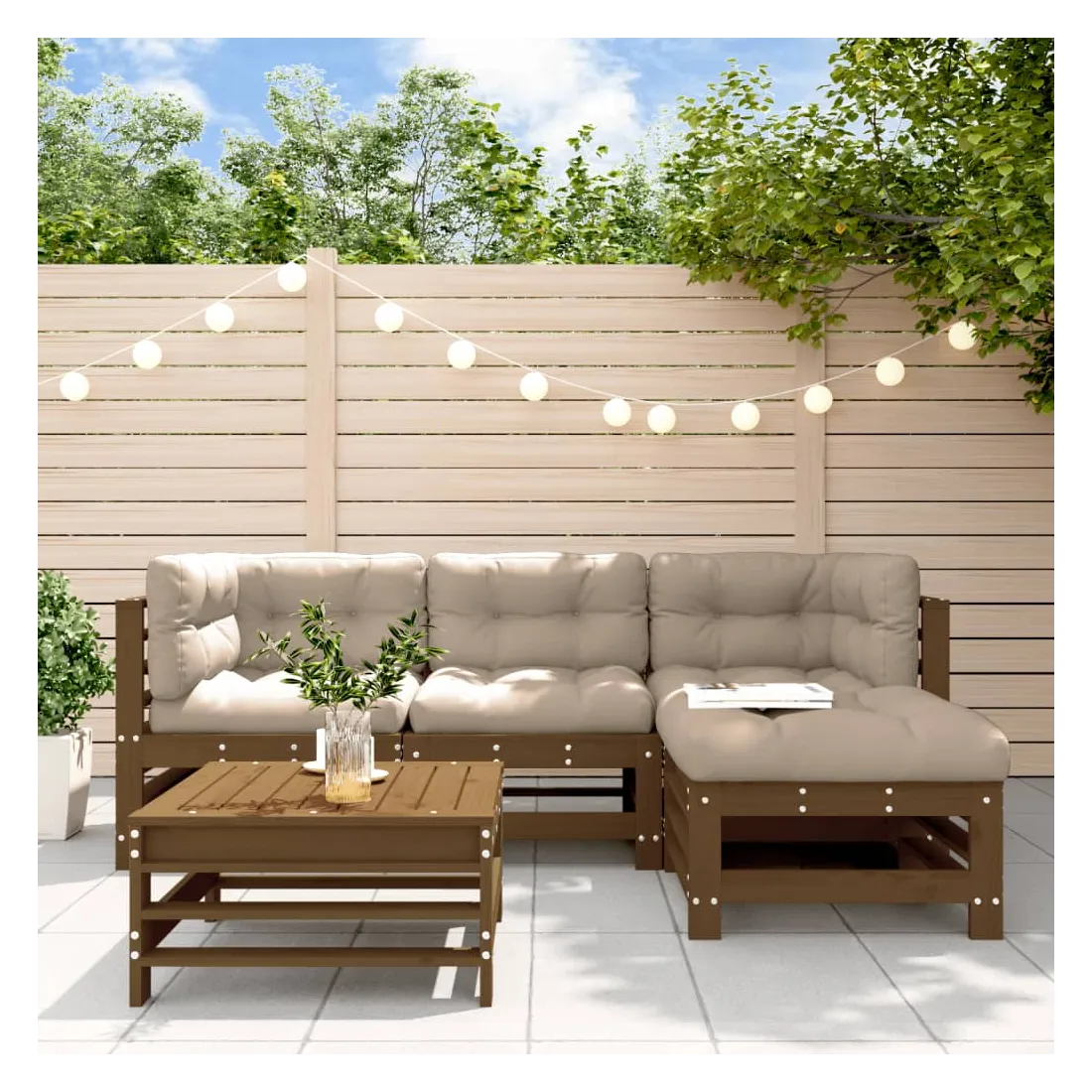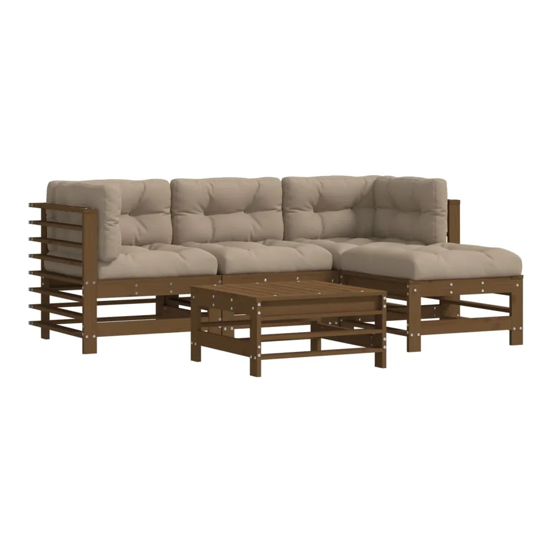 Salon de jardin 5 pcs avec coussins marron miel bois massif