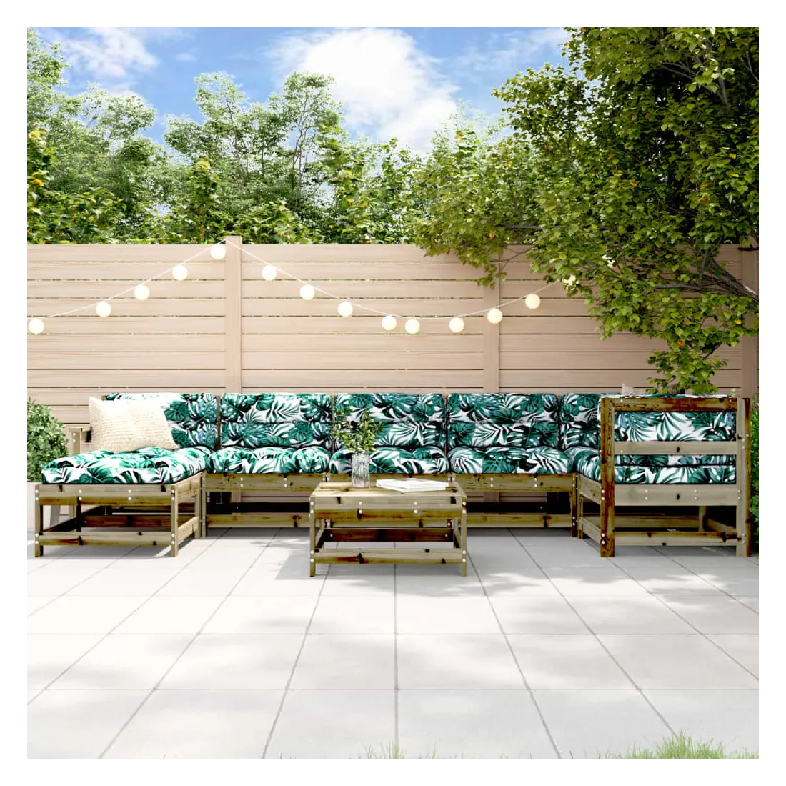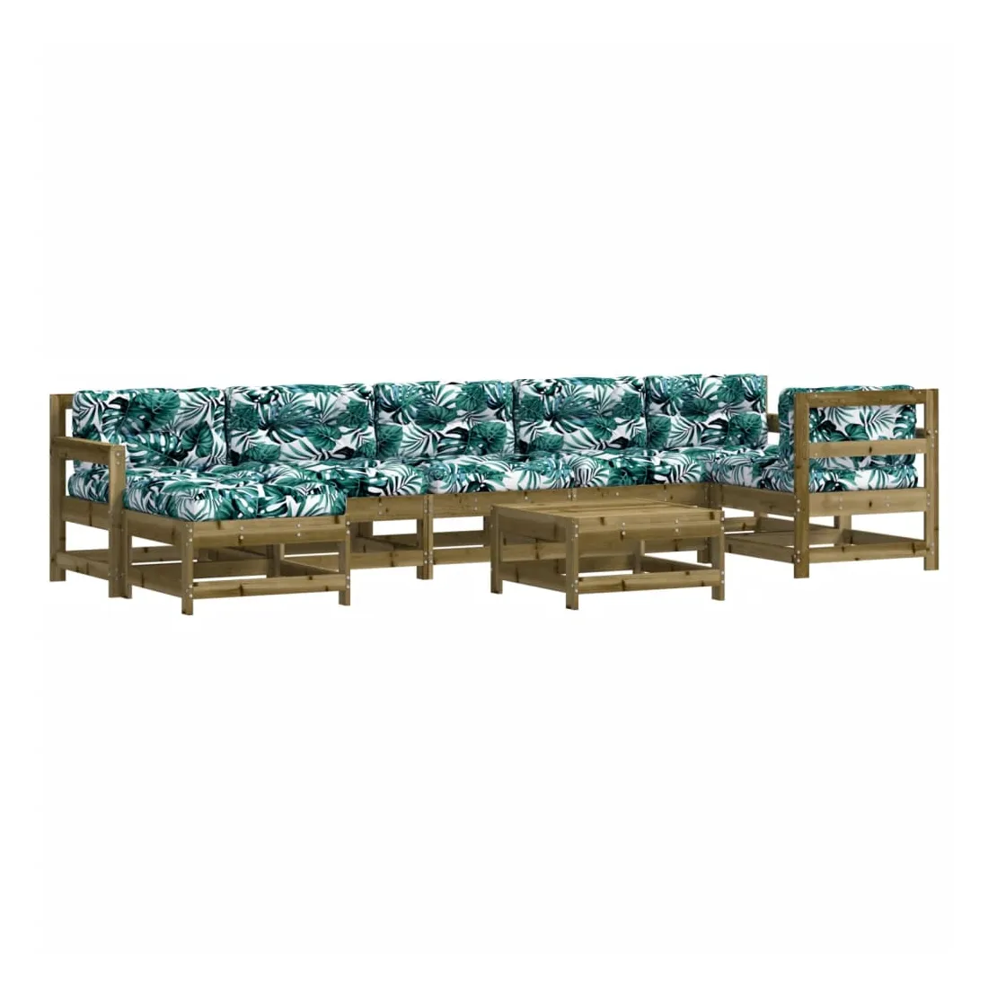 Ce salon de jardin en bois, qui se démarque par son design à lattes et ses coussins moelleux, sera un excellent supplément à votre jardin, patio ou terrasse pour profiter d'un moment agréable avec votre famille ou vos amis. Bois imprégné : le bois de pin massif est un matériau naturel magnifique. Le bois de pin a un grain droit et les nœuds lui confèrent un aspect rustique caractéristique. L'imprégnation est un processus de conservation réalisé à l'aide d'autoclaves. Le traitement sous pression augmente la résistance à la pourriture et aux intempéries.Expérience d'assise confortable : le dossier et l'accoudoir ajoutent un confort d'assise supplémentaire à l'ensemble de meubles de jardin. De plus, les coussins bien rembourrés vous permettent de vous asseoir confortablement.Design modulaire : le canapé est flexible et facile à déplacer. Vous pouvez le combiner avec d'autres segments modulaires de la boutique en ligne pour créer vos propres configurations de salon de jardin ! Bon à savoir :Pour que vos meubles d'extérieur restent beaux, nous vous recommandons de les protéger avec une housse imperméable.