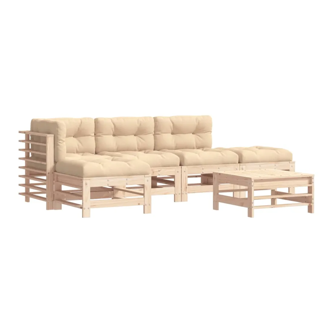 Ce salon de jardin en bois, qui se démarque par son design à lattes et ses coussins moelleux, sera un excellent supplément à votre jardin, patio ou terrasse pour profiter d'un moment agréable avec votre famille ou vos amis. Bois de pin massif : le bois de pin massif est un matériau naturel magnifique. Le bois de pin a un grain droit et les nœuds donnent au matériau son aspect caractéristique et rustique.Cadre robuste et stable : le cadre en bois rend l'ensemble de salon robuste et stable pour une utilisation quotidienne à l'extérieur.Expérience d'assise confortable : le dossier et l'accoudoir ajoutent un confort d'assise supplémentaire à l'ensemble de meubles de jardin. De plus, les coussins bien rembourrés vous permettent de vous asseoir confortablement.Design modulaire : le canapé est flexible et facile à déplacer. Vous pouvez le combiner avec d'autres segments modulaires de la boutique en ligne pour créer vos propres configurations de salon de jardin ! Bon à savoir :Pour que vos meubles d'extérieur restent beaux, nous vous recommandons de les protéger avec une housse imperméable.