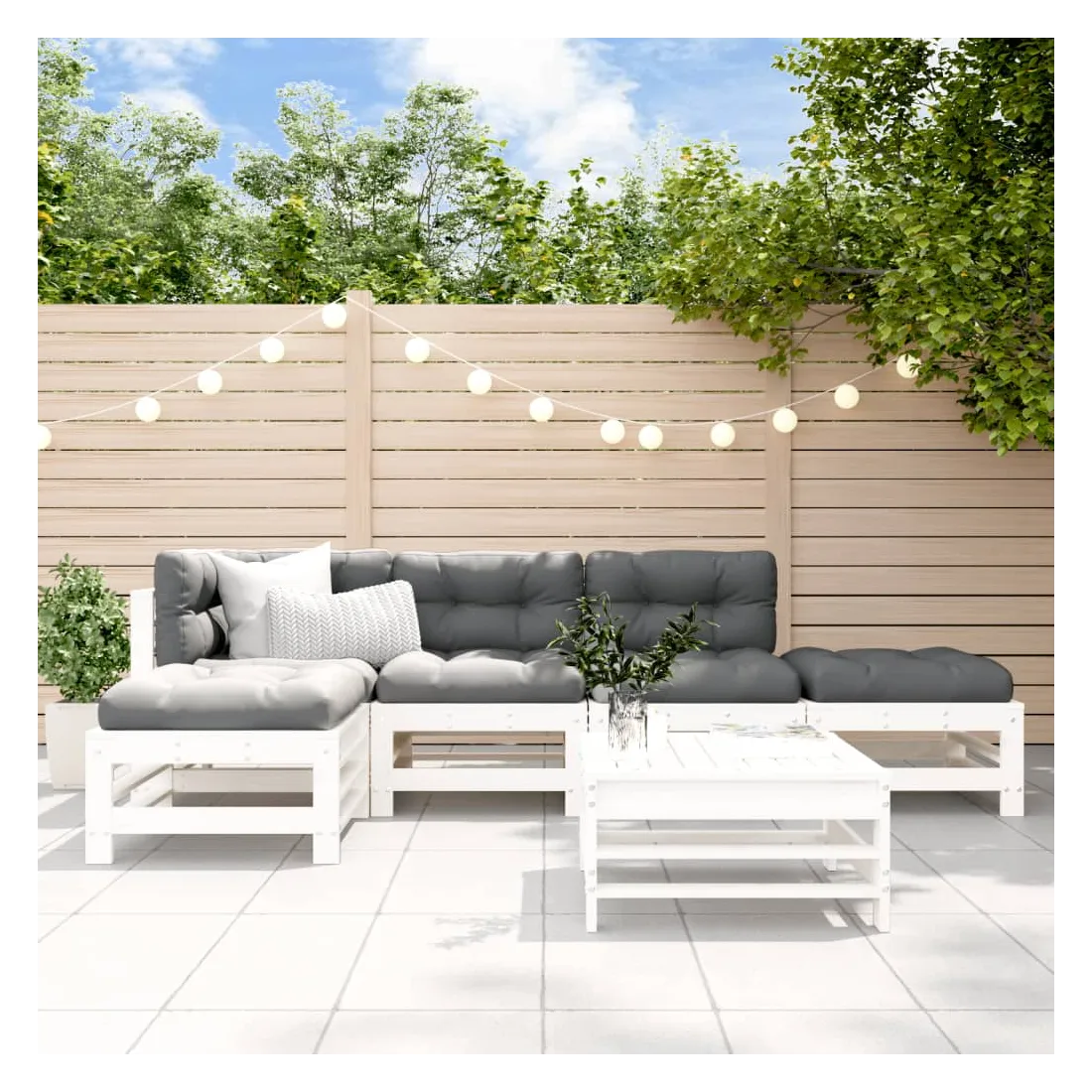 Ce salon de jardin en bois, qui se démarque par son design à lattes et ses coussins moelleux, sera un excellent supplément à votre jardin, patio ou terrasse pour profiter d'un moment agréable avec votre famille ou vos amis. Bois de pin massif : le bois de pin massif est un matériau naturel magnifique. Le bois de pin a un grain droit et les nœuds donnent au matériau son aspect caractéristique et rustique.Cadre robuste et stable : le cadre en bois rend l'ensemble de salon robuste et stable pour une utilisation quotidienne à l'extérieur.Expérience d'assise confortable : le dossier et l'accoudoir ajoutent un confort d'assise supplémentaire à l'ensemble de meubles de jardin. De plus, les coussins bien rembourrés vous permettent de vous asseoir confortablement.Design modulaire : le canapé est flexible et facile à déplacer. Vous pouvez le combiner avec d'autres segments modulaires de la boutique en ligne pour créer vos propres configurations de salon de jardin ! Bon à savoir :Pour que vos meubles d'extérieur restent beaux, nous vous recommandons de les protéger avec une housse imperméable.