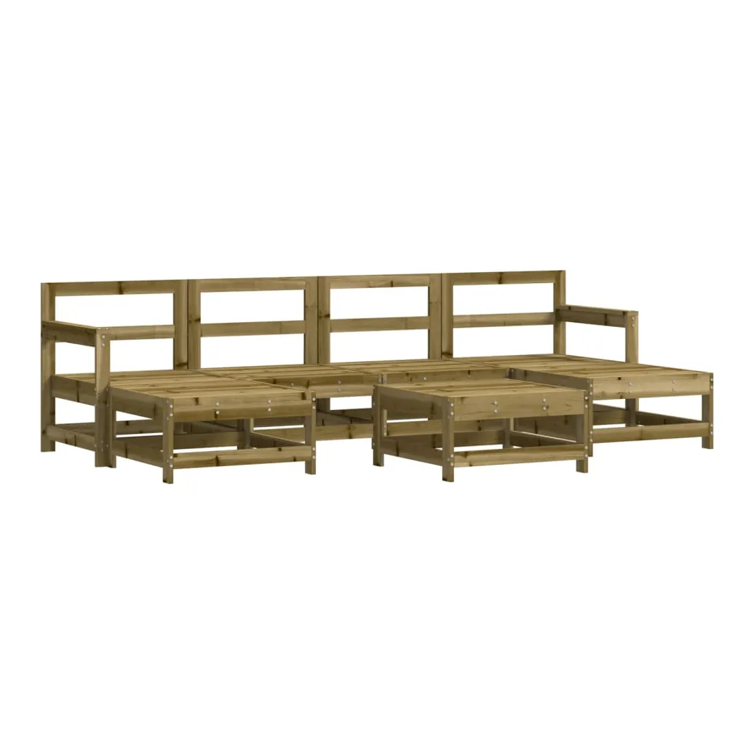 Ce salon de jardin en bois, qui se démarque par son design à lattes et ses coussins moelleux, sera un excellent supplément à votre jardin, patio ou terrasse pour profiter d'un moment agréable avec votre famille ou vos amis. Bois imprégné : le bois de pin massif est un matériau naturel magnifique. Le bois de pin a un grain droit et les nœuds lui confèrent un aspect rustique caractéristique. L'imprégnation est un processus de conservation réalisé à l'aide d'autoclaves. Le traitement sous pression augmente la résistance à la pourriture et aux intempéries.Expérience d'assise confortable : le dossier et l'accoudoir ajoutent un confort d'assise supplémentaire à l'ensemble de meubles de jardin. De plus, les coussins bien rembourrés vous permettent de vous asseoir confortablement.Design modulaire : le canapé est flexible et facile à déplacer. Vous pouvez le combiner avec d'autres segments modulaires de la boutique en ligne pour créer vos propres configurations de salon de jardin ! Bon à savoir :Pour que vos meubles d'extérieur restent beaux, nous vous recommandons de les protéger avec une housse imperméable.