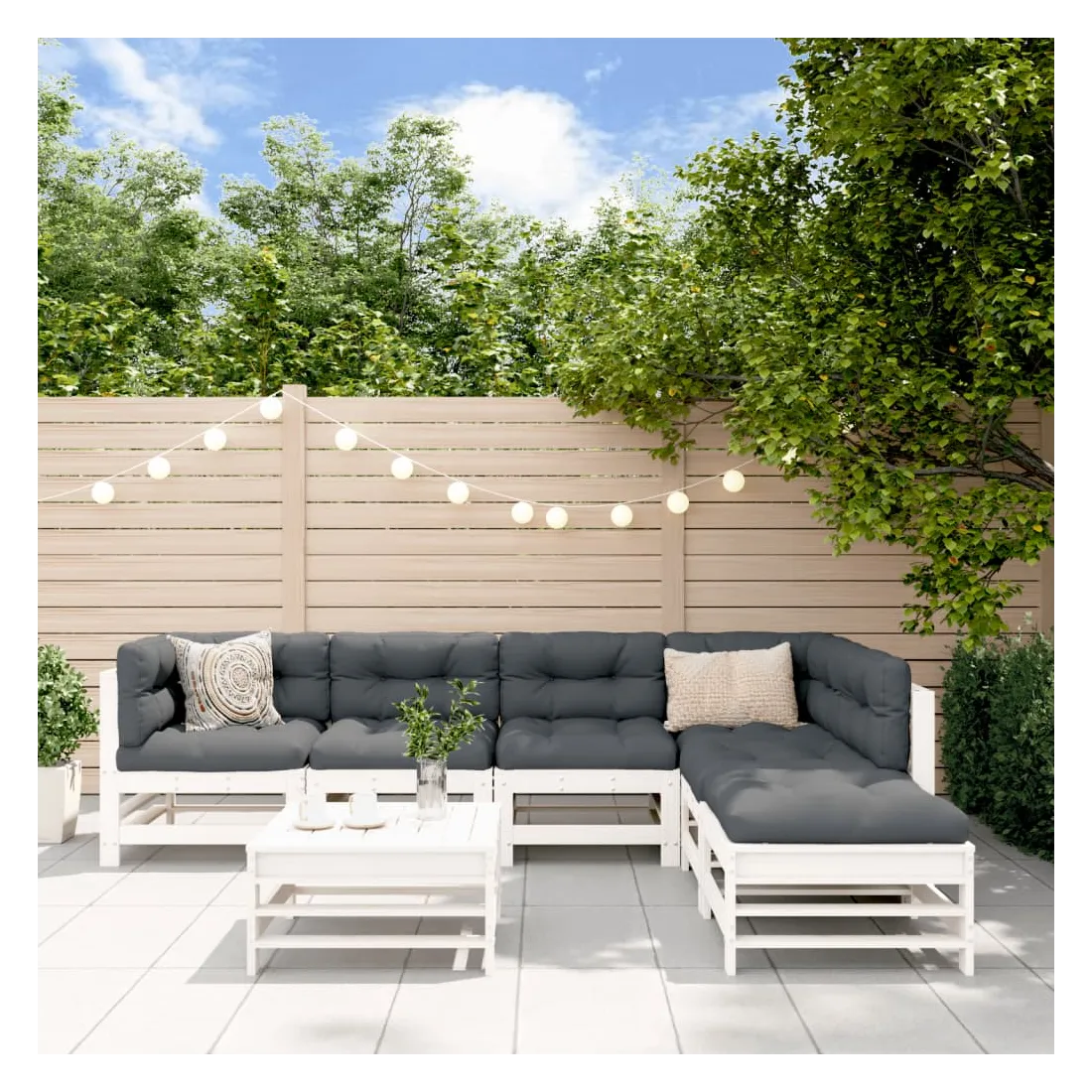 Ce salon de jardin en bois, qui se démarque par son design à lattes et ses coussins moelleux, sera un excellent supplément à votre jardin, patio ou terrasse pour profiter d'un moment agréable avec votre famille ou vos amis. Bois de pin massif : le bois de pin massif est un matériau naturel magnifique. Le bois de pin a un grain droit et les nœuds donnent au matériau son aspect caractéristique et rustique.Cadre robuste et stable : le cadre en bois rend l'ensemble de salon robuste et stable pour une utilisation quotidienne à l'extérieur.Expérience d'assise confortable : le dossier et l'accoudoir ajoutent un confort d'assise supplémentaire à l'ensemble de meubles de jardin. De plus, les coussins bien rembourrés vous permettent de vous asseoir confortablement.Design modulaire : le canapé est flexible et facile à déplacer. Vous pouvez le combiner avec d'autres segments modulaires de la boutique en ligne pour créer vos propres configurations de salon de jardin ! Bon à savoir :Pour que vos meubles d'extérieur restent beaux, nous vous recommandons de les protéger avec une housse imperméable.