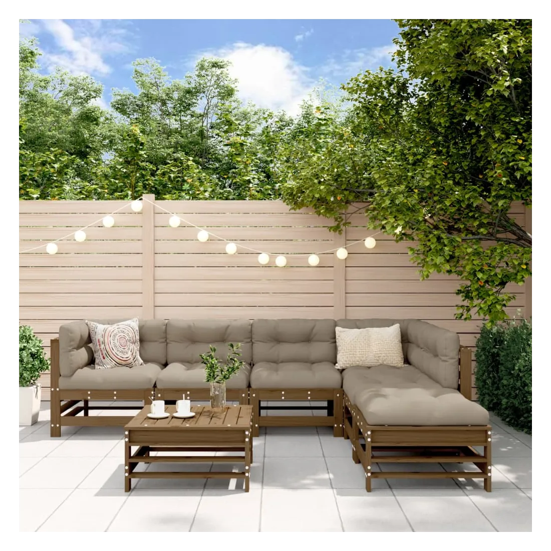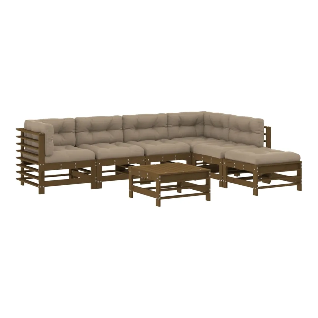 Salon de jardin 7 pcs avec coussins marron miel bois massif