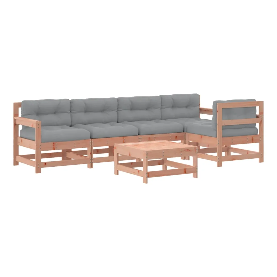 Ce salon de jardin en bois, qui se démarque par son design à lattes et ses coussins moelleux, sera un excellent supplément à votre jardin, patio ou terrasse pour profiter d'un moment agréable avec votre famille ou vos amis. Bois de douglas massif : le bois de douglas massif est un bois très durable qui fonctionne bien pour l'extérieur. Le bois de Douglas est également suffisamment solide pour être travaillé avec un minimum de soin, même sous l'influence des intempéries.Cadre robuste et stable : le cadre en bois rend l'ensemble de salon robuste et stable pour une utilisation quotidienne à l'extérieur.Expérience d'assise confortable : le dossier et l'accoudoir ajoutent un confort d'assise supplémentaire à l'ensemble de meubles de jardin. De plus, les coussins bien rembourrés vous permettent de vous asseoir confortablement.Design modulaire : le canapé est flexible et facile à déplacer. Vous pouvez le combiner avec d'autres segments modulaires de la boutique en ligne pour créer vos propres configurations de salon de jardin ! Bon à savoir :Pour que vos meubles d'extérieur restent beaux, nous vous recommandons de les protéger avec une housse imperméable.