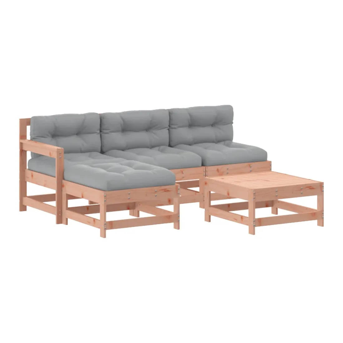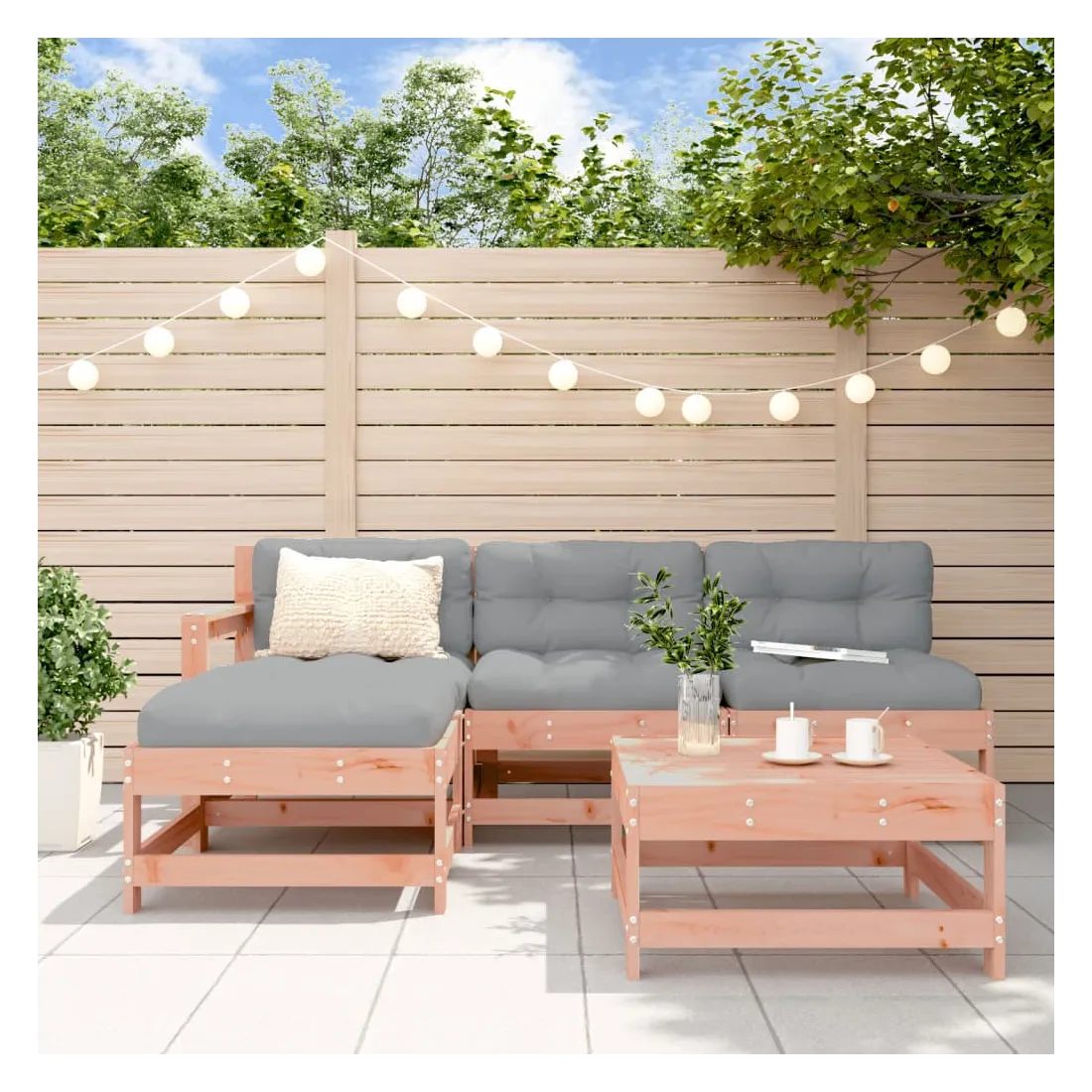 Ce salon de jardin en bois, qui se démarque par son design à lattes et ses coussins moelleux, sera un excellent supplément à votre jardin, patio ou terrasse pour profiter d'un moment agréable avec votre famille ou vos amis. Bois de douglas massif : le bois de douglas massif est un bois très durable qui fonctionne bien pour l'extérieur. Le bois de douglas est également suffisamment solide pour être travaillé avec un minimum de soin, même sous l'influence des intempéries.Cadre robuste et stable : le cadre en bois rend l'ensemble de salon robuste et stable pour une utilisation quotidienne à l'extérieur.Expérience d'assise confortable : le dossier et l'accoudoir ajoutent un confort d'assise supplémentaire à l'ensemble de meubles de jardin. De plus, les coussins bien rembourrés vous permettent de vous asseoir confortablement.Design modulaire : le canapé est flexible et facile à déplacer. Vous pouvez le combiner avec d'autres segments modulaires de la boutique en ligne pour créer vos propres configurations de salon de jardin ! Bon à savoir :Pour que vos meubles d'extérieur restent beaux, nous vous recommandons de les protéger avec une housse imperméable.