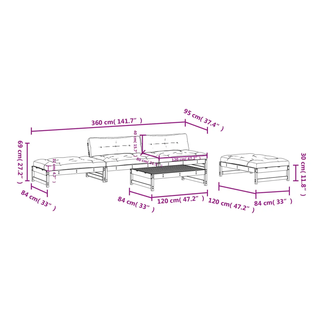 Ce salon de jardin en bois, qui se démarque par son design à lattes et ses coussins moelleux, sera un excellent supplément à votre jardin, patio ou terrasse pour profiter d'un moment agréable avec votre famille ou vos amis. Bois de pin massif : le bois de pin massif est un matériau naturel magnifique. Le bois de pin a un grain droit et les nœuds donnent au matériau son aspect caractéristique et rustique.Cadre robuste et stable : les cadres en bois rendent l'ensemble de salon robuste et stable pour une utilisation quotidienne à l'extérieur.Expérience d'assise confortable : le dossier ajoute un confort d'assise supplémentaire à l'ensemble de meubles de jardin. De plus, le coussin bien rembourré vous permet de vous asseoir confortablement.Design modulaire : le canapé est flexible et facile à déplacer. Vous pouvez le combiner avec d'autres segments modulaires de la boutique en ligne pour créer vos propres configurations de salon de jardin ! Bon à savoir :Pour que vos meubles d'extérieur restent beaux, nous vous recommandons de les protéger avec une housse imperméable.