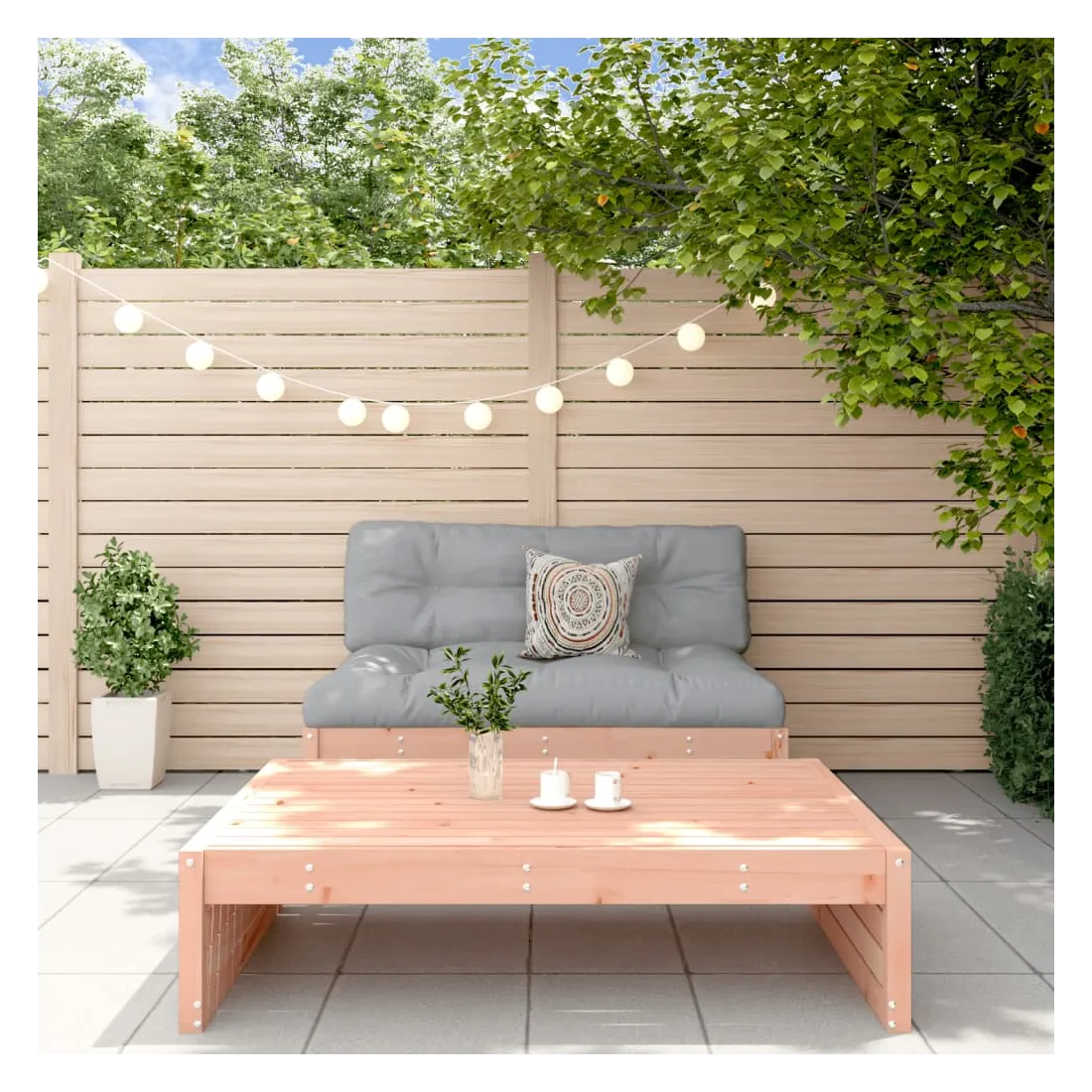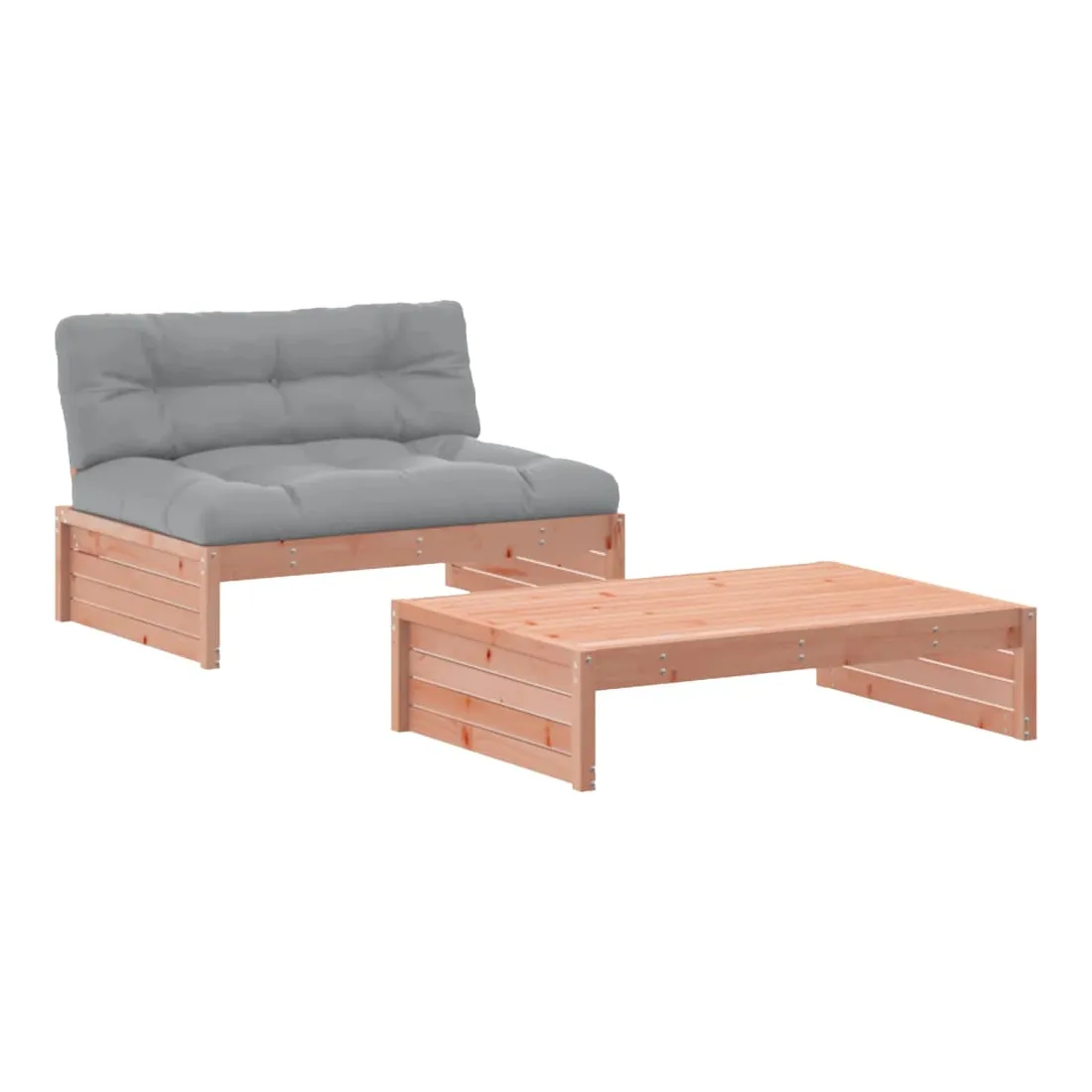 Ce salon de jardin en bois, qui se démarque par son design à lattes et ses coussins moelleux, sera un excellent supplément à votre jardin, patio ou terrasse pour profiter d'un moment agréable avec votre famille ou vos amis. Bois de douglas massif : le bois de douglas massif est un bois très durable qui fonctionne bien à l'extérieur. Le bois de douglas est également suffisamment solide pour être travaillé avec un minimum de soin, même sous l'influence des intempéries.Cadre robuste et stable : les cadres en bois rendent l'ensemble de salon robuste et stable pour une utilisation quotidienne à l'extérieur.Expérience d'assise confortable : le dossier ajoute un confort d'assise supplémentaire à l'ensemble de meubles de jardin. De plus, le coussin bien rembourré vous permet de vous asseoir confortablement.Design modulaire : le canapé est flexible et facile à déplacer. Vous pouvez le combiner avec d'autres segments modulaires de la boutique en ligne pour créer vos propres configurations de salon de jardin ! Bon à savoir :Pour que vos meubles d'extérieur restent beaux, nous vous recommandons de les protéger avec une housse imperméable.