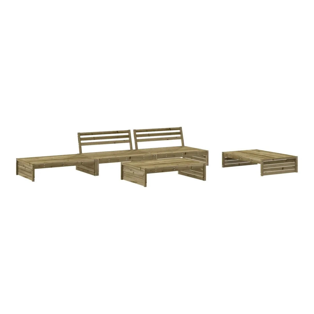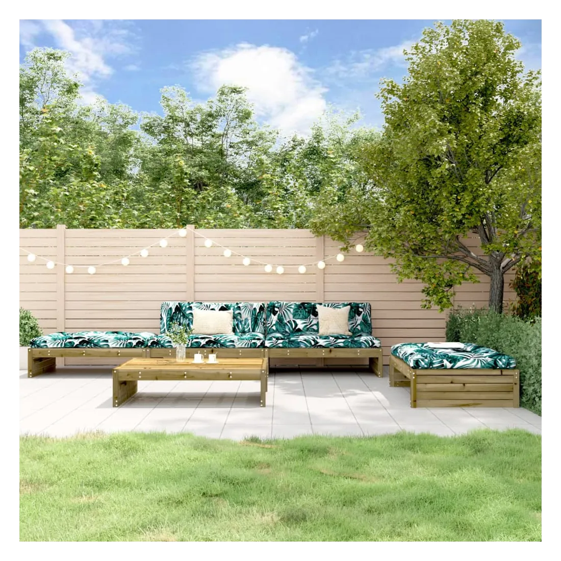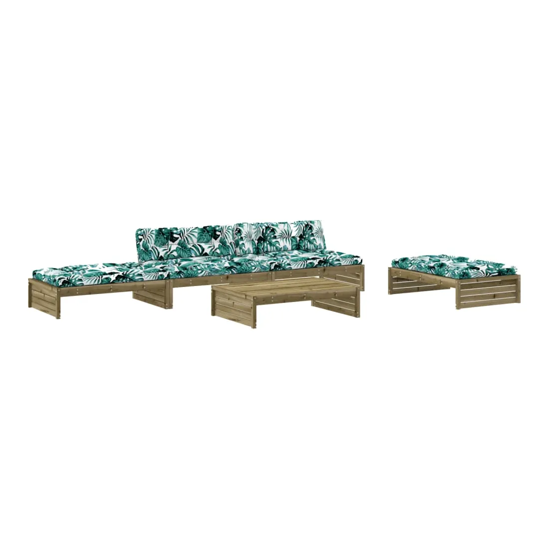 Ce salon de jardin en bois, qui se démarque par son design à lattes et ses coussins moelleux, sera un excellent supplément à votre jardin, patio ou terrasse pour profiter d'un moment agréable avec votre famille ou vos amis. Bois imprégné : le bois de pin massif est un matériau naturel magnifique. Le bois de pin a un grain droit et les nœuds lui confèrent un aspect rustique caractéristique. L'imprégnation est un processus de conservation réalisé à l'aide d'autoclaves. Le traitement sous pression augmente la résistance à la pourriture et aux intempéries.Cadre robuste et stable : les cadres en bois rendent l'ensemble de salon robuste et stable pour une utilisation quotidienne à l'extérieur.Expérience d'assise confortable : le dossier ajoute un confort d'assise supplémentaire à l'ensemble de meubles de jardin. De plus, le coussin bien rembourré offre du confort pendant votre temps d'assise.Design modulaire : le canapé est flexible et facile à déplacer. Vous pouvez le combiner avec d'autres segments modulaires de la boutique en ligne pour créer vos propres configurations de salon de jardin ! Bon à savoir :Pour que vos meubles d'extérieur restent beaux, nous vous recommandons de les protéger avec une housse imperméable.