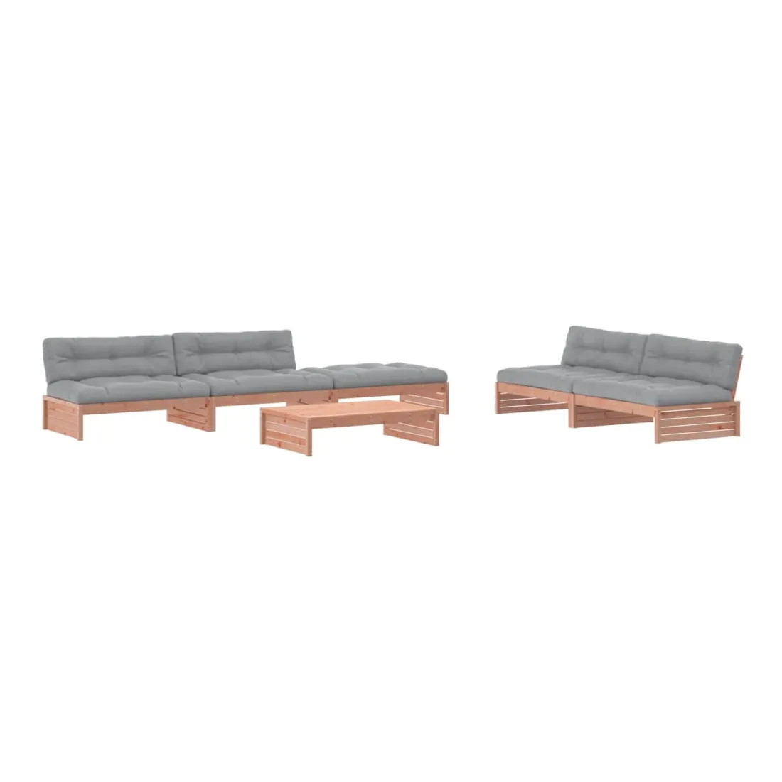 Ce salon de jardin en bois, qui se démarque par son design à lattes et ses coussins moelleux, sera un excellent supplément à votre jardin, patio ou terrasse pour profiter d'un moment agréable avec votre famille ou vos amis. Bois de douglas massif : le bois de douglas massif est un bois très durable qui fonctionne bien à l'extérieur. Le bois de douglas est également suffisamment solide pour être travaillé avec un minimum de soin, même sous l'influence des intempéries.Cadre robuste et stable : les cadres en bois rendent l'ensemble de salon robuste et stable pour une utilisation quotidienne à l'extérieur.Expérience d'assise confortable : le dossier ajoute un confort d'assise supplémentaire à l'ensemble de meubles de jardin. De plus, le coussin bien rembourré vous permet de vous asseoir confortablement.Design modulaire : le canapé est flexible et facile à déplacer. Vous pouvez le combiner avec d'autres segments modulaires de la boutique en ligne pour créer vos propres configurations de salon de jardin ! Bon à savoir :Pour que vos meubles d'extérieur restent beaux, nous vous recommandons de les protéger avec une housse imperméable.