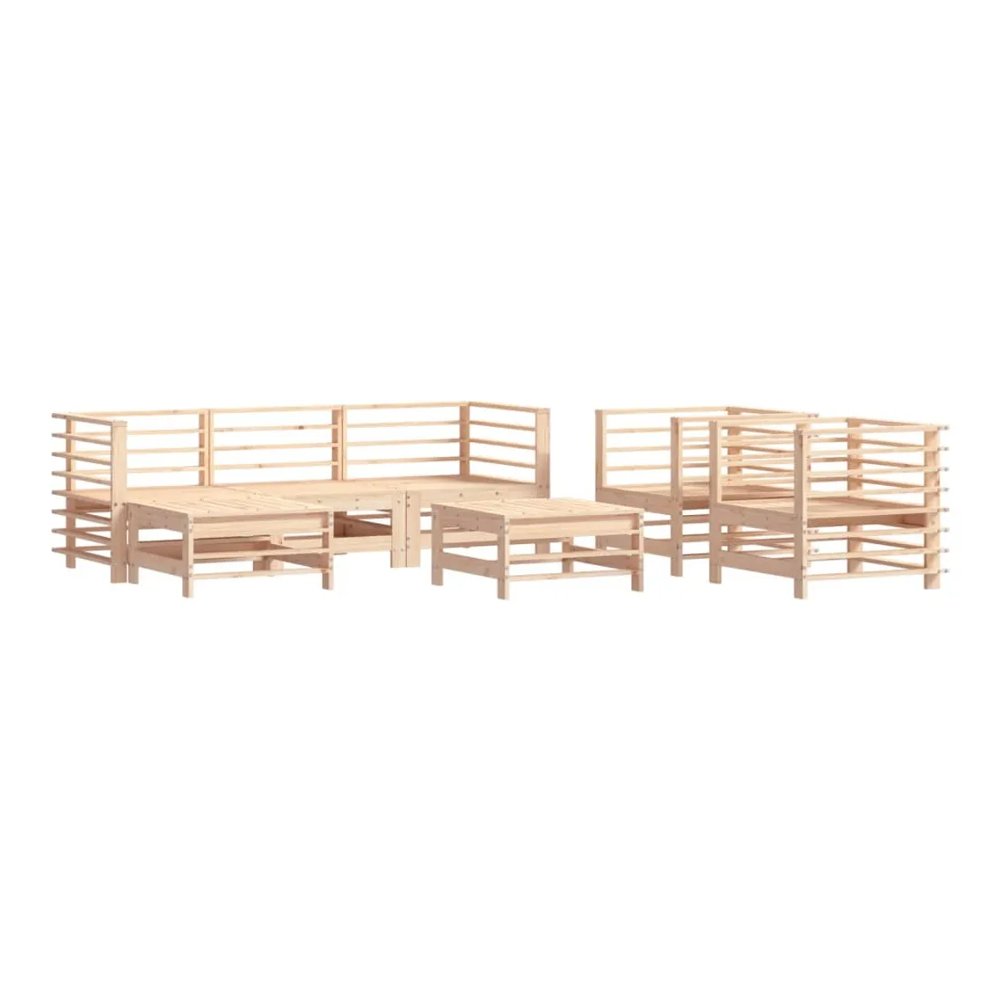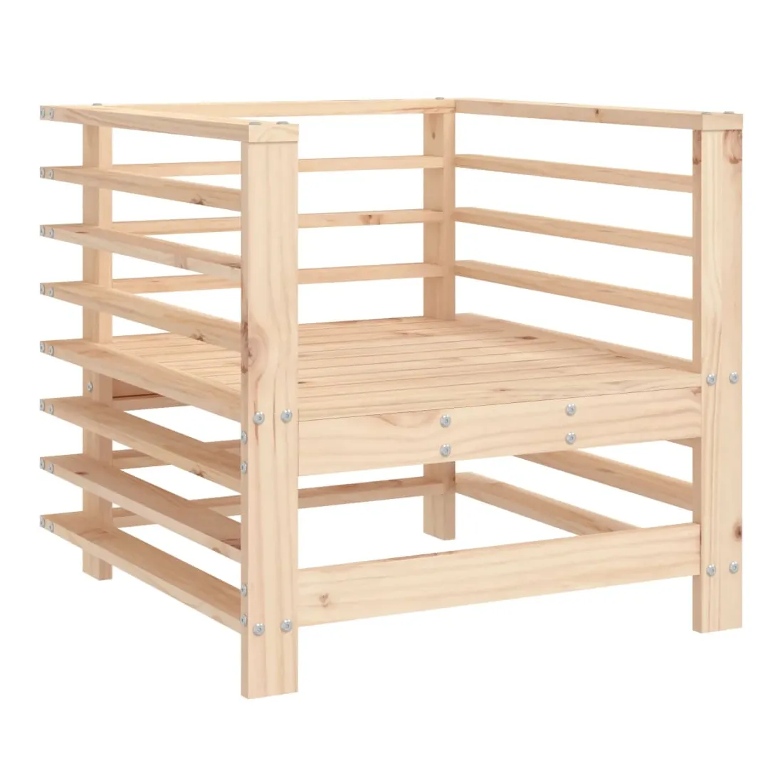Ce salon de jardin en bois, qui se démarque par son design à lattes, sera un excellent supplément à votre jardin, patio ou terrasse pour profiter d'un moment agréable avec votre famille ou vos amis. Bois de pin massif : le bois de pin massif est un matériau naturel magnifique. Le bois de pin a un grain droit et les nœuds donnent au matériau son aspect caractéristique et rustique.Cadre robuste et stable : les cadres en bois rendent l'ensemble de salon robuste et stable pour une utilisation quotidienne à l'extérieur.Design modulaire : le canapé est flexible et facile à déplacer. Vous pouvez le combiner avec d'autres segments modulaires de la boutique en ligne pour créer vos propres configurations de salon de jardin ! Bon à savoir :Pour que vos meubles d'extérieur restent beaux, nous vous recommandons de les protéger avec une housse imperméable.Les coussins ne sont pas inclus dans la livraison.