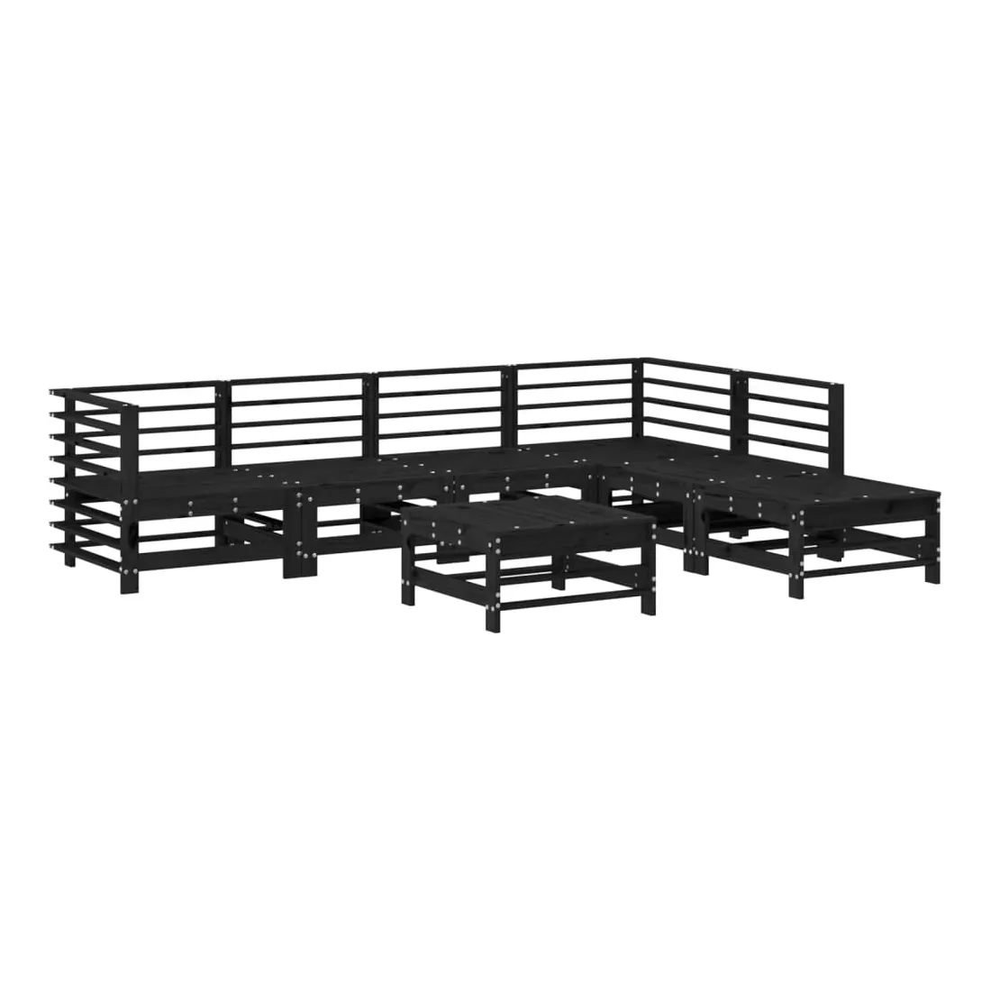 Salon de jardin 7 pcs Noir Bois de pin massif