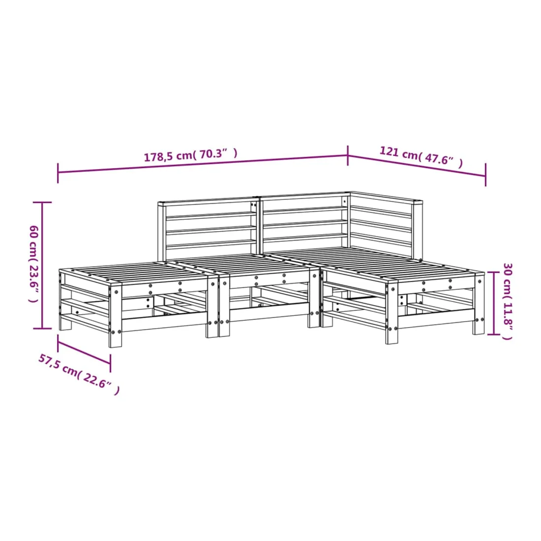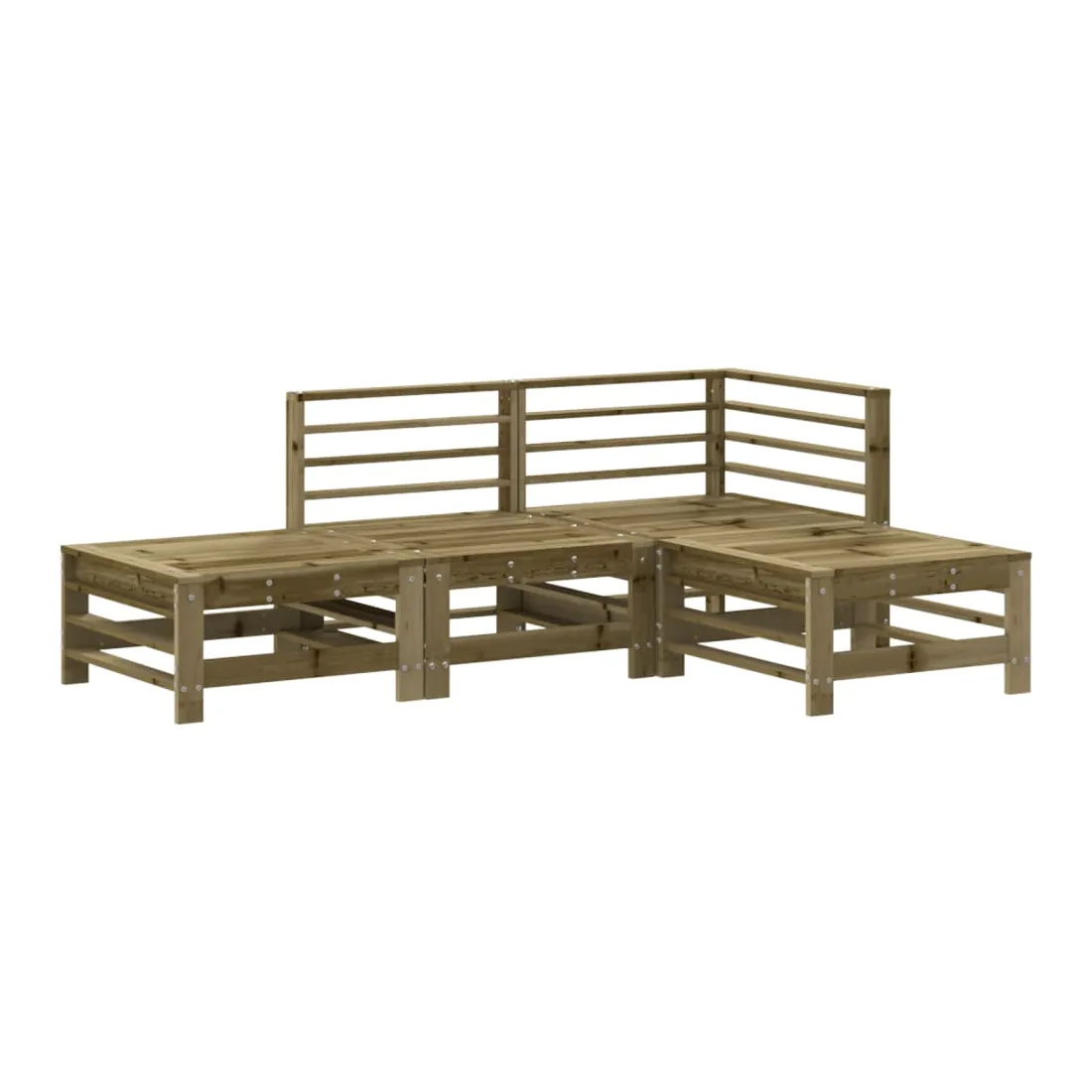 Ce salon de jardin en bois, qui se démarque par son design à lattes, sera un excellent supplément à votre jardin, patio ou terrasse pour profiter d'un moment agréable avec votre famille ou vos amis. Bois imprégné : le bois de pin massif est un matériau naturel magnifique. Le bois de pin a un grain droit et les nœuds lui confèrent un aspect rustique caractéristique. L'imprégnation est un processus de conservation réalisé à l'aide d'autoclaves. Le traitement sous pression augmente la résistance à la pourriture et aux intempéries.Cadre robuste et stable : les cadres en bois rendent l'ensemble de salon robuste et stable pour une utilisation quotidienne à l'extérieur.Design modulaire : le canapé est flexible et facile à déplacer. Vous pouvez le combiner avec d'autres segments modulaires de la boutique en ligne pour créer vos propres configurations de salon de jardin ! Bon à savoir :Pour que vos meubles d'extérieur restent beaux, nous vous recommandons de les protéger avec une housse imperméable.Les coussins ne sont pas inclus dans la livraison.