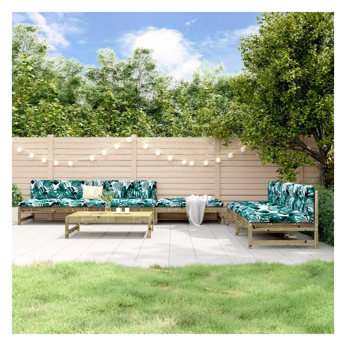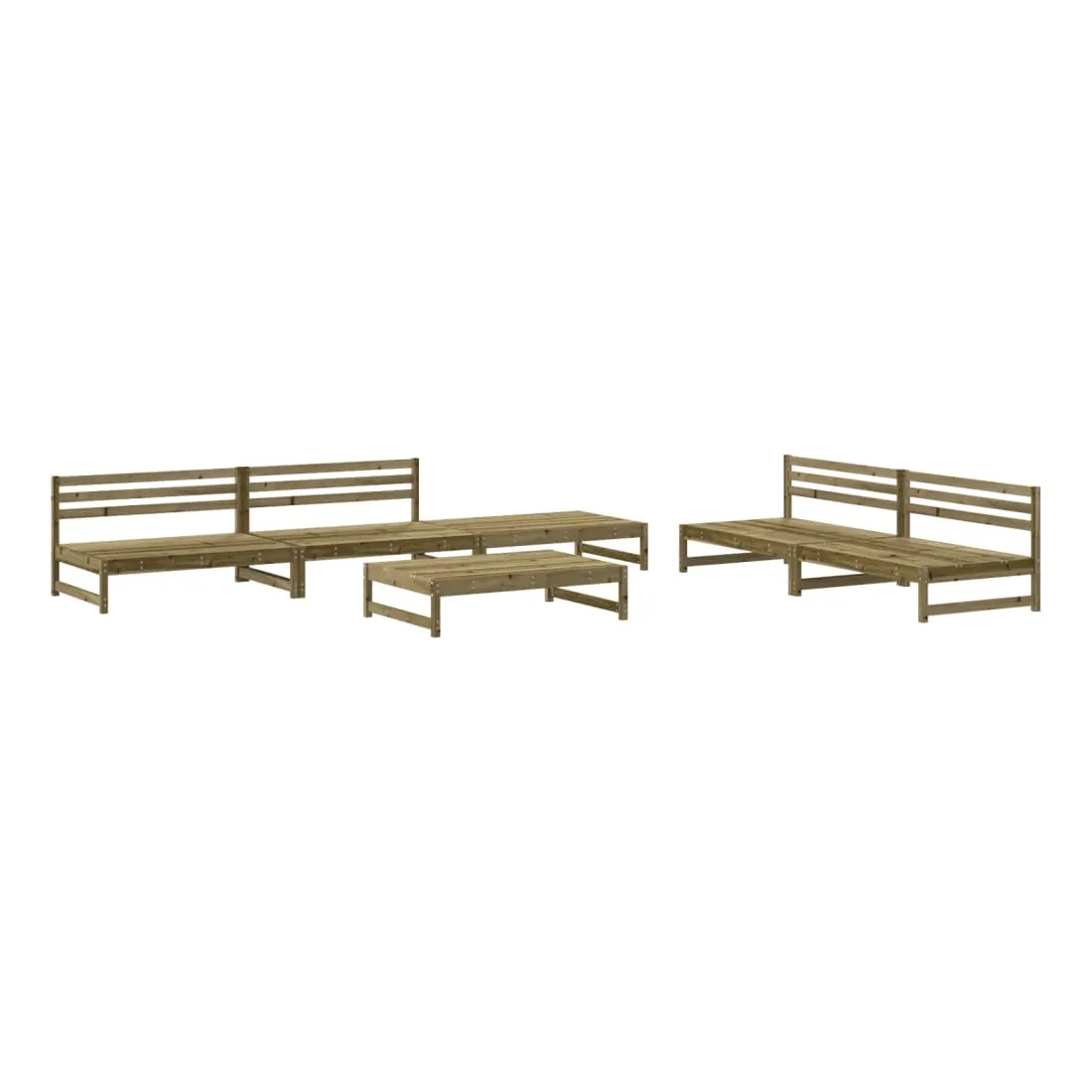 vidaXLCe salon de jardin en bois, qui se démarque par son design à lattes, sera un excellent supplément à votre jardin, patio ou terrasse pour profiter d'un moment agréable avec votre famille ou vos amis. Bois imprégné : le bois de pin massif est un matériau naturel magnifique. Le bois de pin a un grain droit et les nœuds lui confèrent un aspect rustique caractéristique. L'imprégnation est un processus de conservation réalisé à l'aide d'autoclaves. Le traitement sous pression augmente la résistance à la pourriture et aux intempéries.Expérience d'assise confortable : le dossier ajoute un confort d'assise supplémentaire au canapé d'extérieur.Design modulaire : le canapé est flexible et facile à déplacer. Vous pouvez le combiner avec d'autres segments modulaires de la boutique en ligne pour créer vos propres configurations de salon de jardin ! Bon à savoir :Les coussins ne sont pas inclus dans la livraison.Pour que vos meubles d'extérieur restent beaux, nous vous recommandons de les protéger avec une housse imperméable.