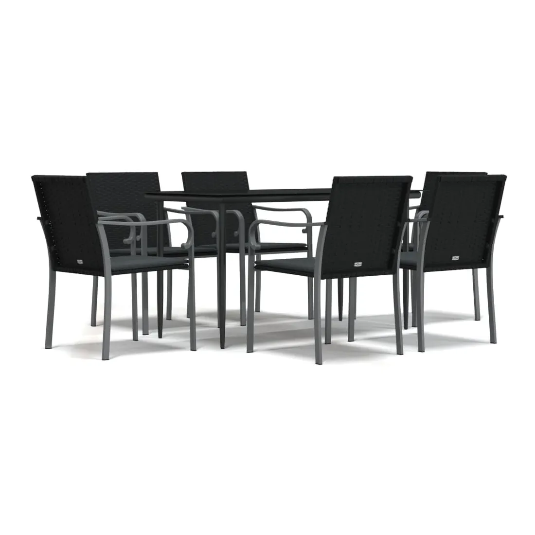 Cet ensemble à manger de jardin, combinant à la fois style et fonctionnalité, est sûrement destiné à être la pièce maîtresse de votre jardin, terrasse et de tout autre espace de vie. Matériau résistant aux intempéries : la résine tressée, également connue sous le nom de rotin poly, résiste aux intempéries et est facile à nettoyer. Elle reste belle à l'extérieur pendant une longue période. Elle offre une excellente qualité, commodité et un aspect esthétique.Cadre robuste et stable : les cadres en acier rendent l'ensemble à manger robuste et stable pour une utilisation quotidienne à l'extérieur.Dessus de table pratique : le plateau lisse de la table à manger est en verre trempé facile à nettoyer avec un chiffon humide. De plus, il offre un excellent support pour contenir vos repas, boissons et autres objets décoratifs.Assise confortable : la chaise de salle à manger est conçue avec des accoudoirs pour vous offrir une expérience d'assise confortable. Le coussin de siège épais et rembourré offre un confort ultime pendant votre temps d'assise. Remarque :Pour que vos meubles d'extérieur restent beaux, nous vous recommandons de les protéger avec une housse imperméable.