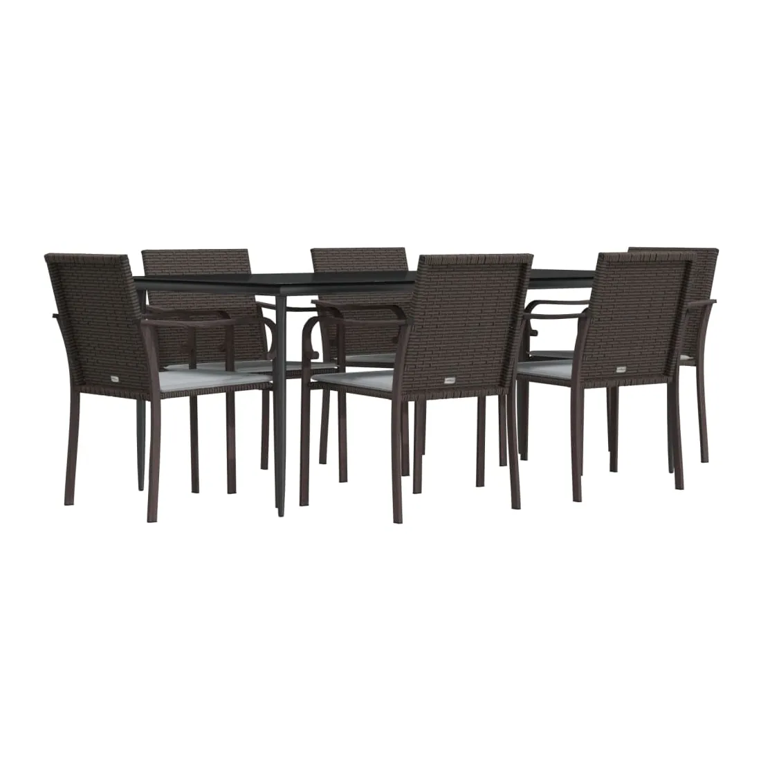 Cet ensemble à manger de jardin, combinant à la fois style et fonctionnalité, est sûrement destiné à être la pièce maîtresse de votre jardin, terrasse et de tout autre espace de vie. Matériau résistant aux intempéries : la résine tressée, également connue sous le nom de rotin poly, résiste aux intempéries et est facile à nettoyer. Elle reste belle à l'extérieur pendant une longue période. Elle offre une excellente qualité, commodité et un aspect esthétique.Cadre robuste et stable : les cadres en acier rendent l'ensemble à manger robuste et stable pour une utilisation quotidienne à l'extérieur.Dessus de table pratique : le plateau lisse de la table à manger est en verre trempé facile à nettoyer avec un chiffon humide. De plus, il offre un excellent support pour contenir vos repas, boissons et autres objets décoratifs.Assise confortable : la chaise de salle à manger est conçue avec des accoudoirs pour vous offrir une expérience d'assise confortable. Le coussin de siège épais et rembourré offre un confort ultime pendant votre temps d'assise. Remarque :Pour que vos meubles d'extérieur restent beaux, nous vous recommandons de les protéger avec une housse imperméable.