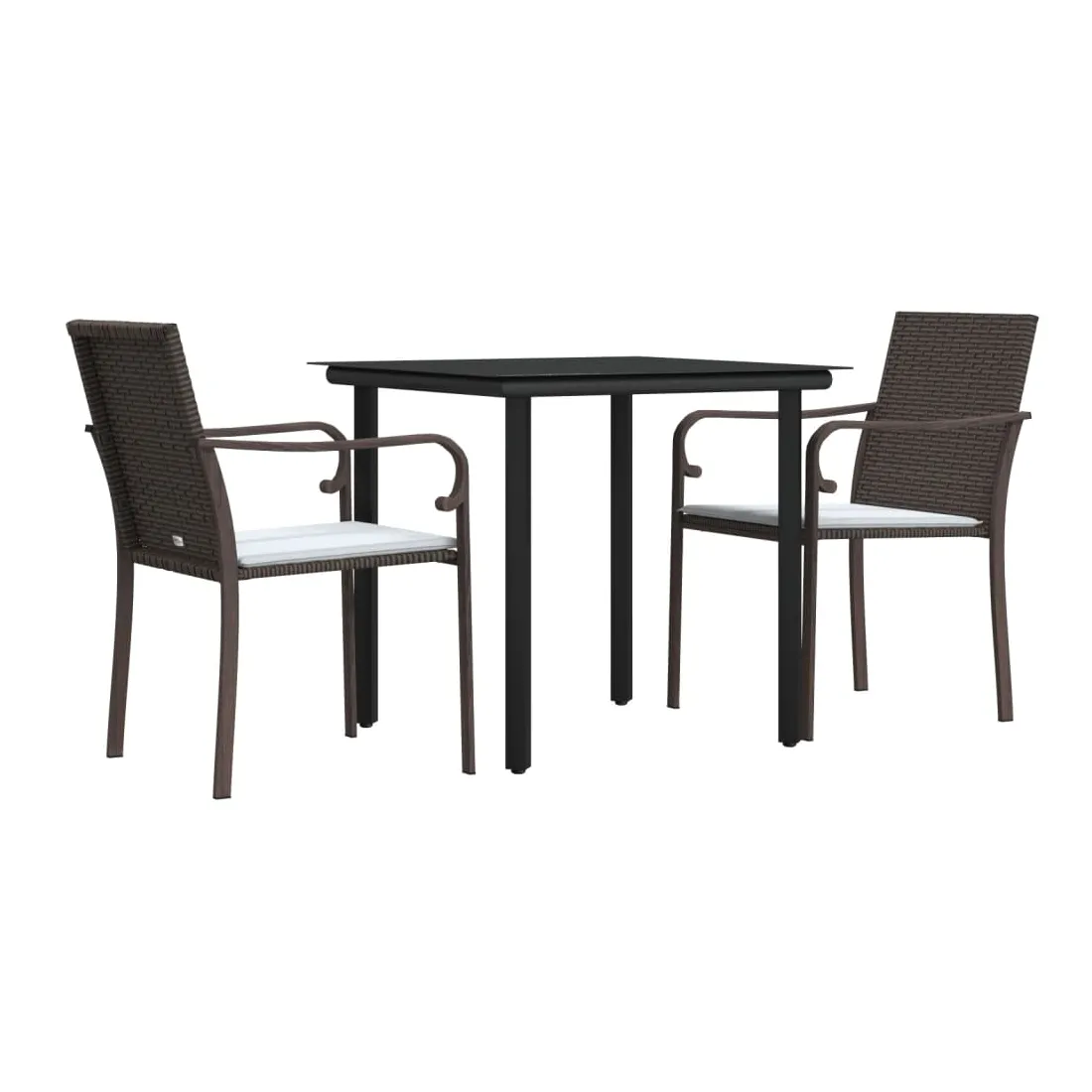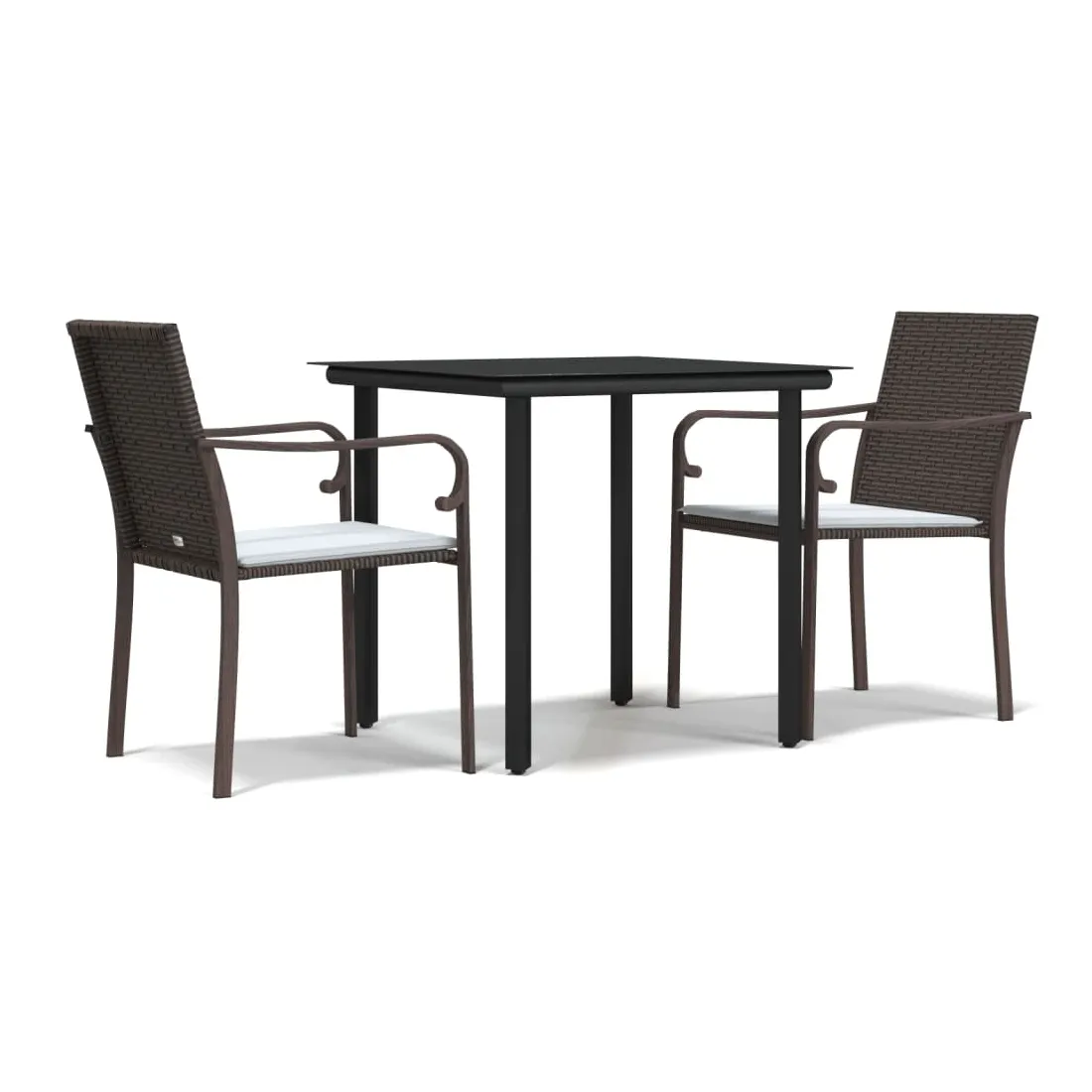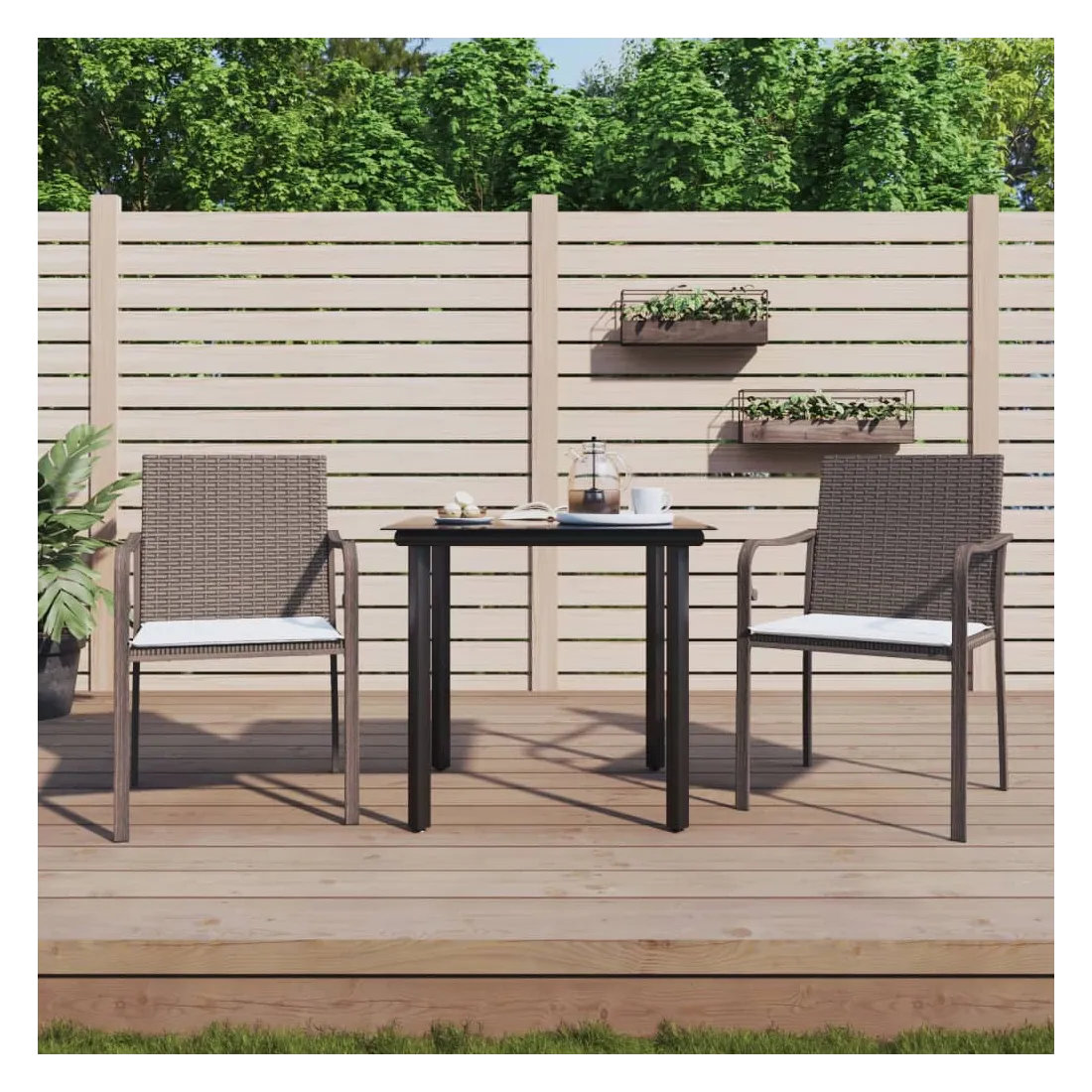 Cet ensemble à manger de jardin, combinant à la fois style et fonctionnalité, est sûrement destiné à être la pièce maîtresse de votre jardin, terrasse et de tout autre espace de vie. Matériau résistant aux intempéries : la résine tressée, également connue sous le nom de rotin poly, résiste aux intempéries et est facile à nettoyer. Elle reste belle à l'extérieur pendant une longue période. Elle offre une excellente qualité, commodité et un aspect esthétique.Cadre robuste et stable : les cadres en acier rendent l'ensemble à manger robuste et stable pour une utilisation quotidienne à l'extérieur.Dessus de table pratique : le plateau lisse de la table à manger est en verre trempé facile à nettoyer avec un chiffon humide. De plus, il offre un excellent support pour contenir vos repas, boissons et autres objets décoratifs.Assise confortable : la chaise de salle à manger est conçue avec des accoudoirs pour vous offrir une expérience d'assise confortable. Le coussin de siège épais et rembourré offre un confort ultime pendant votre temps d'assise. Remarque :Pour que vos meubles d'extérieur restent beaux, nous vous recommandons de les protéger avec une housse imperméable.