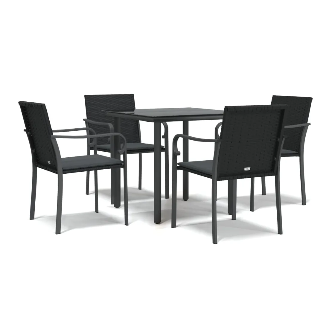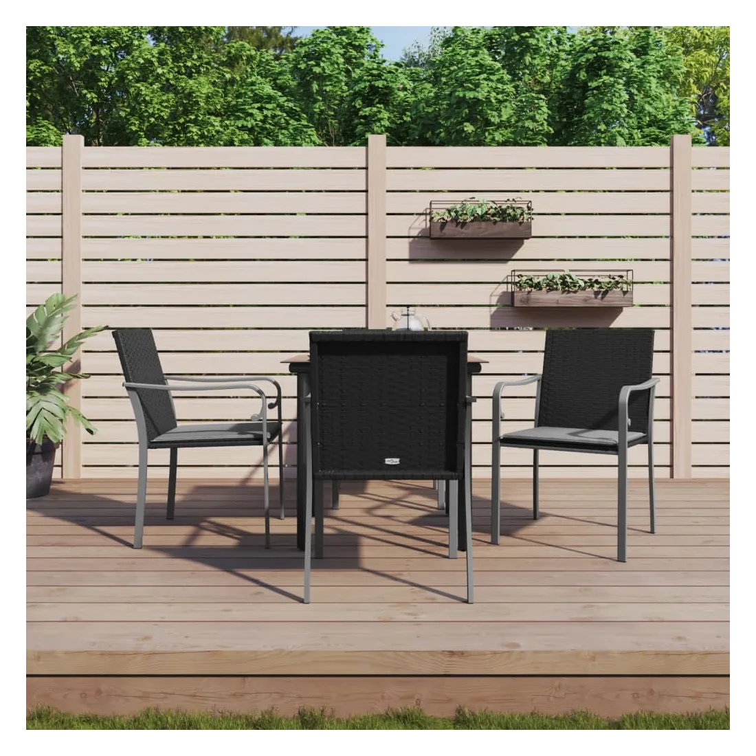 Cet ensemble à manger de jardin, combinant à la fois style et fonctionnalité, est sûrement destiné à être la pièce maîtresse de votre jardin, terrasse et de tout autre espace de vie. Matériau résistant aux intempéries : la résine tressée, également connue sous le nom de rotin poly, résiste aux intempéries et est facile à nettoyer. Elle reste belle à l'extérieur pendant une longue période. Elle offre une excellente qualité, commodité et un aspect esthétique.Cadre robuste et stable : les cadres en acier rendent l'ensemble à manger robuste et stable pour une utilisation quotidienne à l'extérieur.Dessus de table pratique : le plateau lisse de la table à manger est en verre trempé facile à nettoyer avec un chiffon humide. De plus, il offre un excellent support pour contenir vos repas, boissons et autres objets décoratifs.Assise confortable : la chaise de salle à manger est conçue avec des accoudoirs pour vous offrir une expérience d'assise confortable. Le coussin de siège épais et rembourré offre un confort ultime pendant votre temps d'assise. Remarque :Pour que vos meubles d'extérieur restent beaux, nous vous recommandons de les protéger avec une housse imperméable.