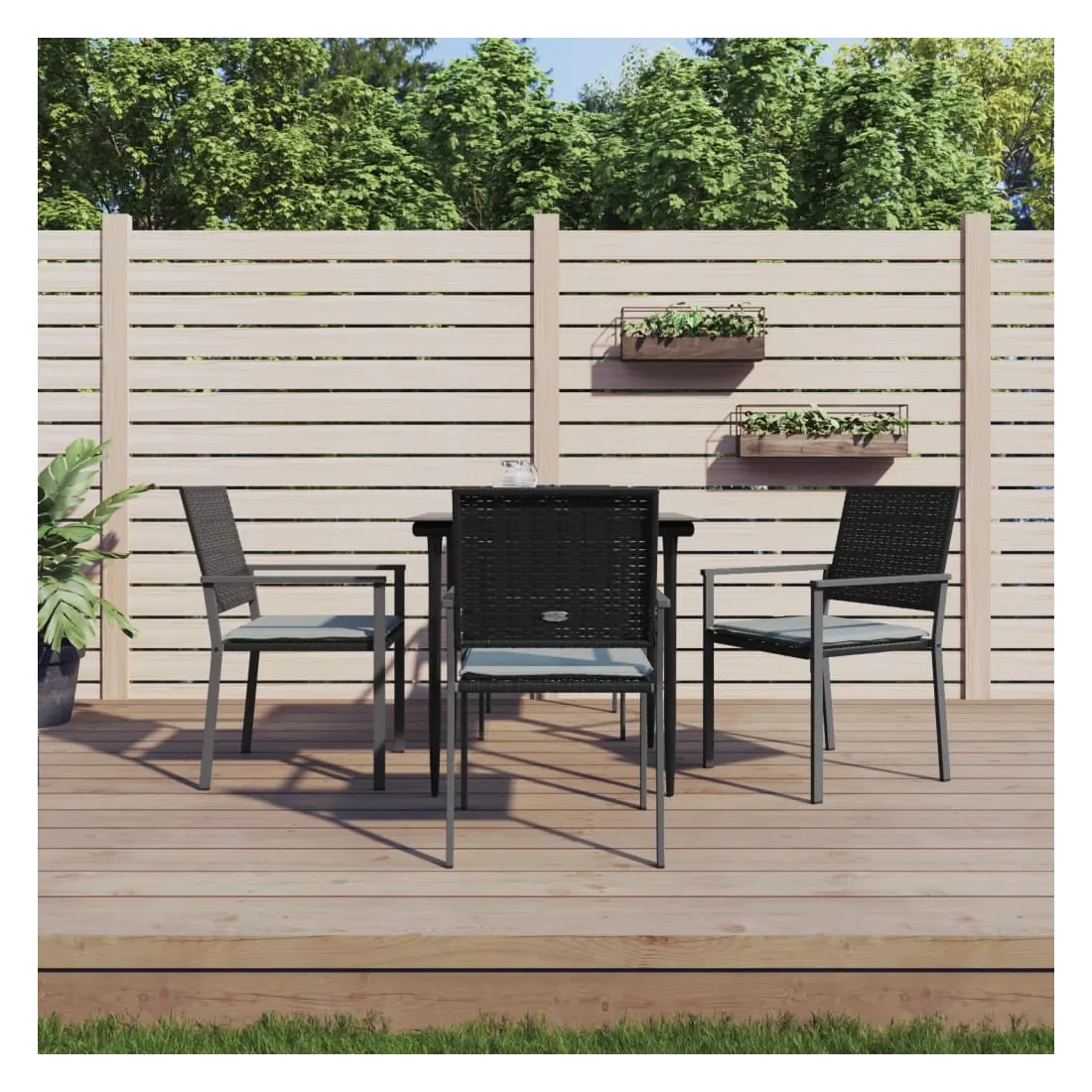 Cet ensemble à manger de jardin, combinant à la fois style et fonctionnalité, est sûrement destiné à être la pièce maîtresse de votre jardin, terrasse et de tout autre espace de vie. Matériau résistant aux intempéries : la résine tressée, également connue sous le nom de rotin poly, résiste aux intempéries et est facile à nettoyer. Elle reste belle à l'extérieur pendant une longue période. Elle offre une excellente qualité, commodité et un aspect esthétique.Cadre robuste et stable : les cadres en acier rendent l'ensemble à manger robuste et stable pour une utilisation quotidienne à l'extérieur.Dessus de table pratique : le plateau lisse de la table à manger est en verre trempé facile à nettoyer avec un chiffon humide. De plus, il offre un excellent support pour contenir vos repas, boissons et autres objets décoratifs.Assise confortable : la chaise de salle à manger est conçue avec des accoudoirs pour vous offrir une expérience d'assise confortable. Le coussin de siège épais et rembourré offre un confort ultime pendant votre temps d'assise. Remarque :Pour que vos meubles d'extérieur restent beaux, nous vous recommandons de les protéger avec une housse imperméable.