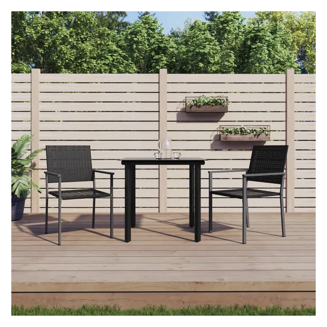 Cet ensemble à manger de jardin, combinant à la fois style et fonctionnalité, est sûrement destiné à être la pièce maîtresse de votre jardin, terrasse et de tout autre espace de vie. Matériau résistant aux intempéries : la résine tressée, également connue sous le nom de rotin poly, résiste aux intempéries et est facile à nettoyer. Elle reste belle à l'extérieur pendant une longue période. Elle offre une excellente qualité, commodité et un aspect esthétique.Cadre robuste et stable : les cadres en acier rendent l'ensemble à manger robuste et stable pour une utilisation quotidienne à l'extérieur.Dessus de table pratique : le plateau lisse de la table à manger est en verre trempé facile à nettoyer avec un chiffon humide. De plus, il offre un excellent support pour contenir vos repas, boissons et autres objets décoratifs.Assise confortable : la chaise à manger est conçue avec des accoudoirs pour vous offrir une expérience d'assise confortable. Remarque :Pour que vos meubles d'extérieur restent beaux, nous vous recommandons de les protéger avec une housse imperméable.