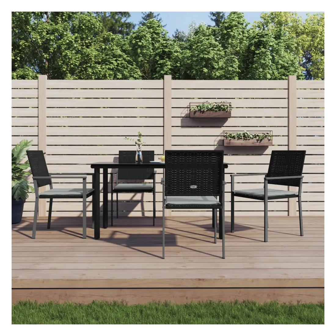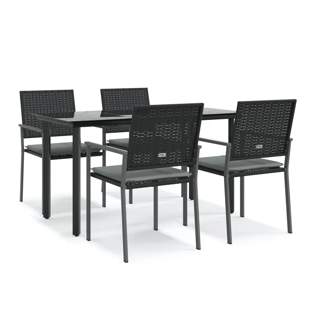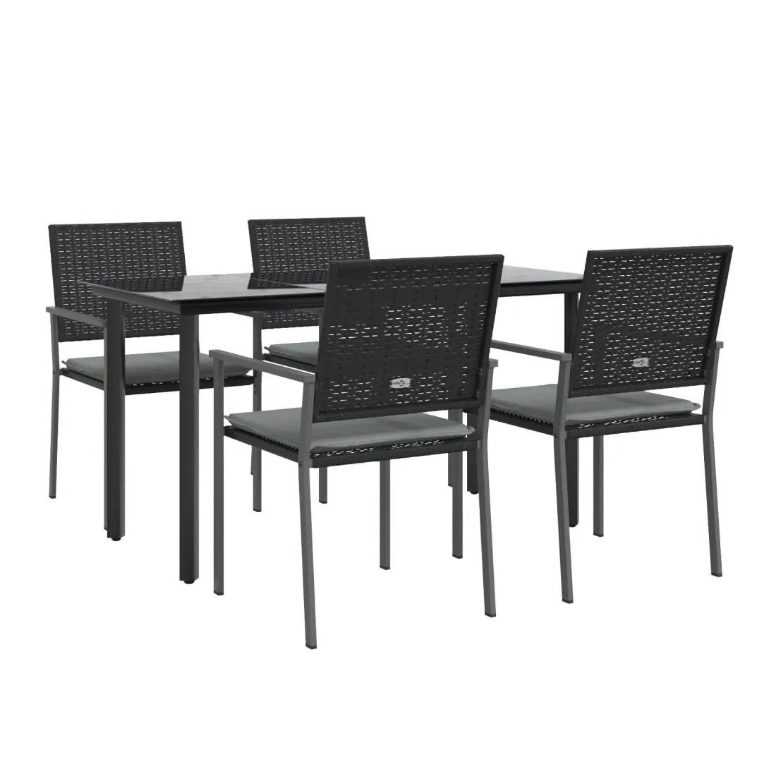 Cet ensemble à manger de jardin, combinant à la fois style et fonctionnalité, est sûrement destiné à être la pièce maîtresse de votre jardin, terrasse et de tout autre espace de vie. Matériau résistant aux intempéries : la résine tressée, également connue sous le nom de rotin poly, résiste aux intempéries et est facile à nettoyer. Elle reste belle à l'extérieur pendant une longue période. Elle offre une excellente qualité, commodité et un aspect esthétique.Cadre robuste et stable : les cadres en acier rendent l'ensemble à manger robuste et stable pour une utilisation quotidienne à l'extérieur.Dessus de table pratique : le plateau lisse de la table à manger est en verre trempé facile à nettoyer avec un chiffon humide. De plus, il offre un excellent support pour contenir vos repas, boissons et autres objets décoratifs.Assise confortable : la chaise de salle à manger est conçue avec des accoudoirs pour vous offrir une expérience d'assise confortable. Le coussin de siège épais et rembourré offre un confort ultime pendant votre temps d'assise. Remarque :Pour que vos meubles d'extérieur restent beaux, nous vous recommandons de les protéger avec une housse imperméable.