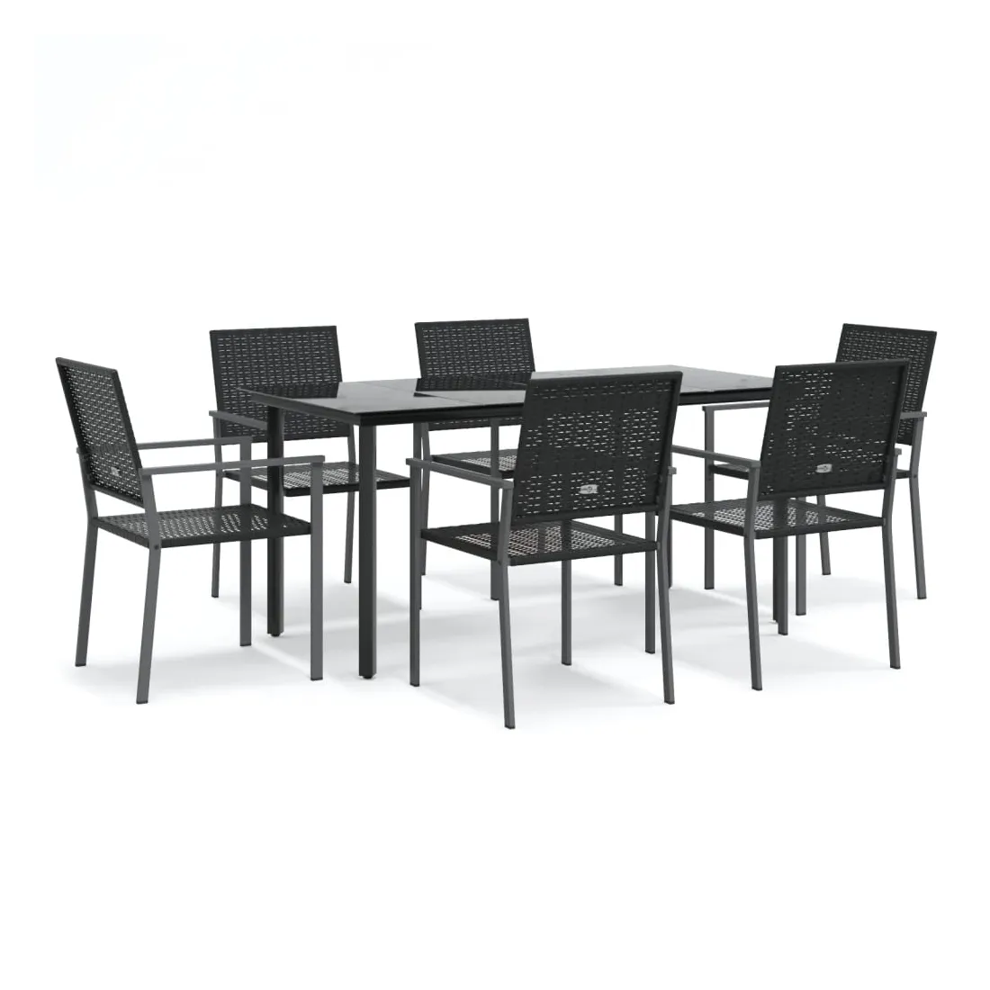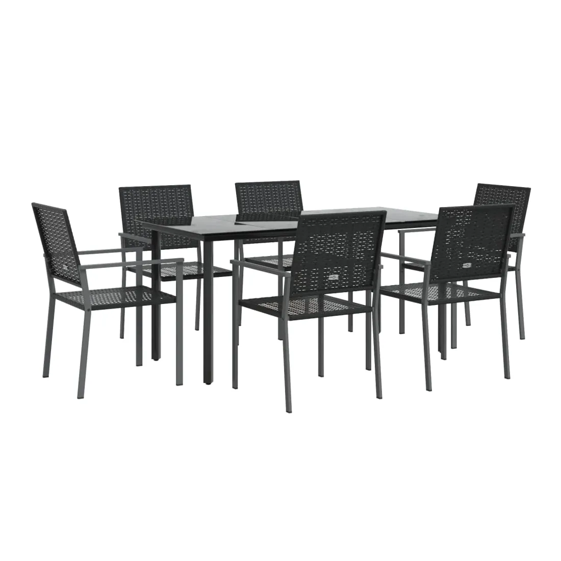 Ensemble à manger de jardin 7 pcs résine tressée acier